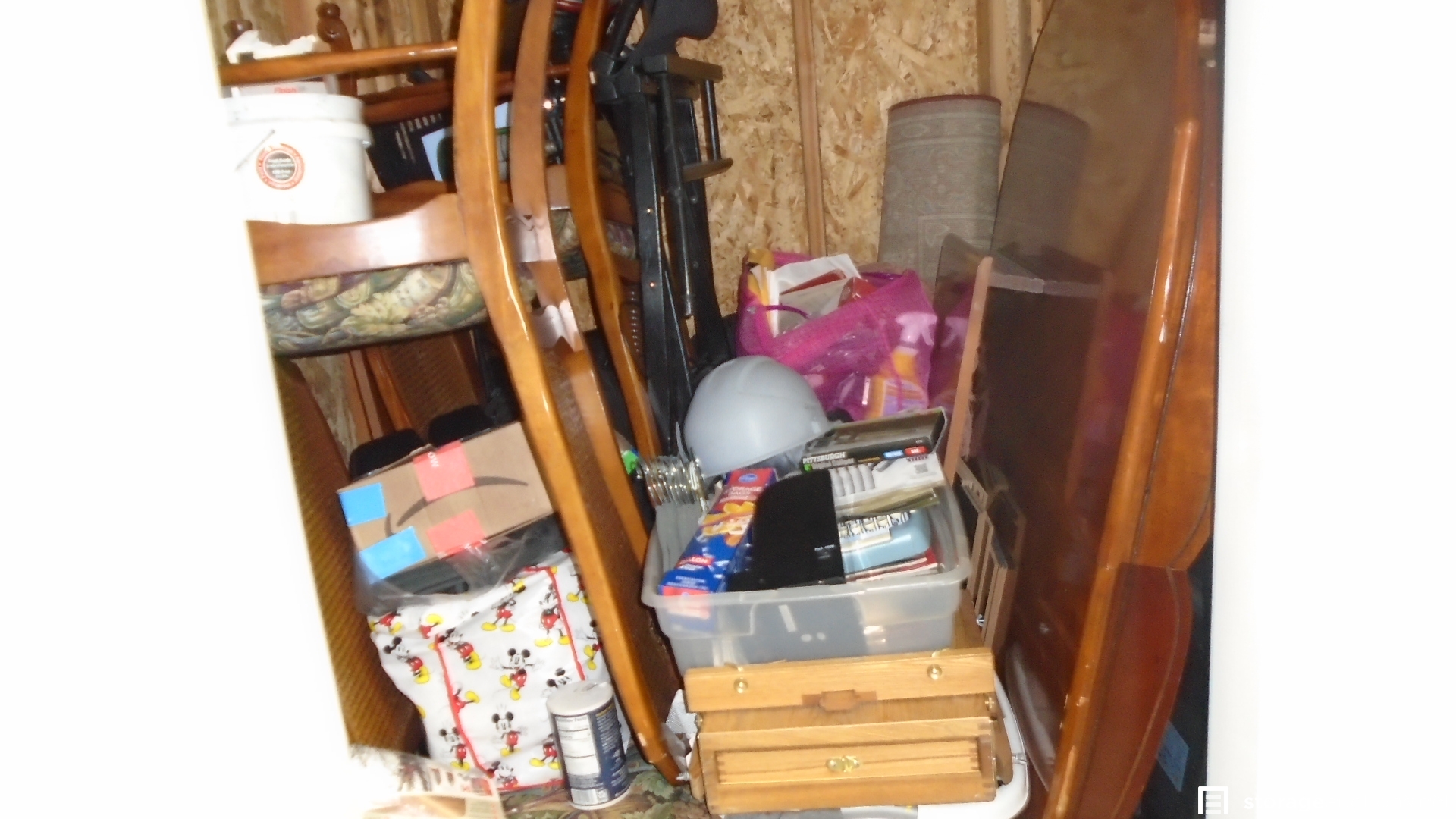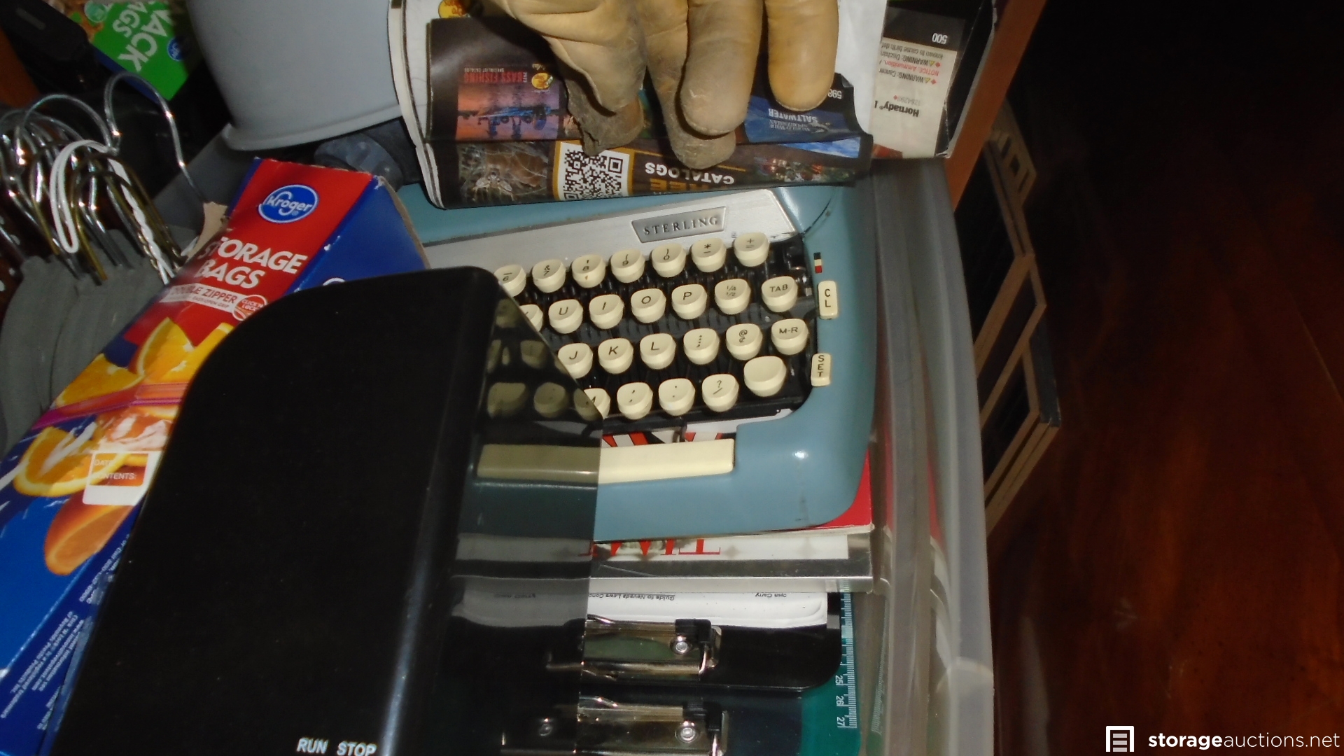 Unit appears to contain: Dinning table and chairs, coin counter, typewriter, pots and pans, area rug