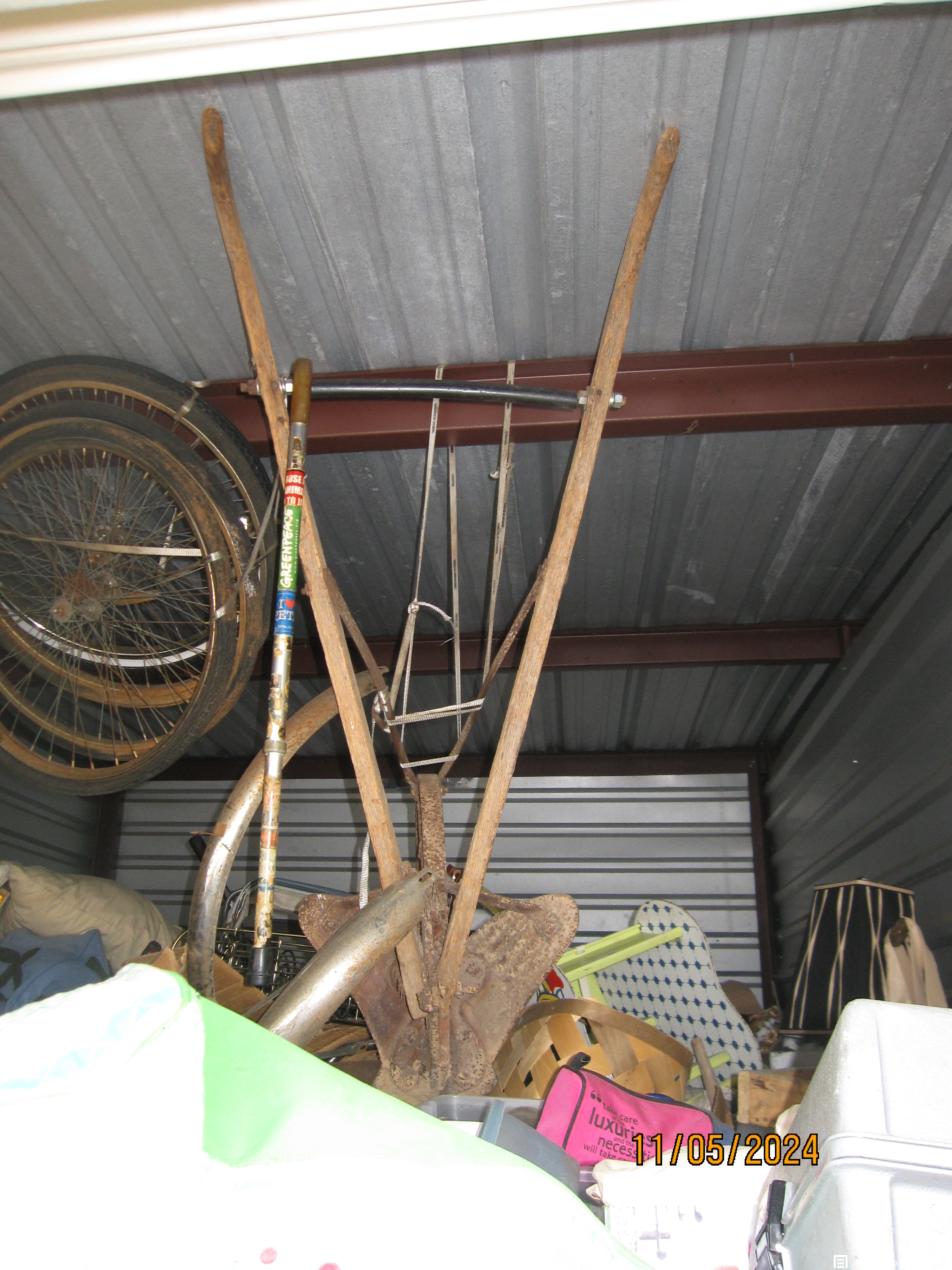 If you're into "Old" Stuff, this is the unit for you... It has a variety of almost everything, Old plow stocks mule drawn, lanterns, bicycle wheels, antique sofa, old trunks, cast iron pots, board games, antique baby bouncer desk/chair.