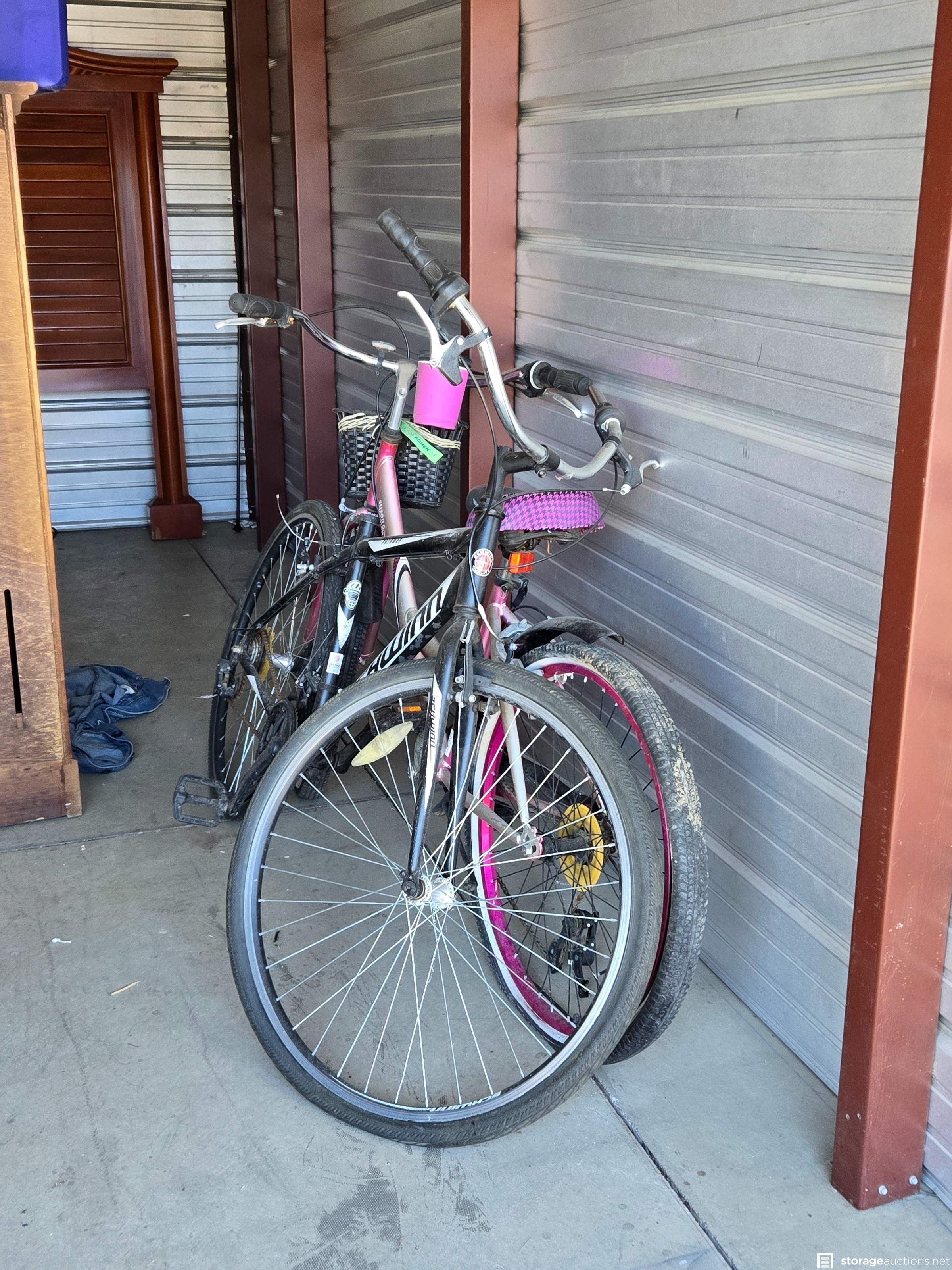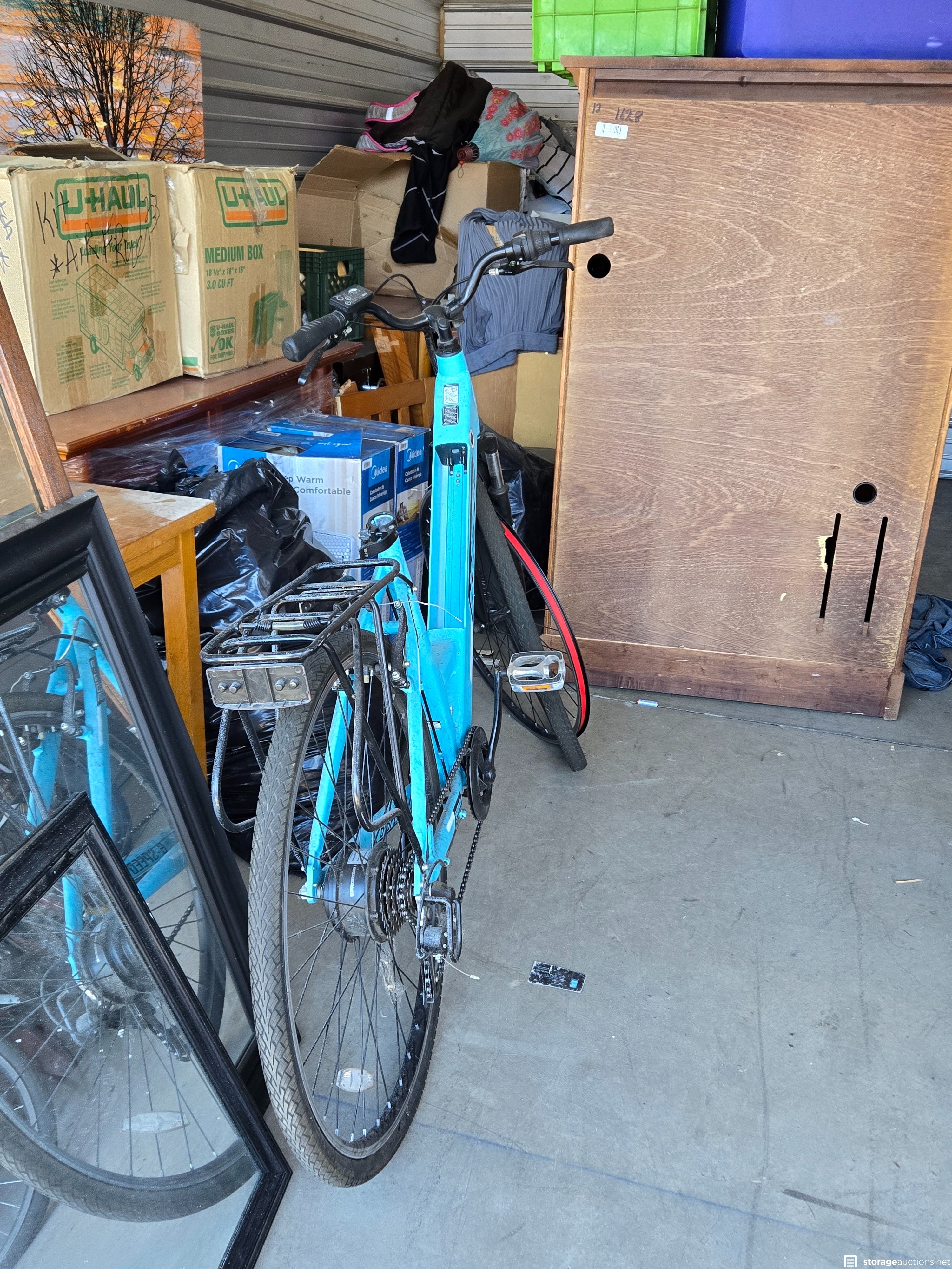 This downstairs unit appears to contain: E Bike, Bikes, Totes, Boxes, Furniture.