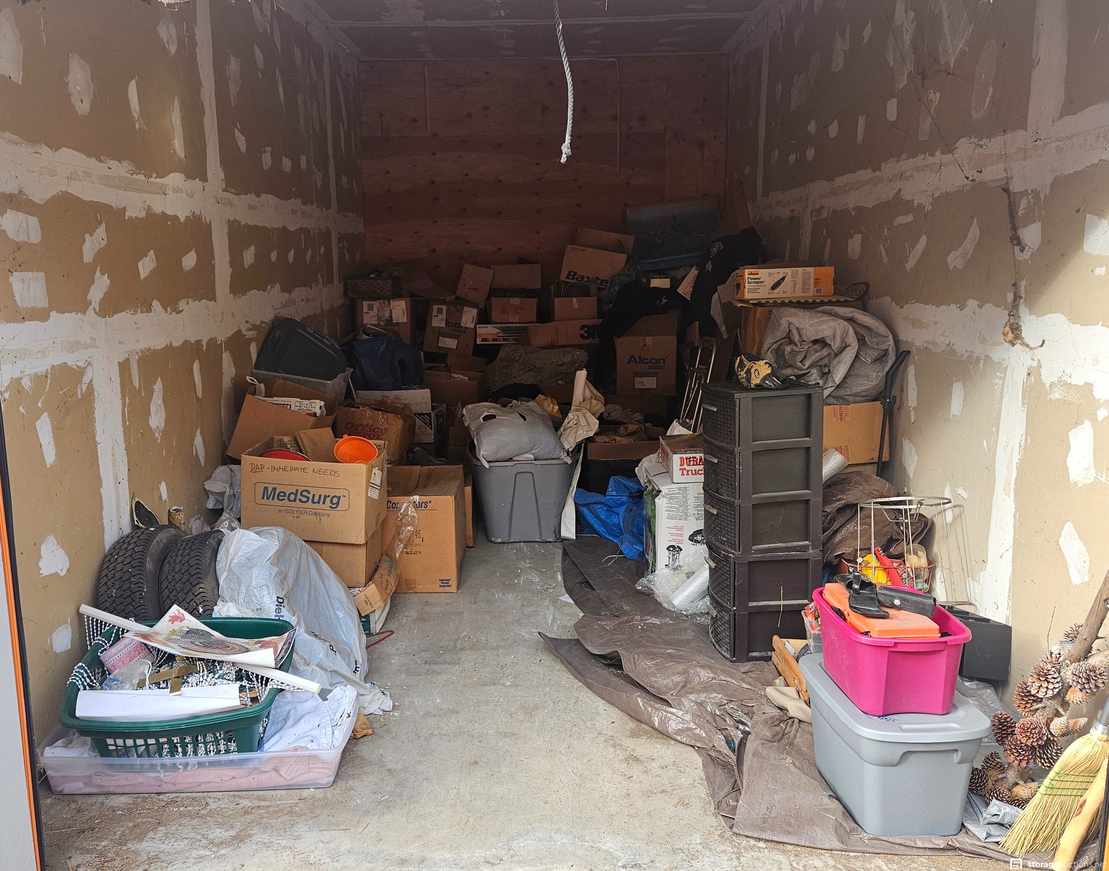 Additional Terms: **Tenants bidding on their own unit do not alleviate their debt obligation and will still owe the full balance due on the unit.** 1. Auction units must be paid in Cash Only at the facility where the unit is located. 2. Cleaning Deposit paid in Cash and only returned after approved inspection of unit. 3. Auction Buyer needs to fill out facility buyer's agreement. 4. Auction buyer must show ID or have letter stating buyer's representative name and they must show ID to gain access to unit. 5. Auction Buyers must contact the storage facility office where the unit is located within 72 hours after the auction ends. 6. Buyer must clean unit out during office hours only. No gate access code will be given out. 7. Contact facility immediately when auction ends, to make arrangements to pay for and pick up the unit. 8. You must have a Paid Invoice in order to pick up unit. 9. You must be 18 years old to bid. 10. You must provide a valid photo I.D. to the Site Manager. 11. You must bring your own lock to secure the unit. 12. You will not be allowed to enter the storage unit or touch any items prior to bidding. 13. Sales are final and bids are for the entire unit. 14. The Auctioneer has final say on all issues, including whether to refuse a bid if a bidder has disrupted an auction or violated any rules. 15. Immediate cash payment is required when you purchase a unit. 16. You have 72 hours to remove the contents entirely and broom sweep the unit. 17. A $50 refundable cleaning deposit is also charged on every unit you buy. 18. You must remove all of the contents and trash from the unit and facility grounds. 19. You are not allowed to use the dumpsters on the facility property. 20. Please advise the manager once you have completely emptied the unit. The manager will inspect that the unit is clean and then refund your cleaning deposit. 21. Smoking is prohibited on storage facility properties. 22. No Pets allowed at facility 23. Respect the Property, Managers, Tenants and other Buyers at all times.