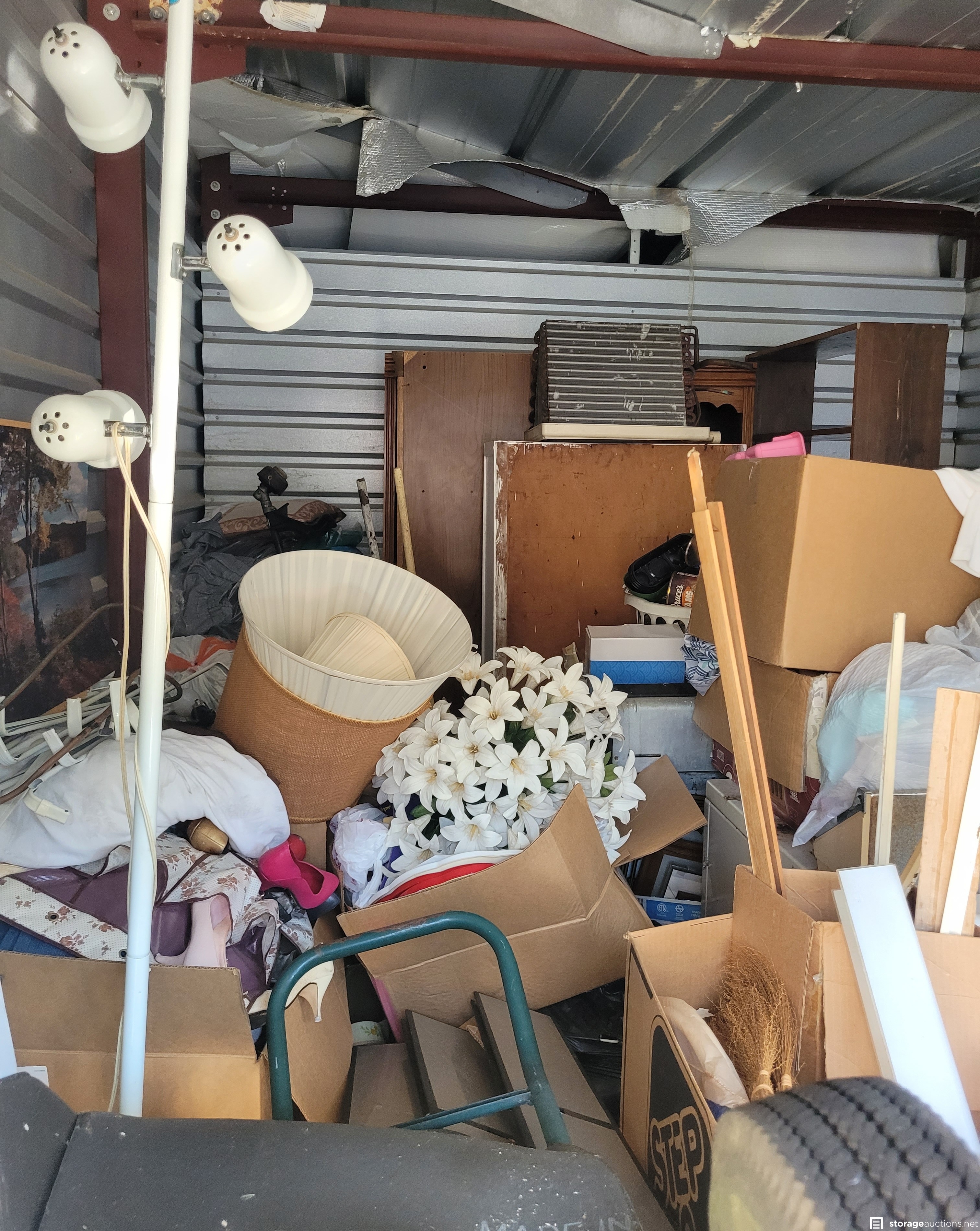 Lamps, Door, Ladder, Boxes, Shelfs, Paint, Totes, Weedeater