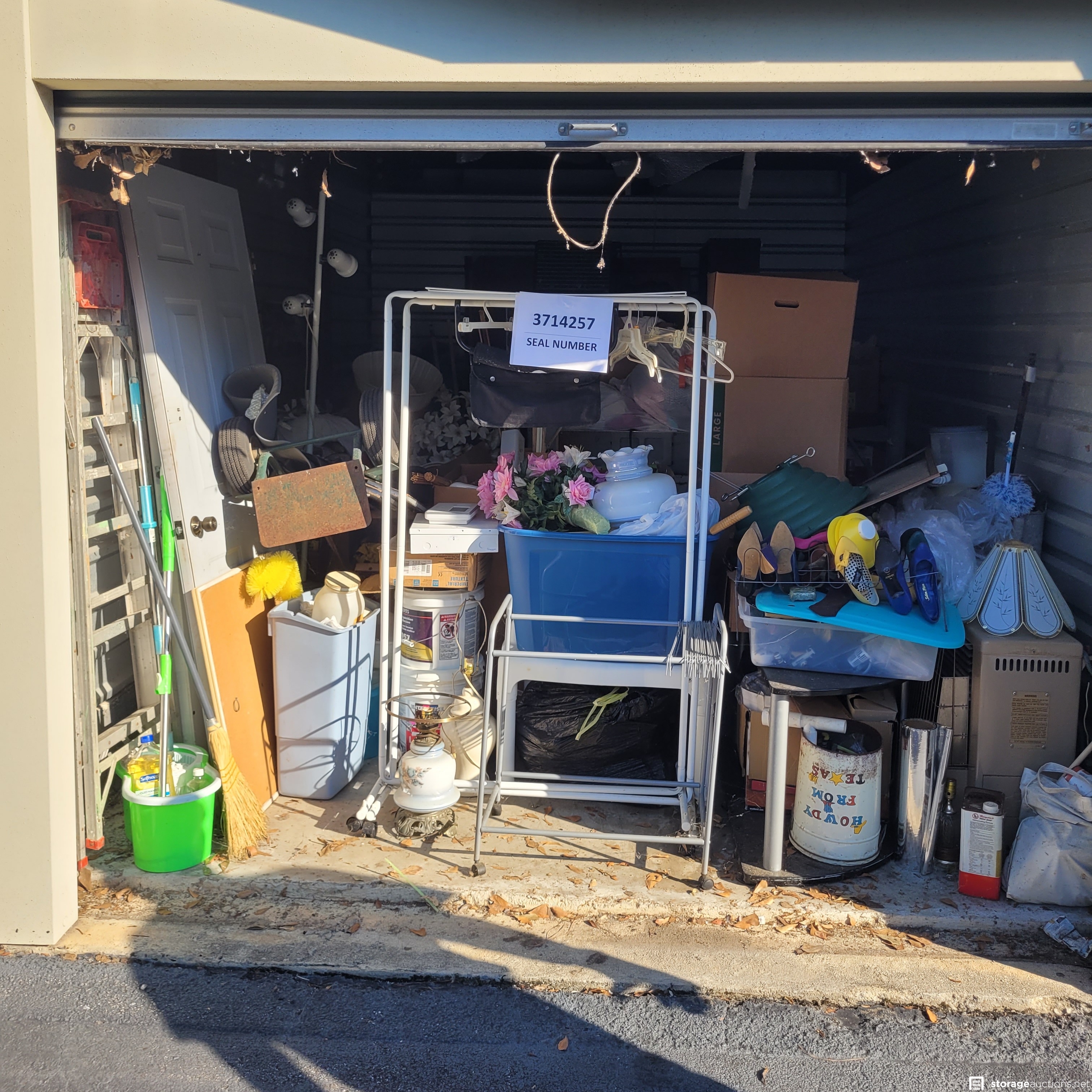 Additional Terms: All units must be paid for at the time of sale. Cash payment will only for accepted for the $100 Deposit. No checks accepted. No one under the age of 18 is allowed to attend the sale. The landlord reserves the right to bid at the sale. All purchased goods are sold "as is" and must be removed by 5:00 p.m. on the day following the sale. Buyers must provide a current, original or a photocopy of their original resale permit at time of sale in lieu of sales tax. This sale is subject to cancellation in the event of settlement between landlord and obligated party.