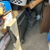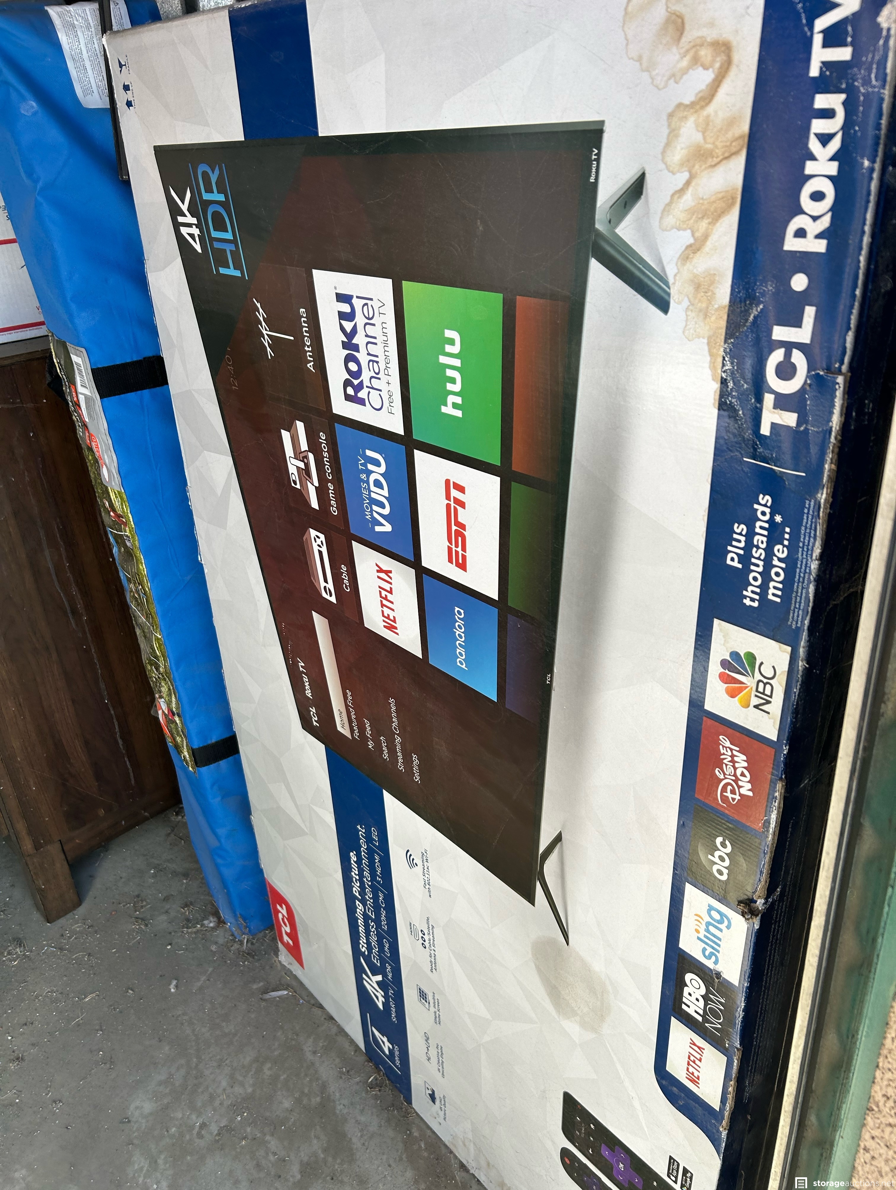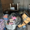 dresser, flat screen Tv, boxes, gags, furniture, Ez-up, speckers, backpack, luggage, basketball, stuffed animals