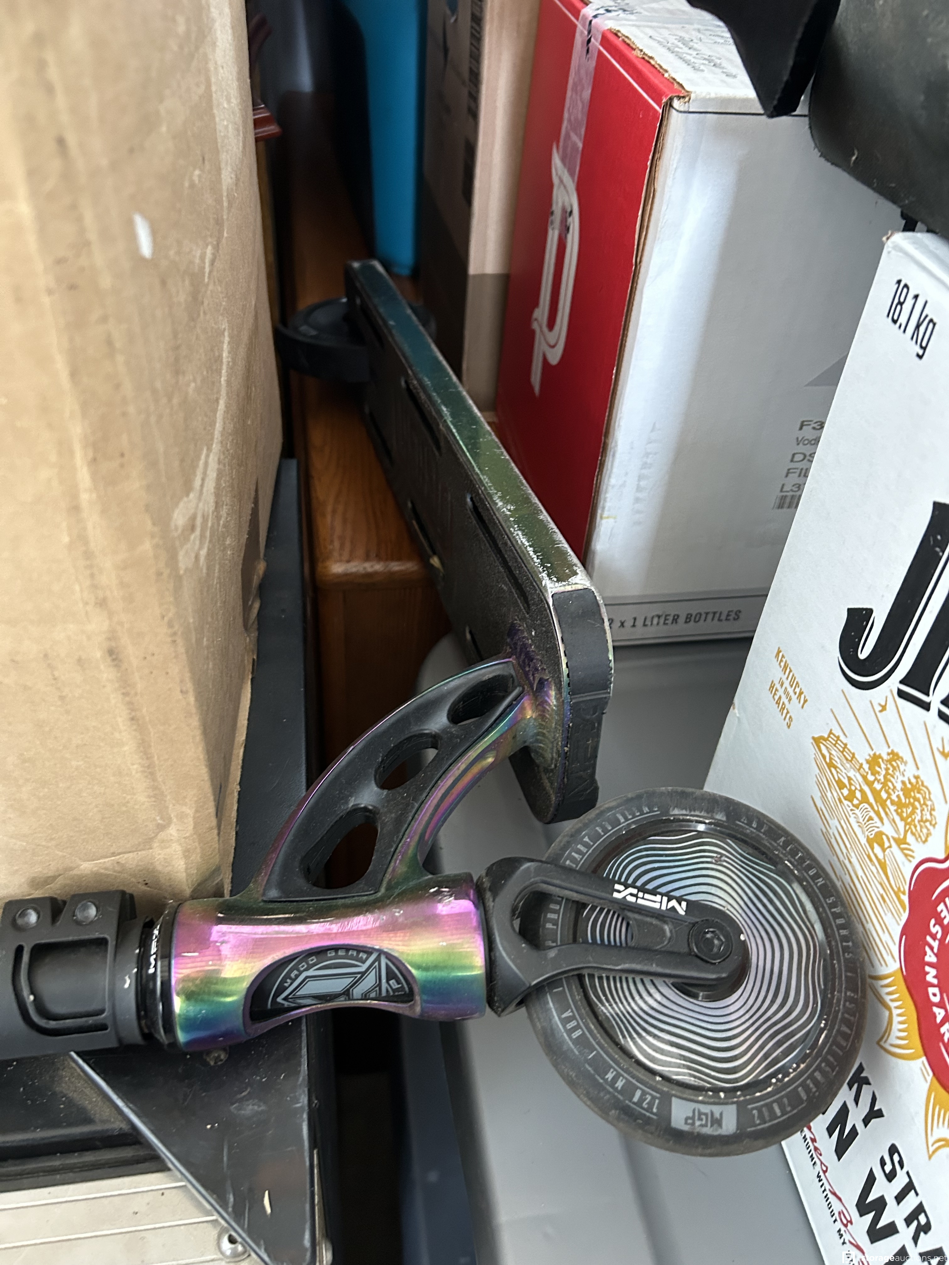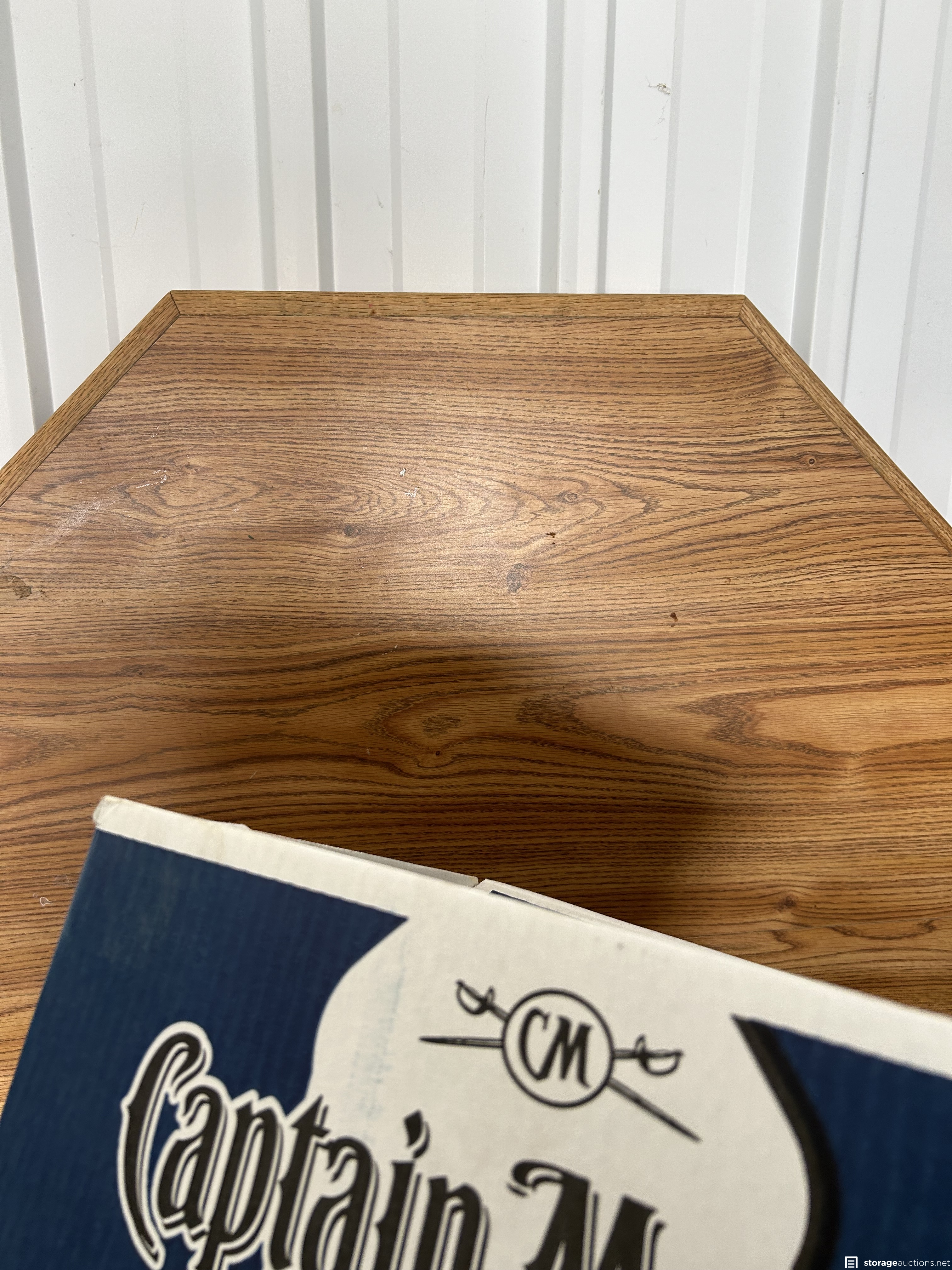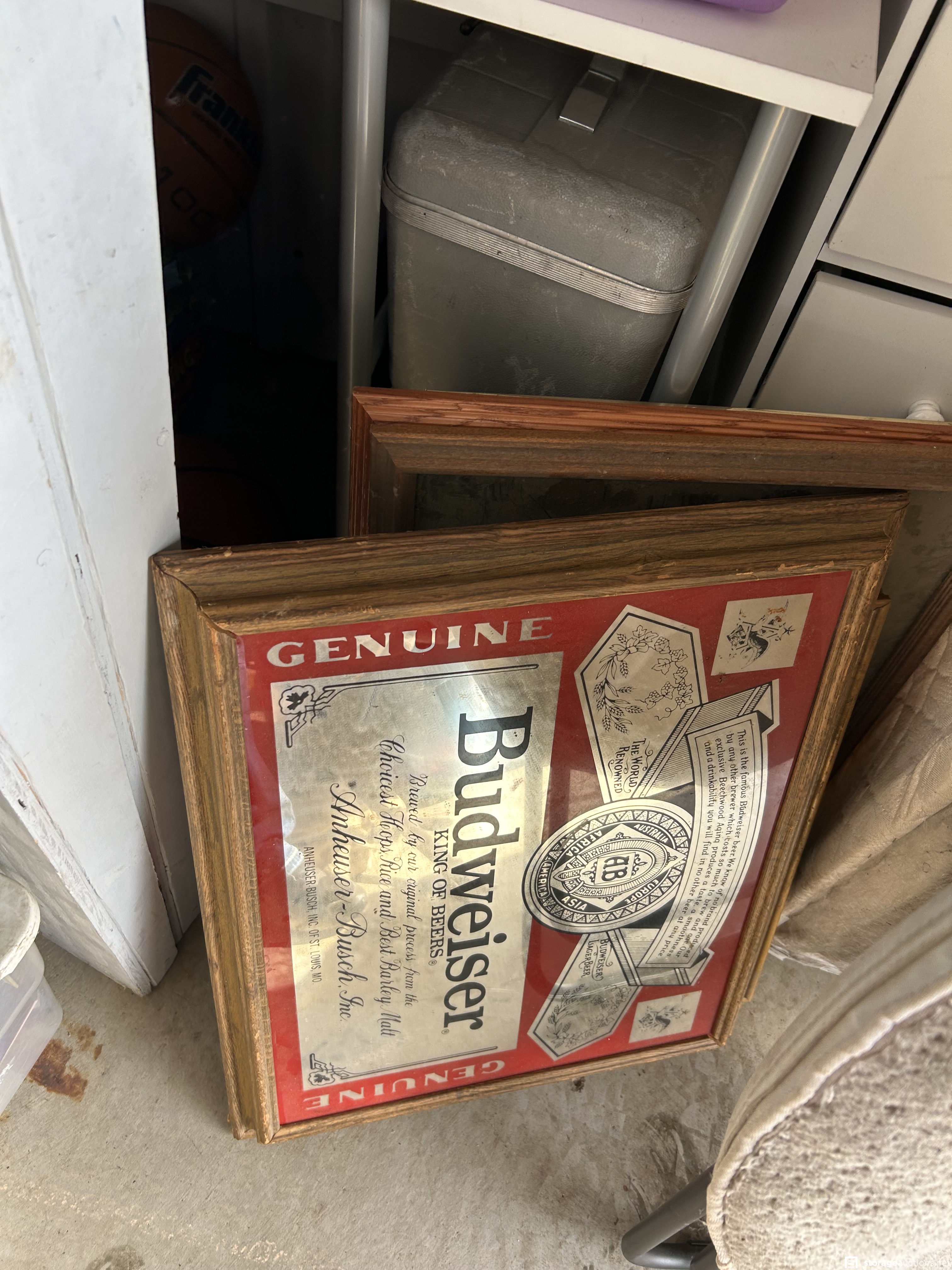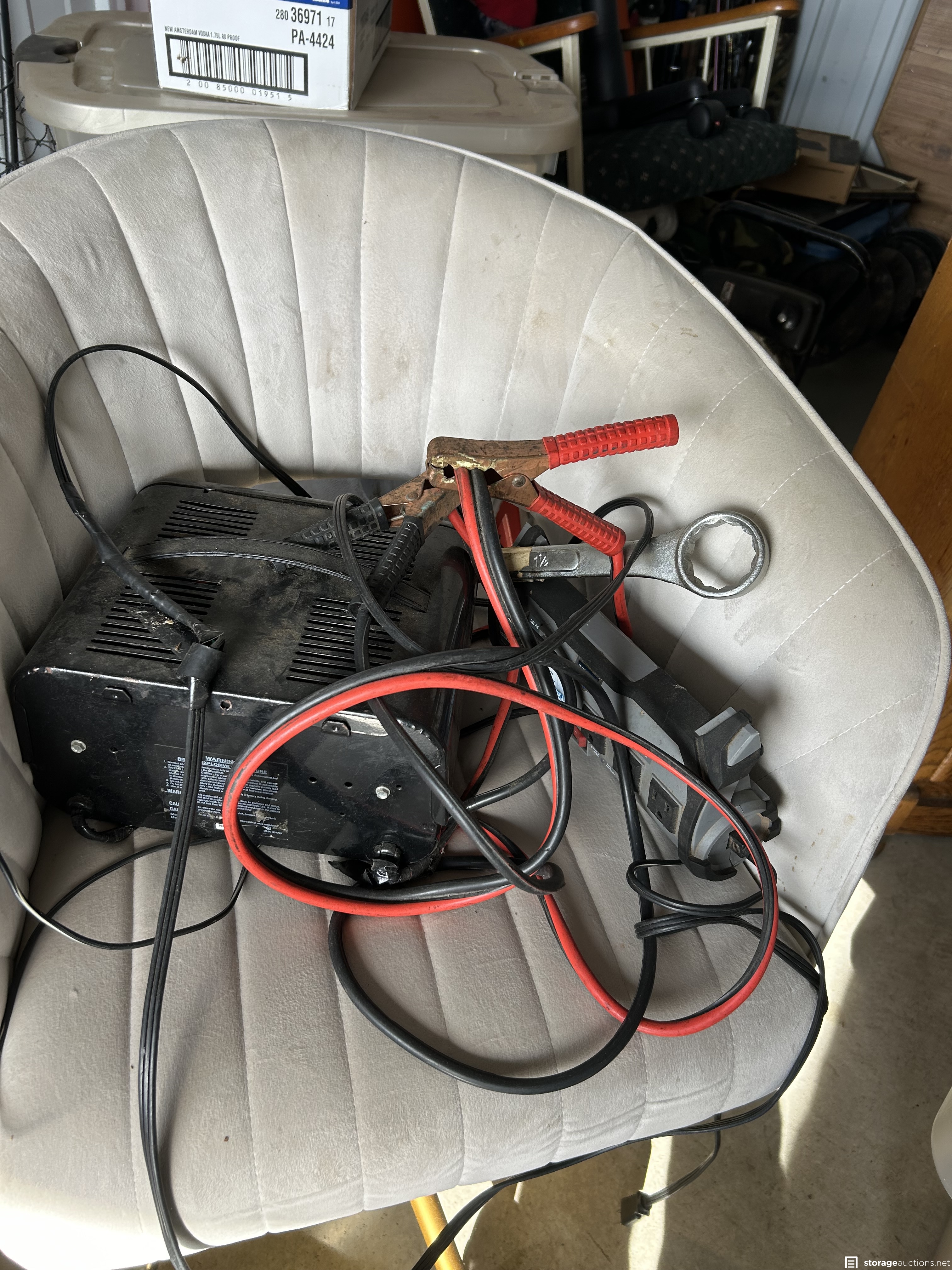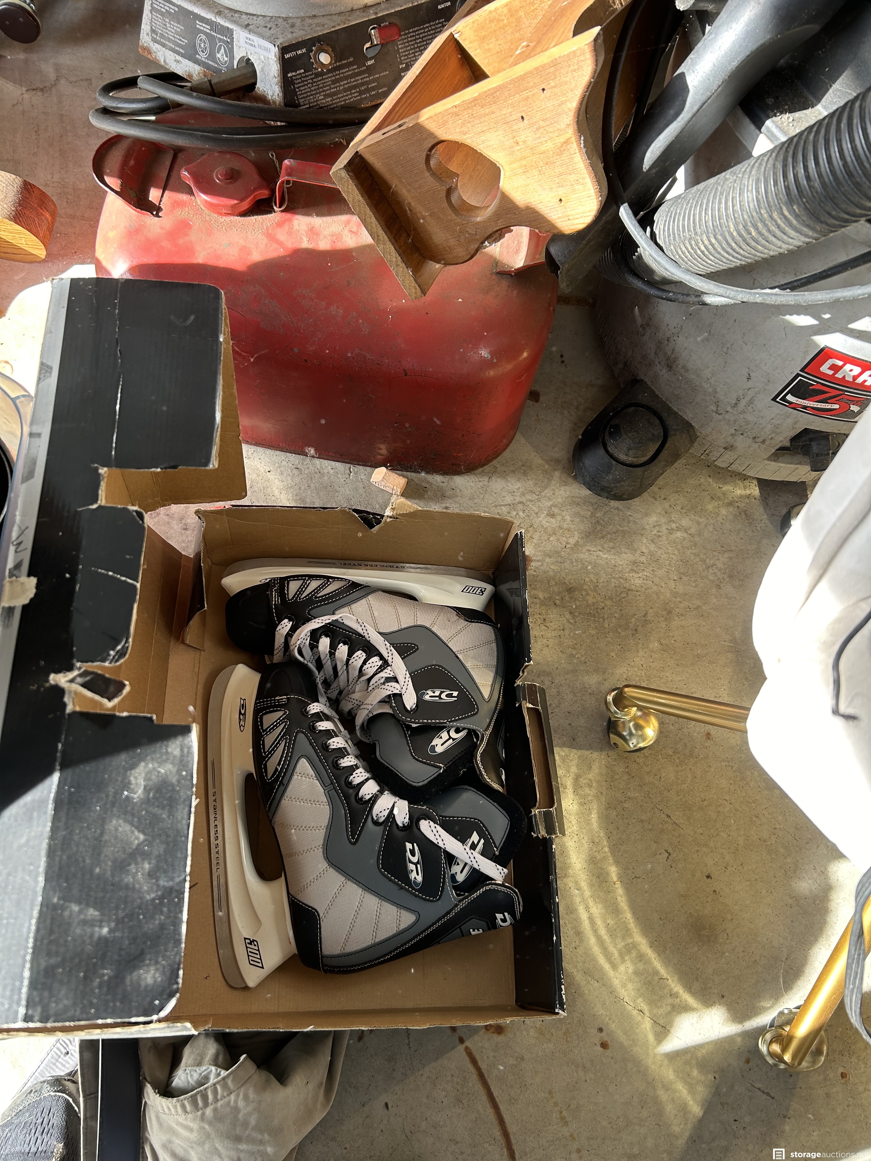Roku TV, Ducks Unlimited Gear, pampered chef, ice auger, scooter, skateboard, hockey skates, oak dresser, fishing gear, tackle box, shovels, jewelry dresser, tv stand, cornhole game, pool cue in travel bag, Budweiser signs, propane heater, large shop vac, desk, desk white, basketballs, coffees table, kitchen chairs and table, tools,roaster, boat gas tank, battery charger, lamp, net, and more