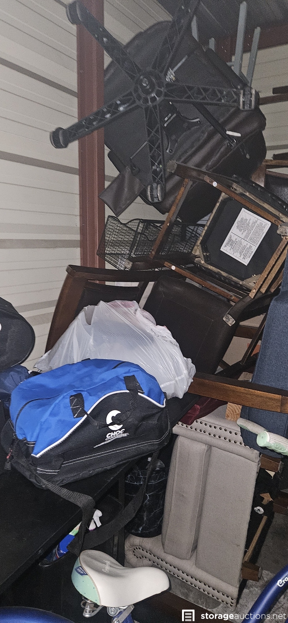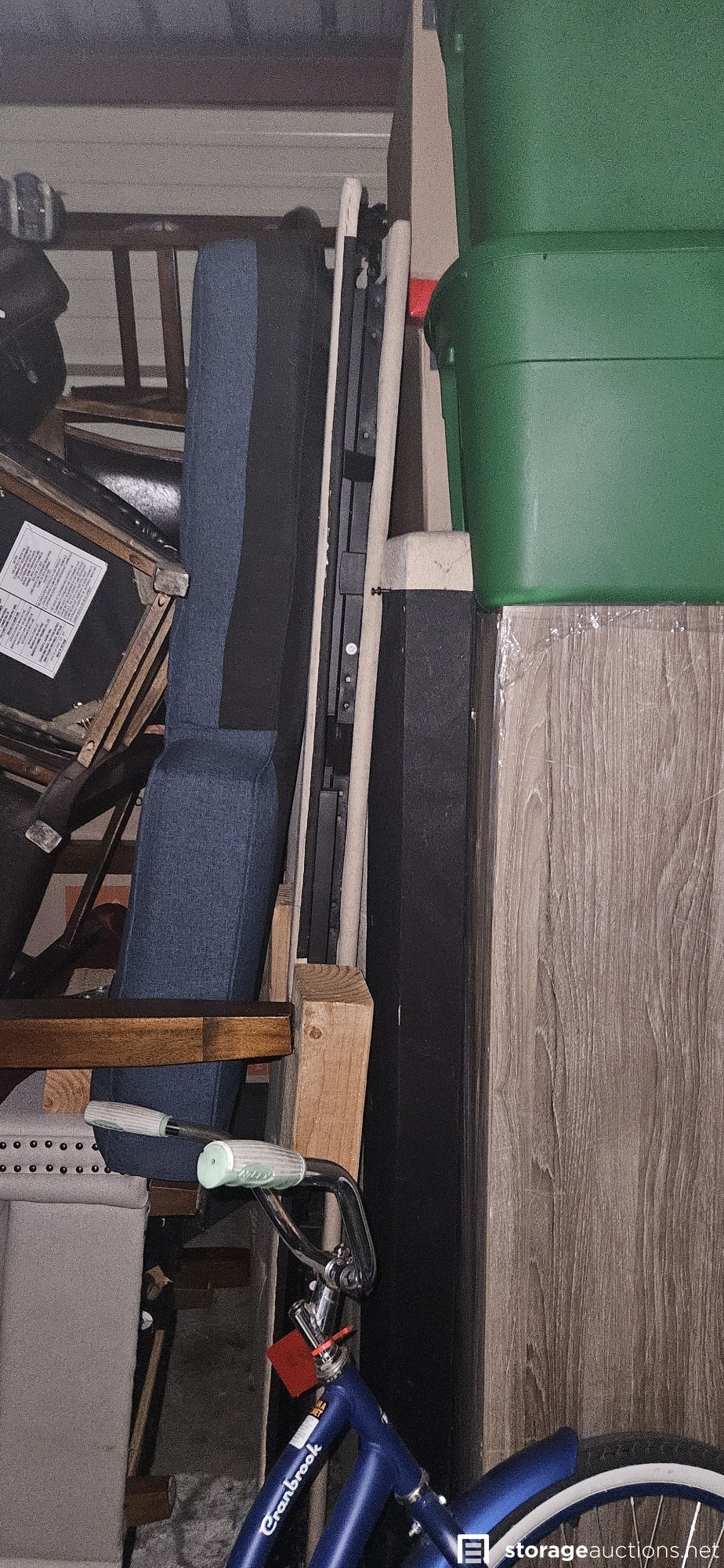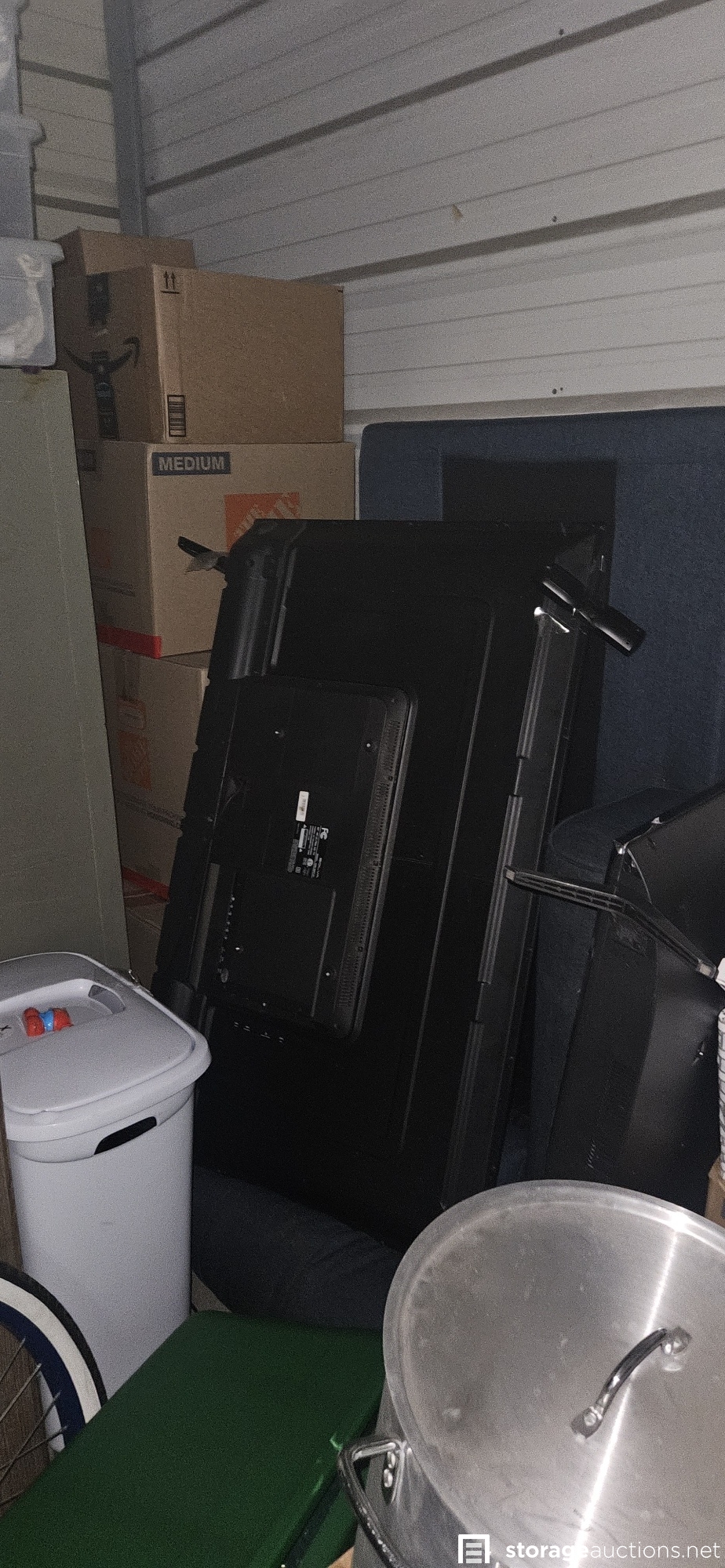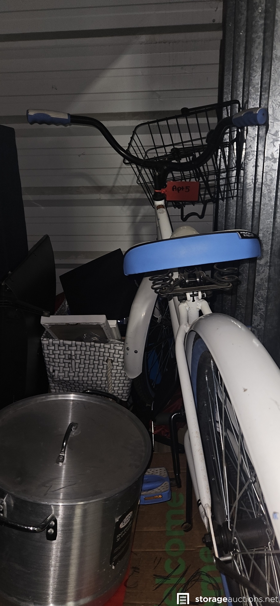 Shoes, bikes, tv's, dresser, cabinet chairs.