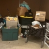 Totes, bags, books, fan, shoes, clothing, car battery, folding table, electronics