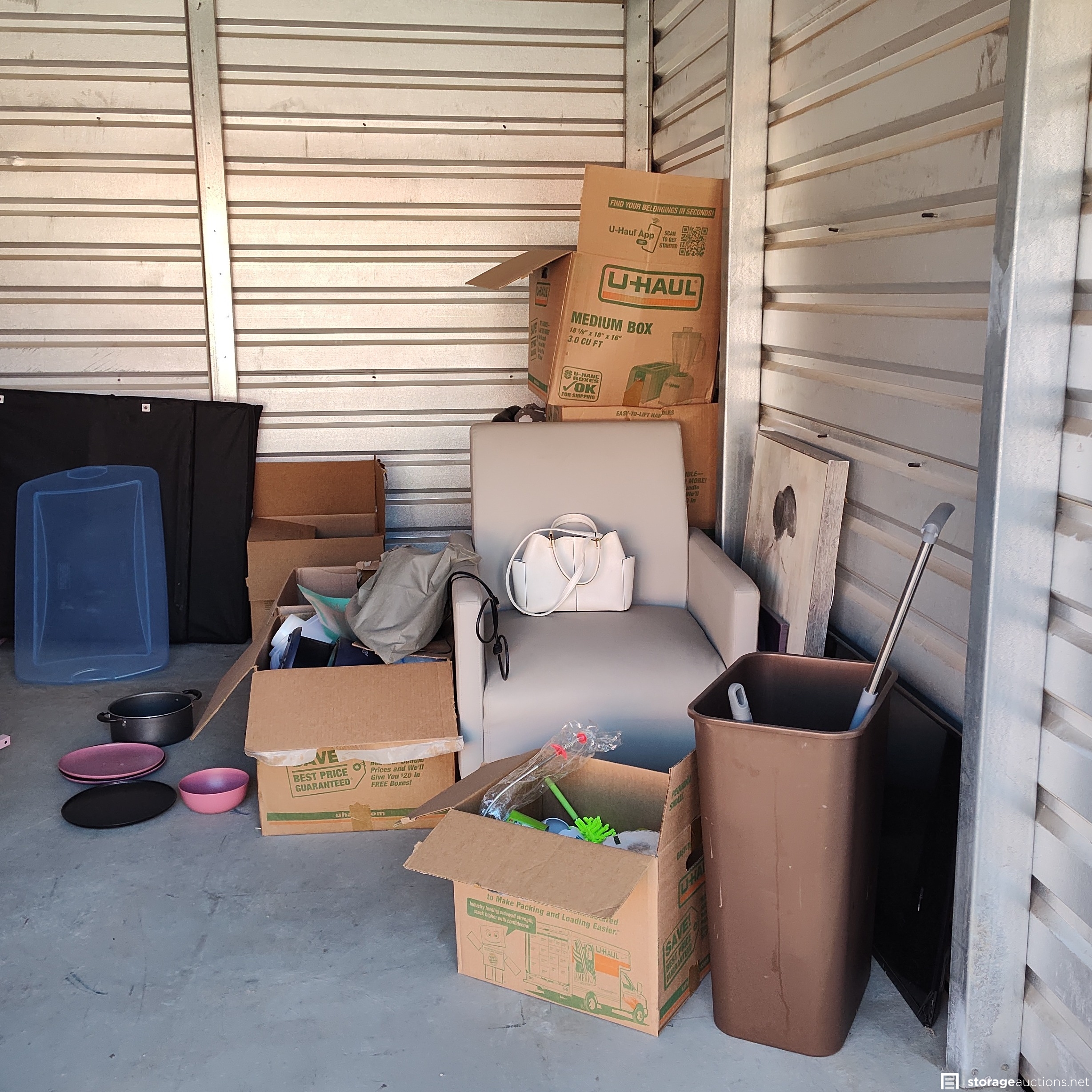 Additional Terms: .72 Hour clean out. No dumpster available. $100.00 clean fee. Unit is forfeited after 72 hours of no clean out. No refunds . U-Haul requests that all items of a personal nature be boxed at the time of removal from the unit with the unit number on the box (photos, home movies, personal papers/records) and returned to the office. U-Haul also request that all items marked or identified as U-Haul equipment be returned to the office when unit is emptied. Everything must be removed from unit within 72 hrs failure to do so will result in denied access to Uhaul Auctions in the furture.