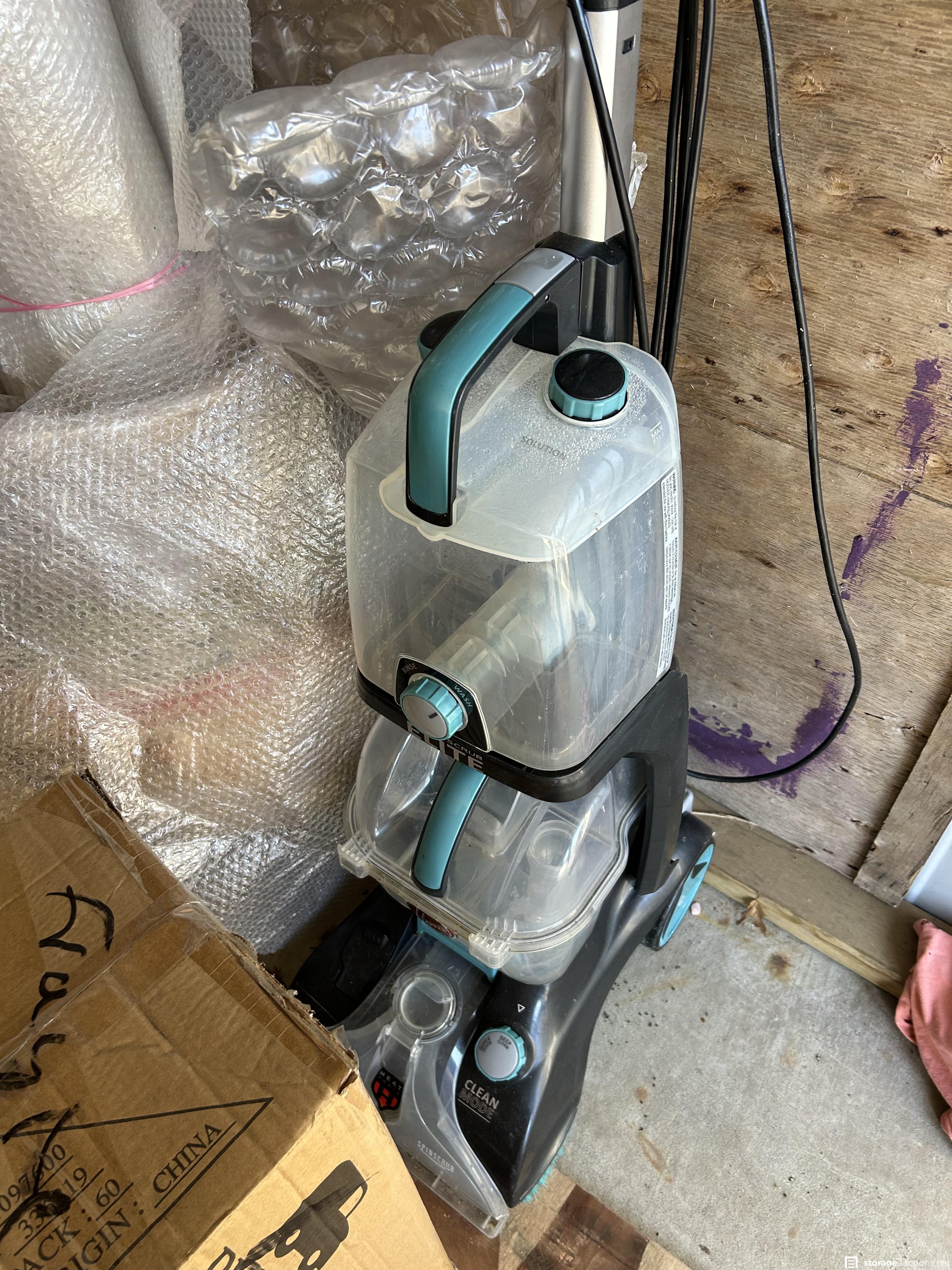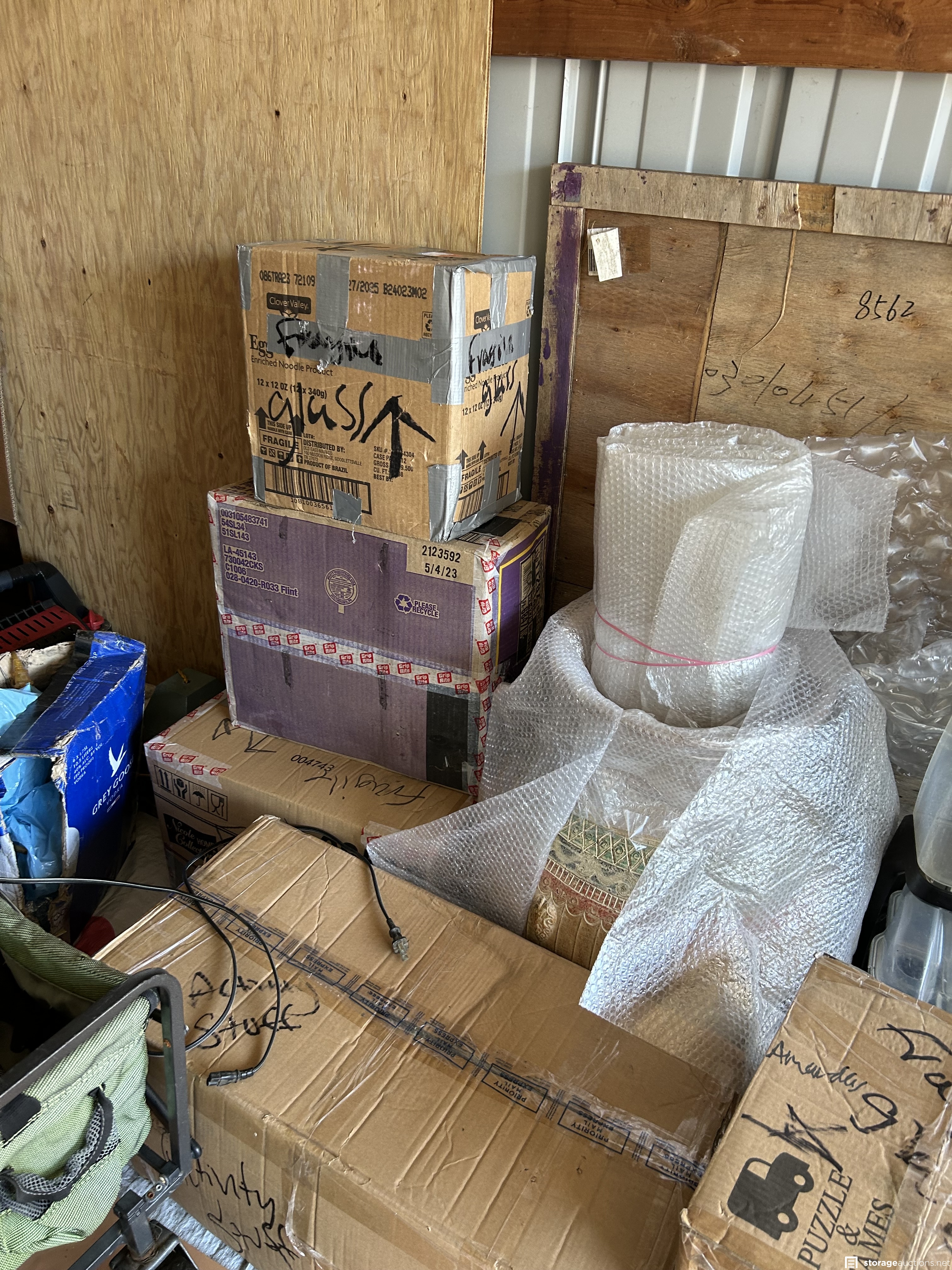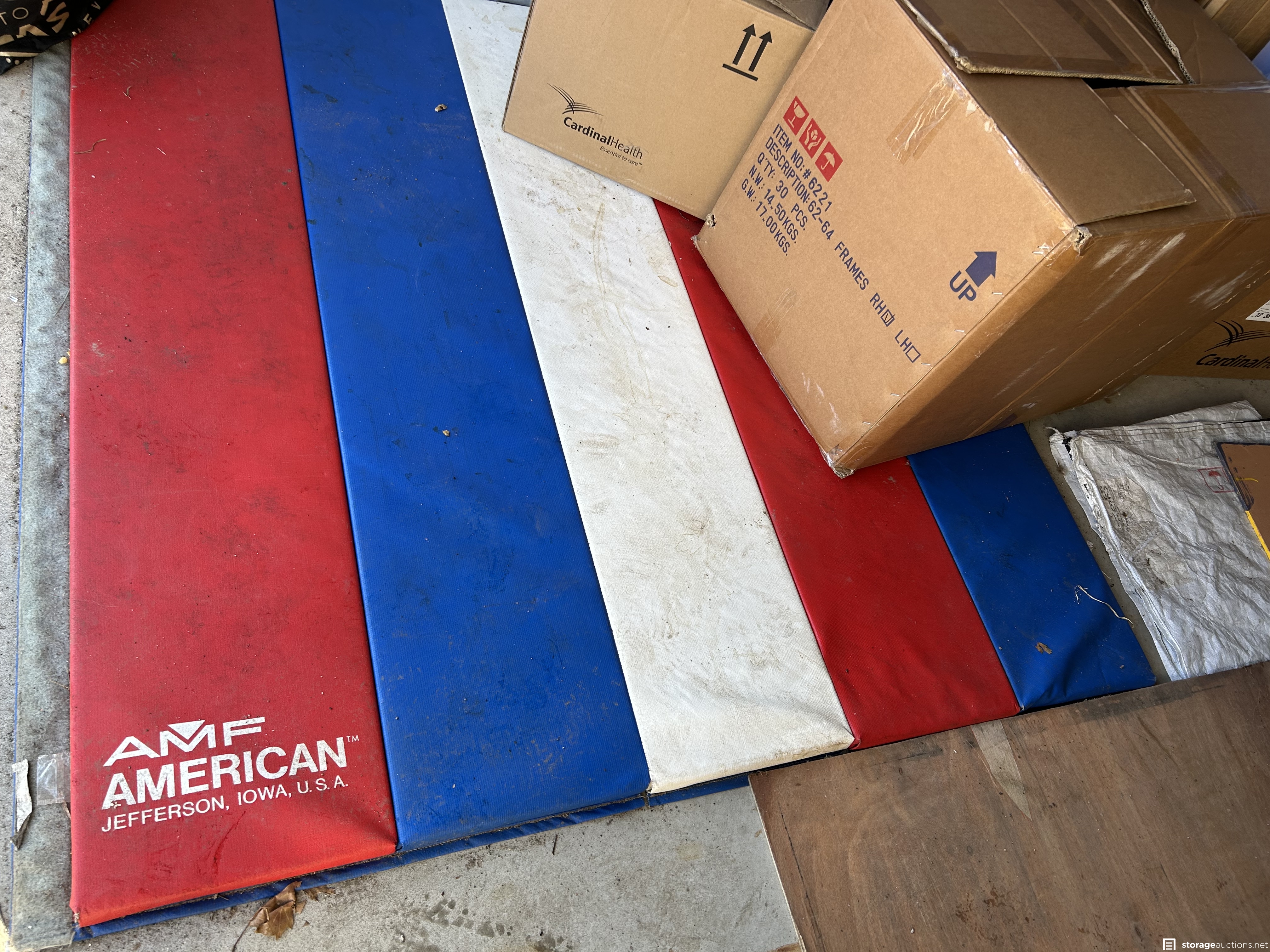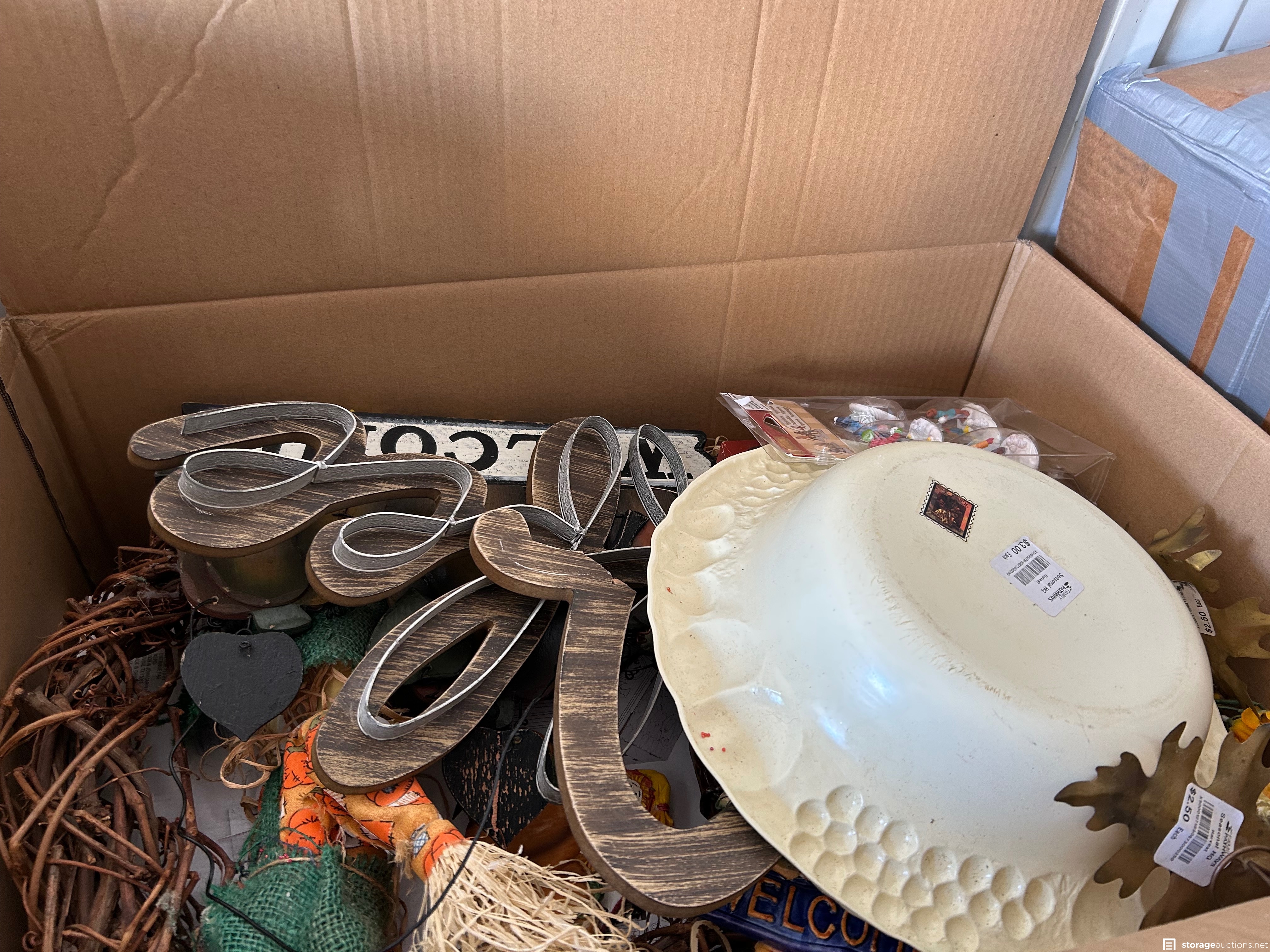 This unit appears to contain Gymnastics Matt, Elite carpet cleaner, 2 under bed drawer, posters, plastic shelf, pool chair, boxes, watering can, decor, and more