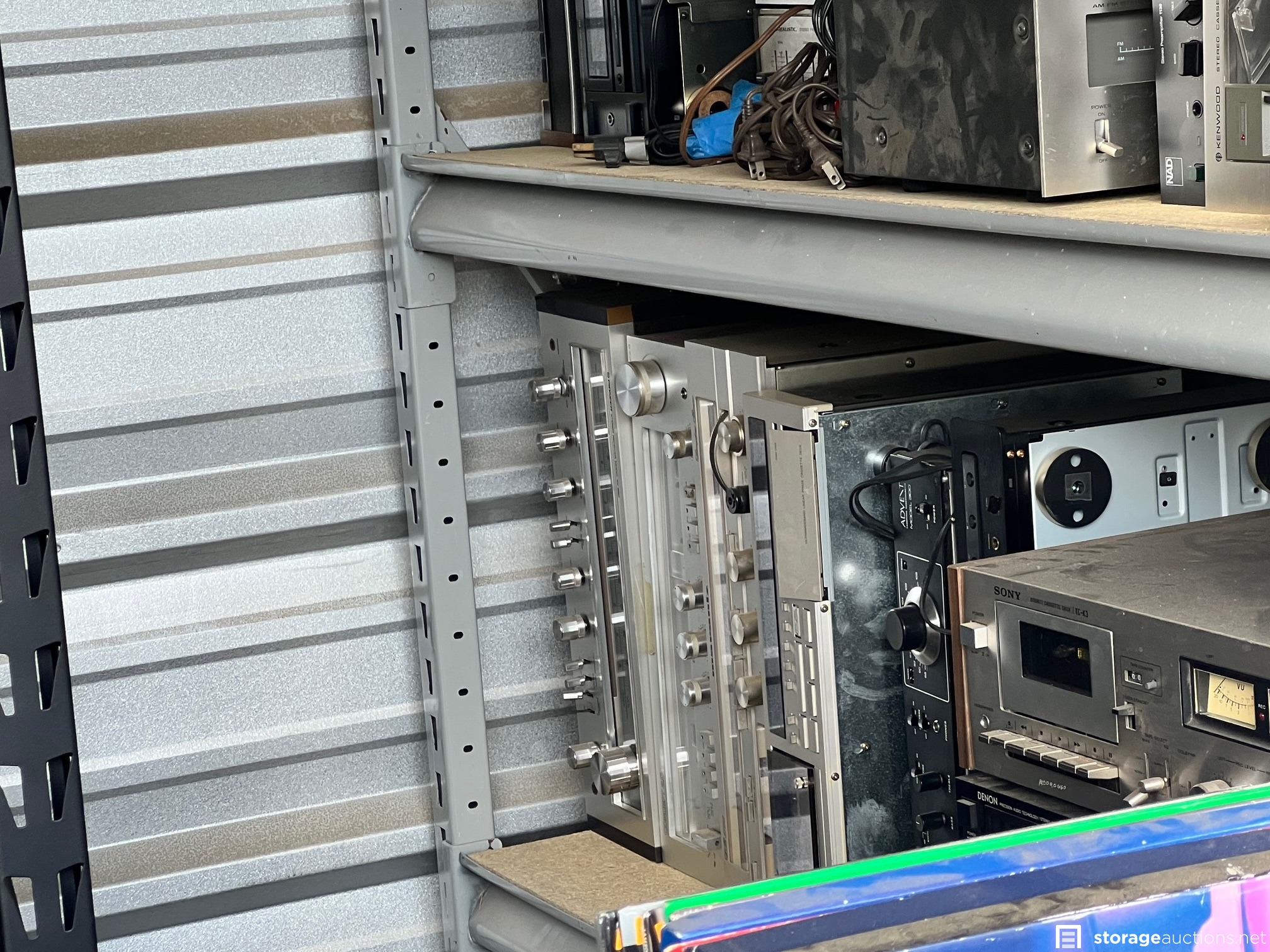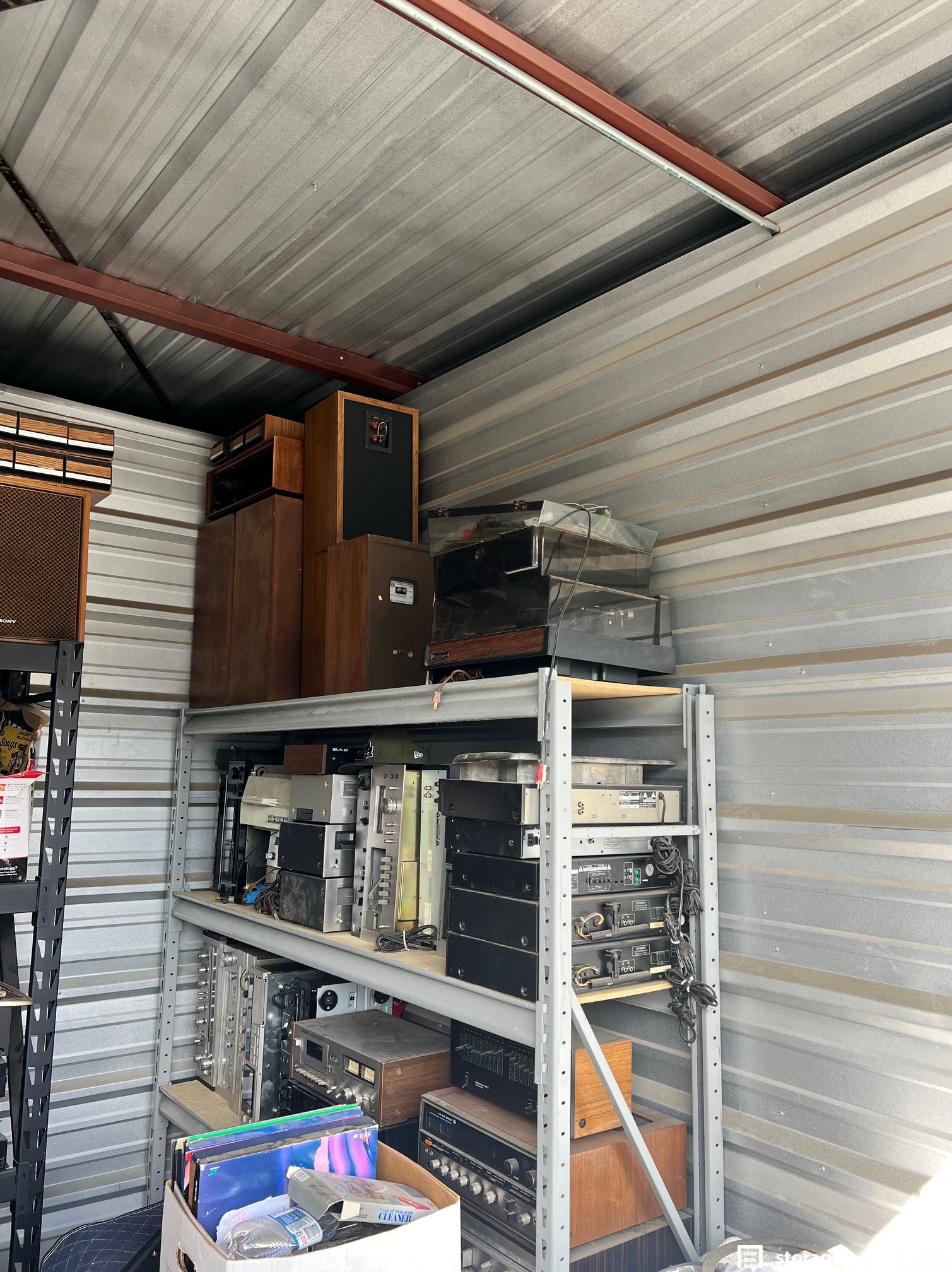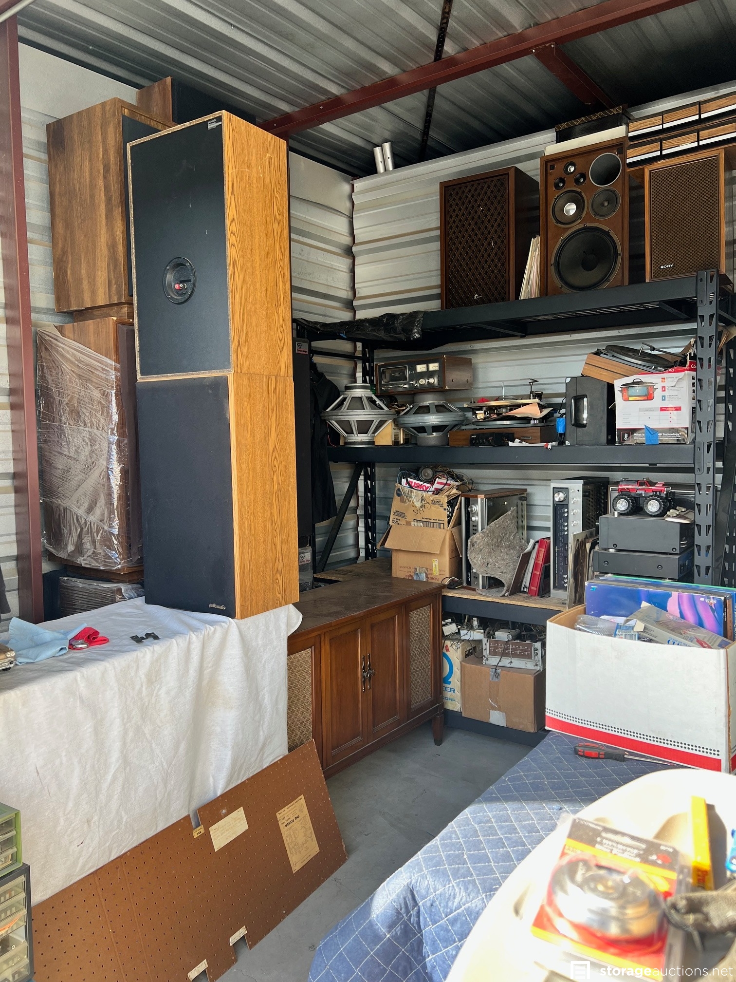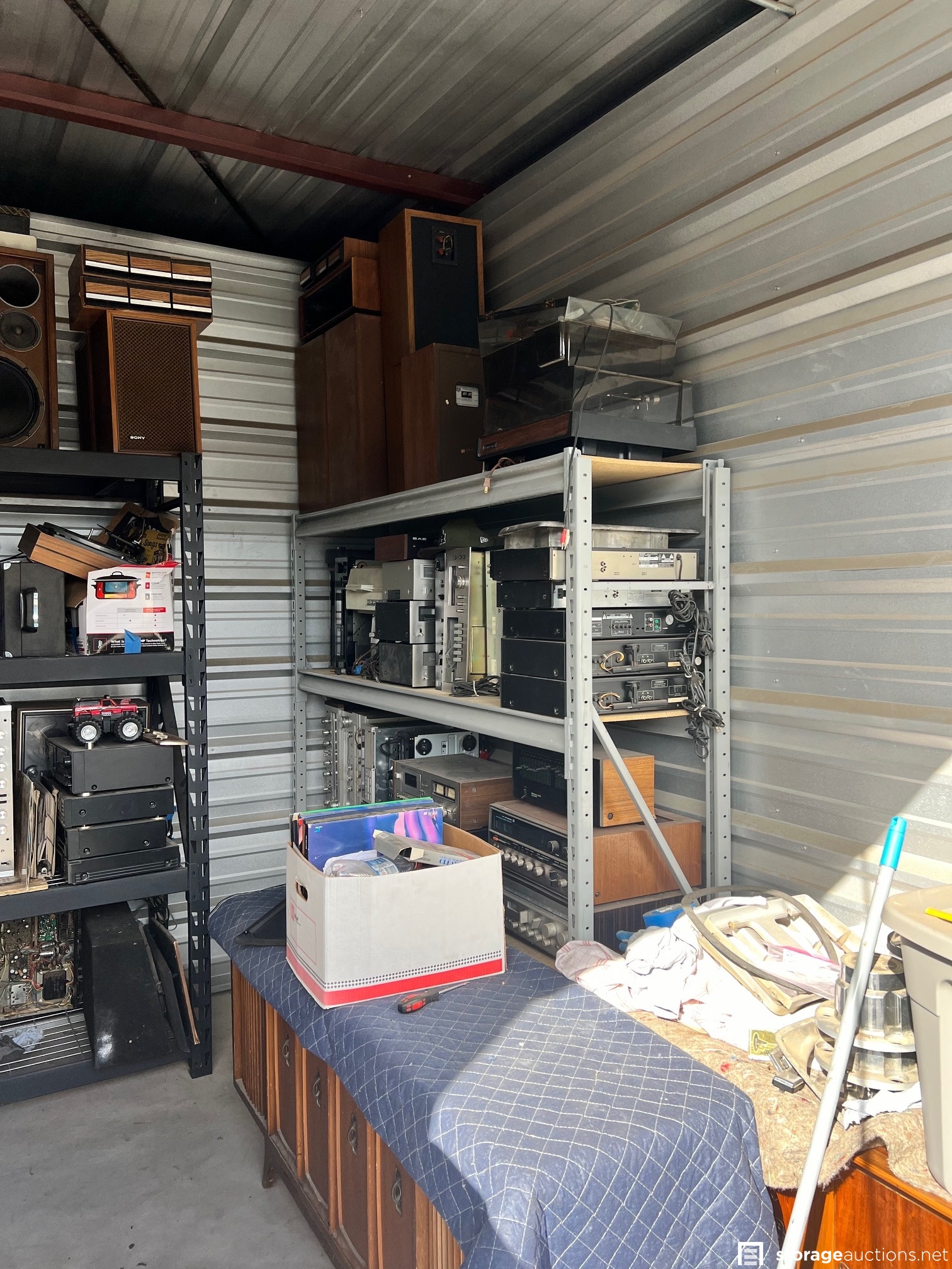 Items appear to consist of but are not limited to speakers, receivers, amplifiers, tape decks, stereo cabinets, shelving units