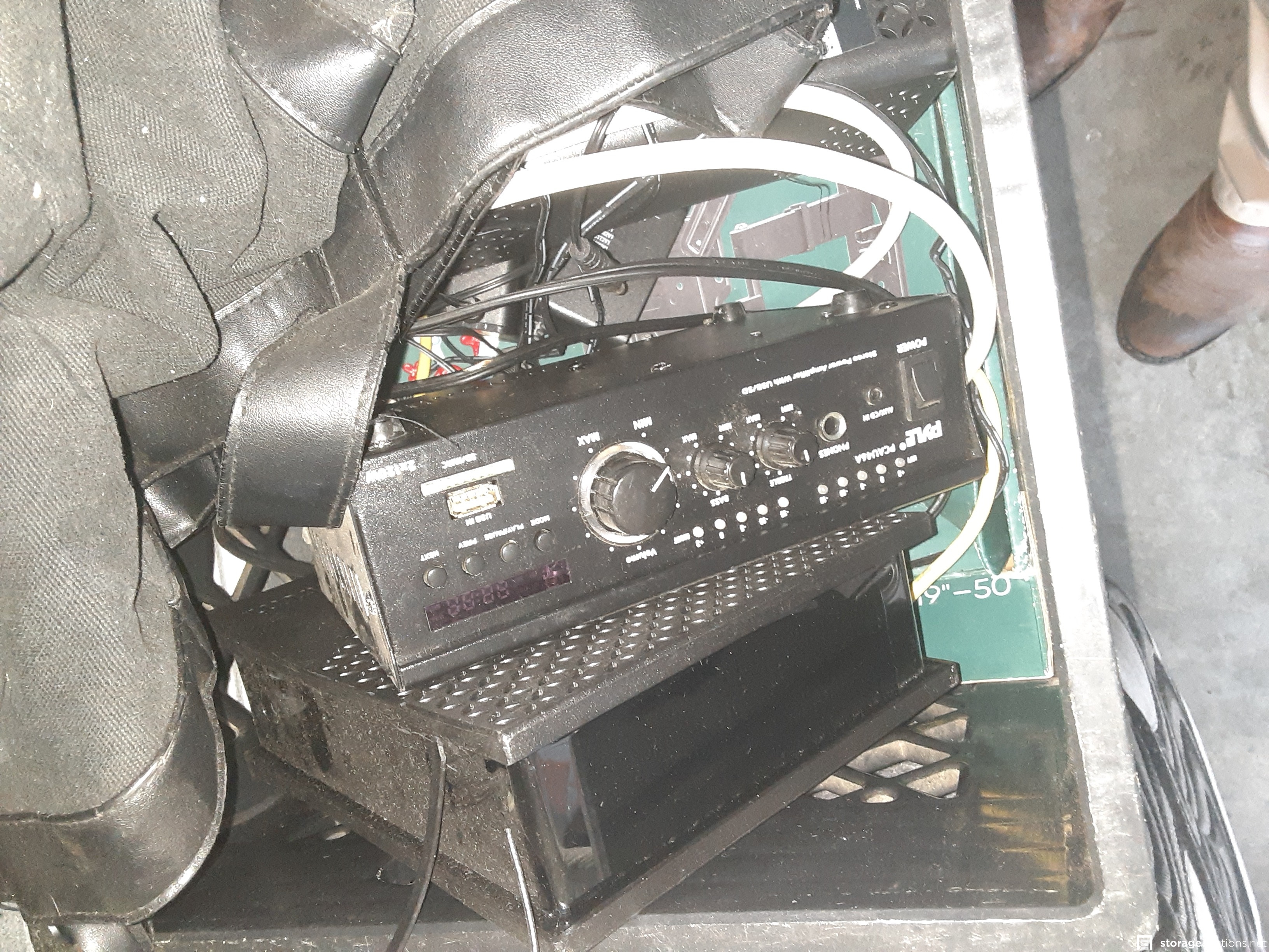 Vase, toys, booster seat, hand sanitizer, mattress, box spring, dressers, Stereo power amplifier, milk crate, Uhaul box dolly, basketball, crock pot, hangers, kitchen chair, folding play pen, plastic storage container, picture, dog crate, boxes, miscellaneous items.