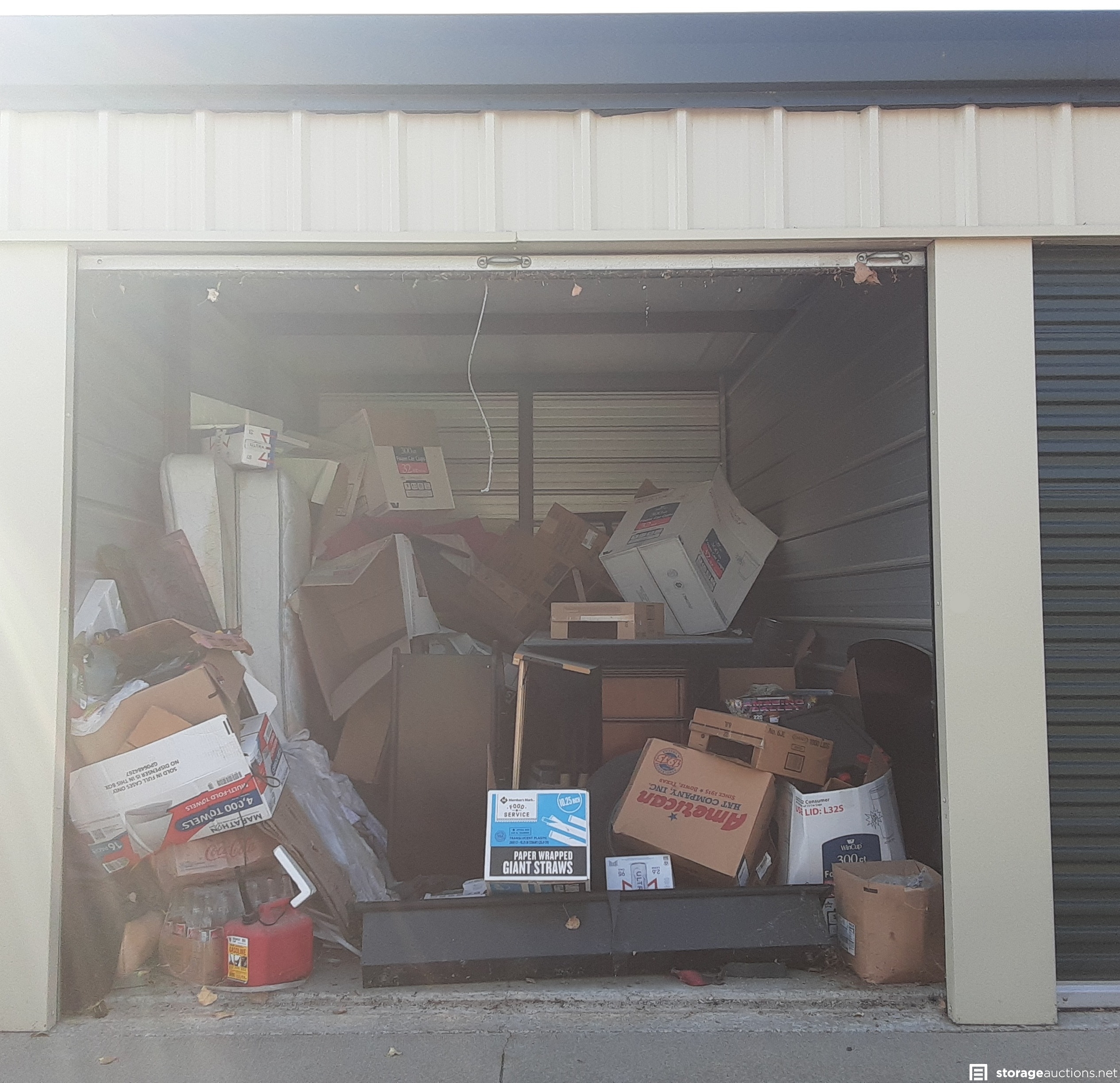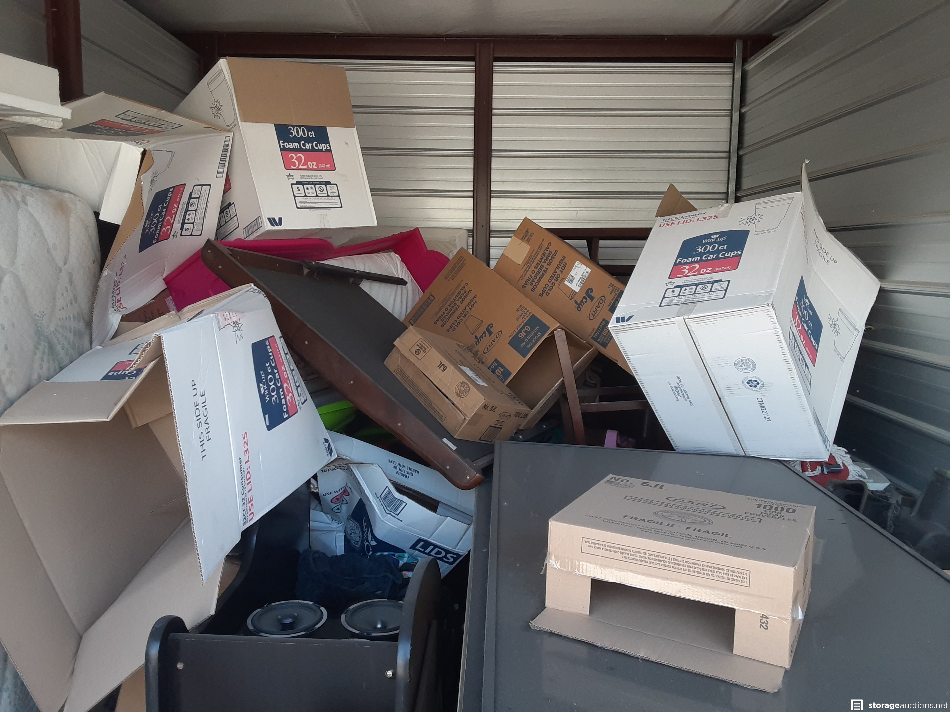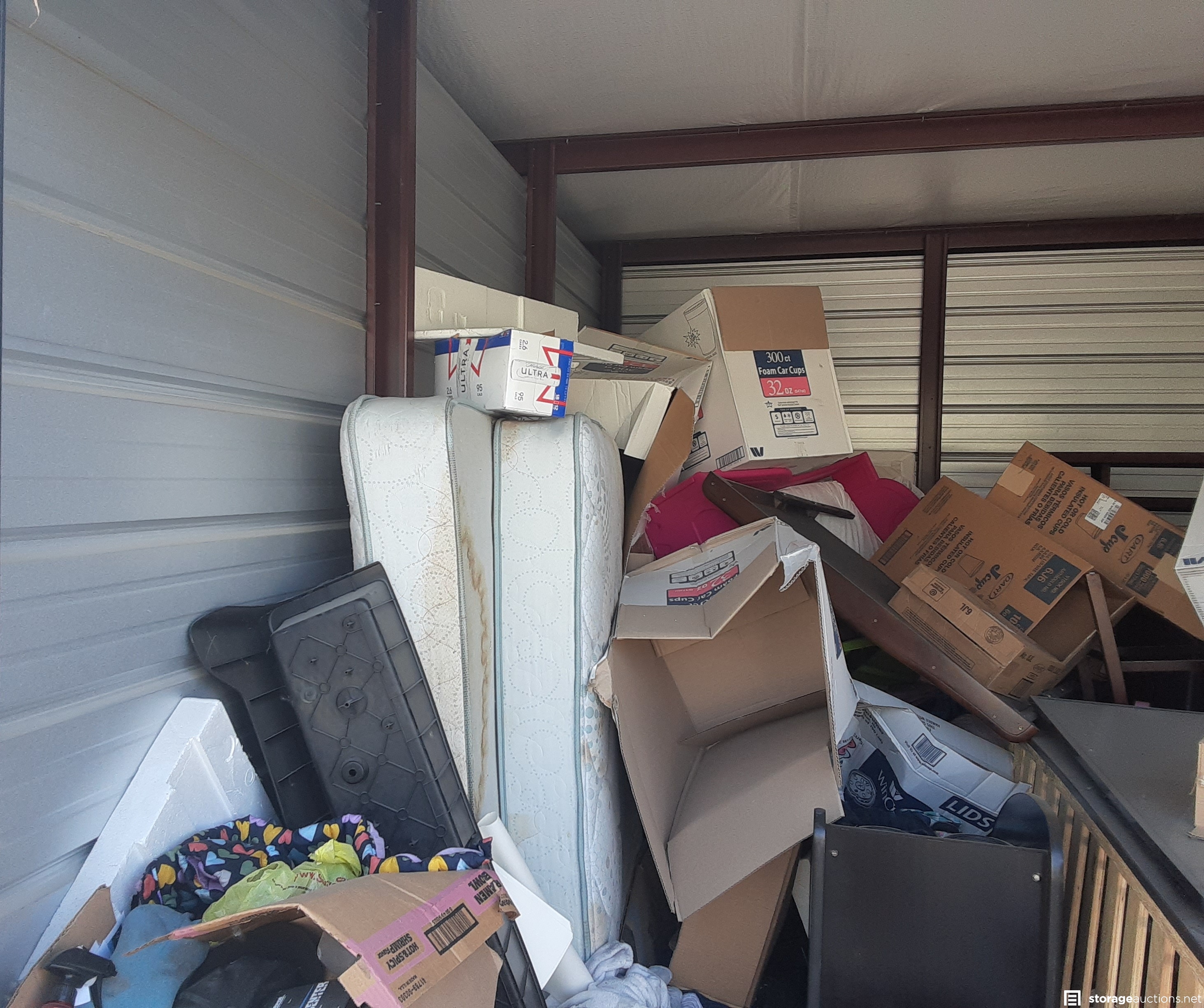 Boxes, kids bed, mattresses, kitchen chairs, speakers, dresser, mop, towing hitch, gas can, miscellaneous items. Previously up for auction but we stopped the sale because the tenant paid a significant portion of what was owed with a promise to pay the remaining amount. They never did. We never unlocked or reentered the unit. It has been sealed since the last time it was up for auction.