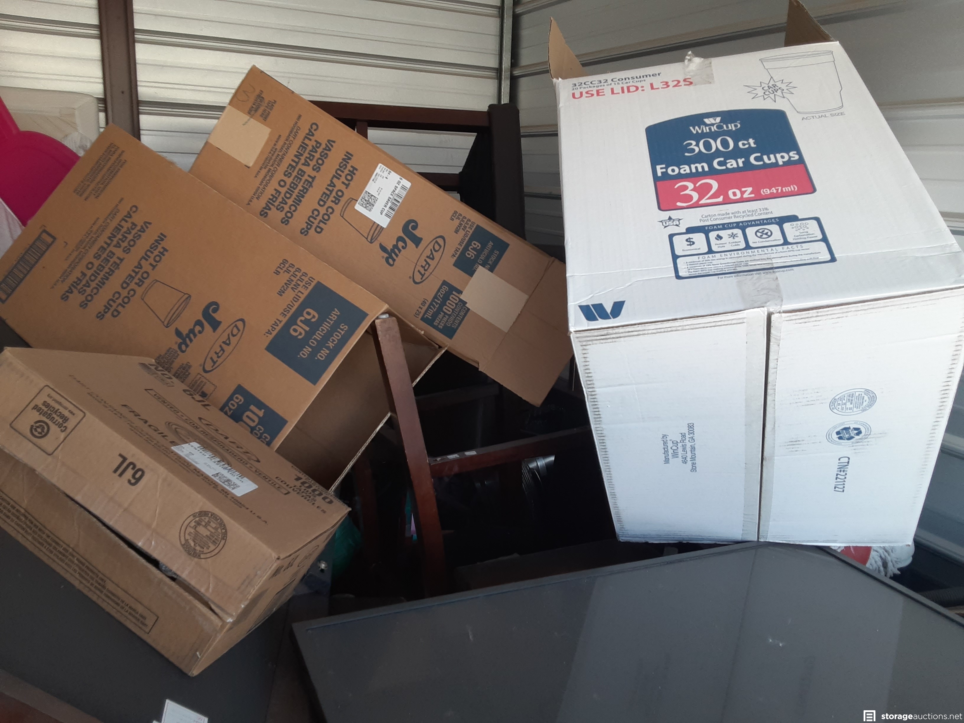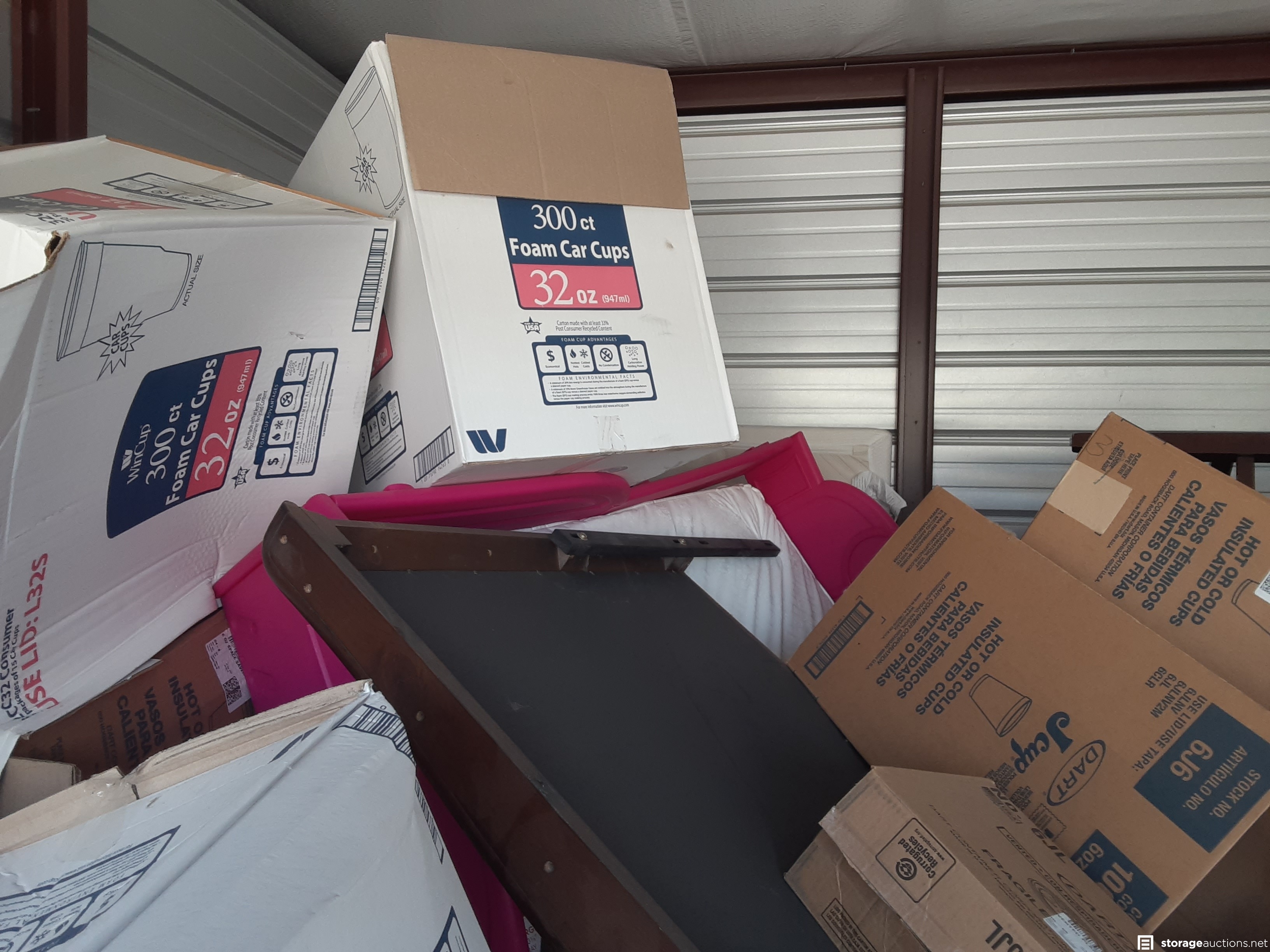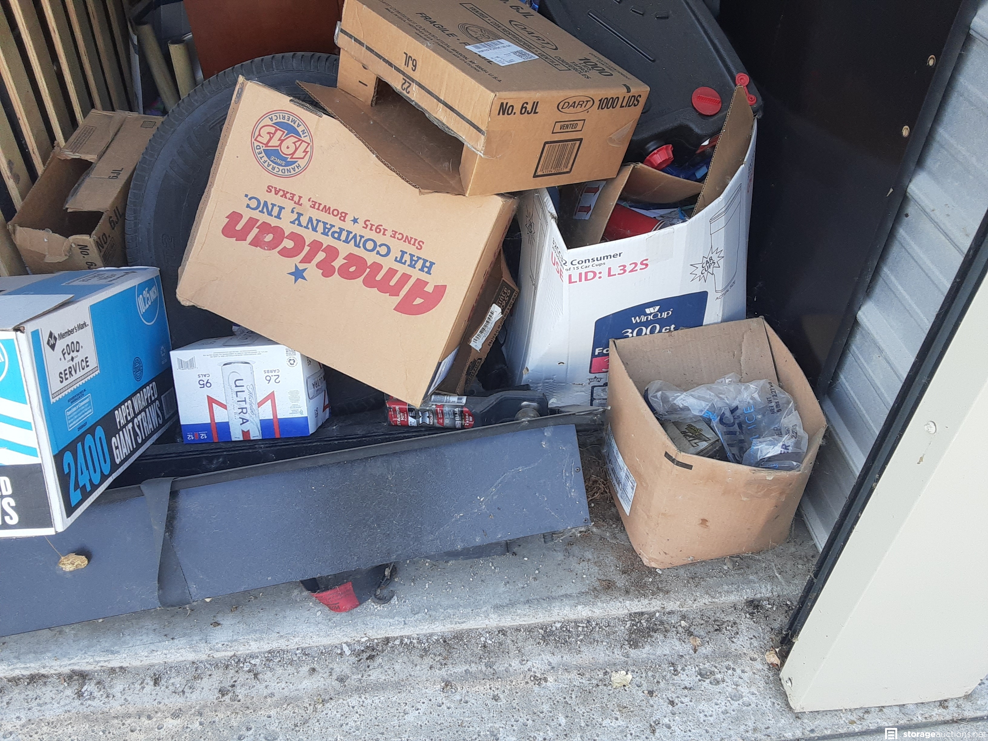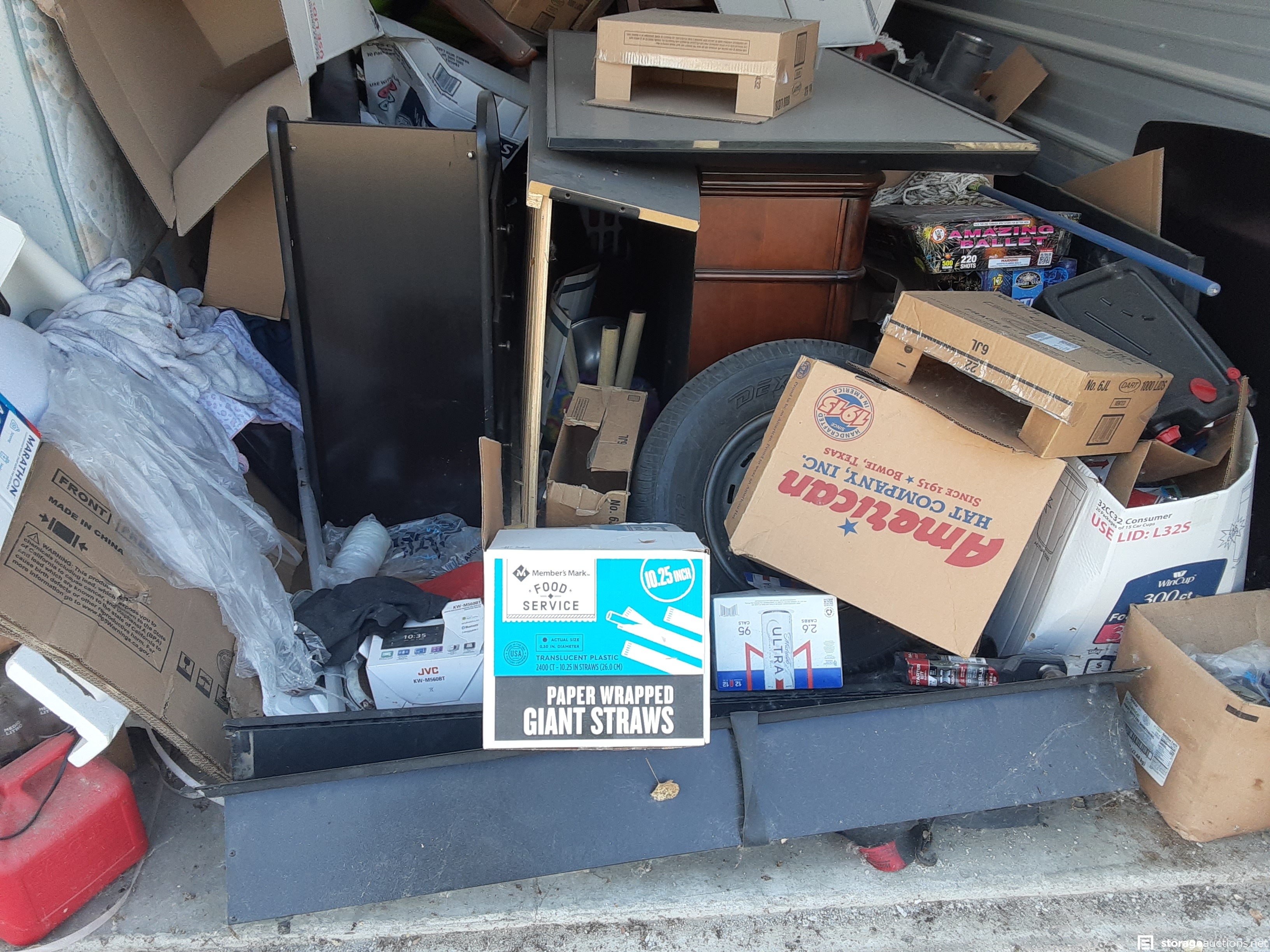 Boxes, kids bed, mattresses, kitchen chairs, speakers, dresser, mop, towing hitch, gas can, miscellaneous items. Previously up for auction but we stopped the sale because the tenant paid a significant portion of what was owed with a promise to pay the remaining amount. They never did. We never unlocked or reentered the unit. It has been sealed since the last time it was up for auction.