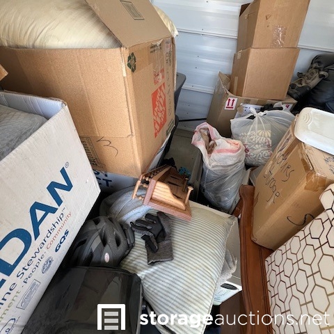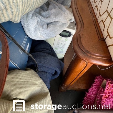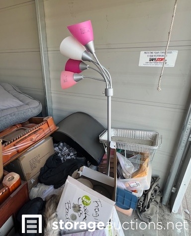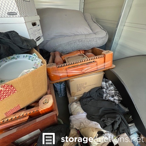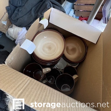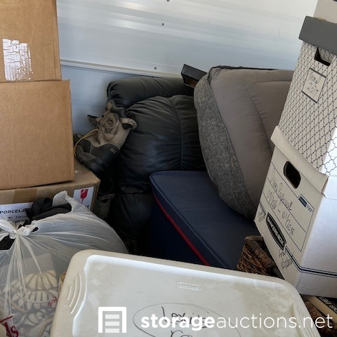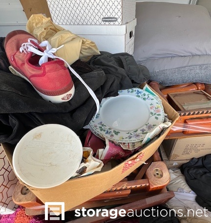 This unit has some household furniture, dishes, adult shoes, lamp, pet bed