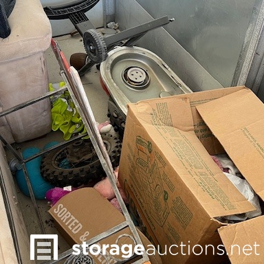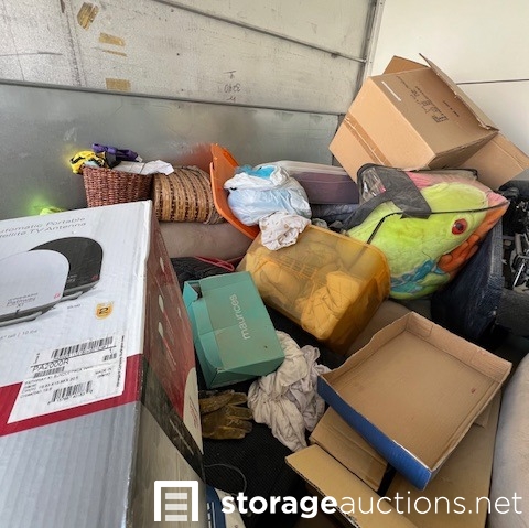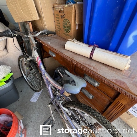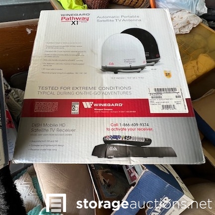 This unit has a large desk, kids bike, furniture, camping stuff, winegard pathway x1 portable satellite tv antenna