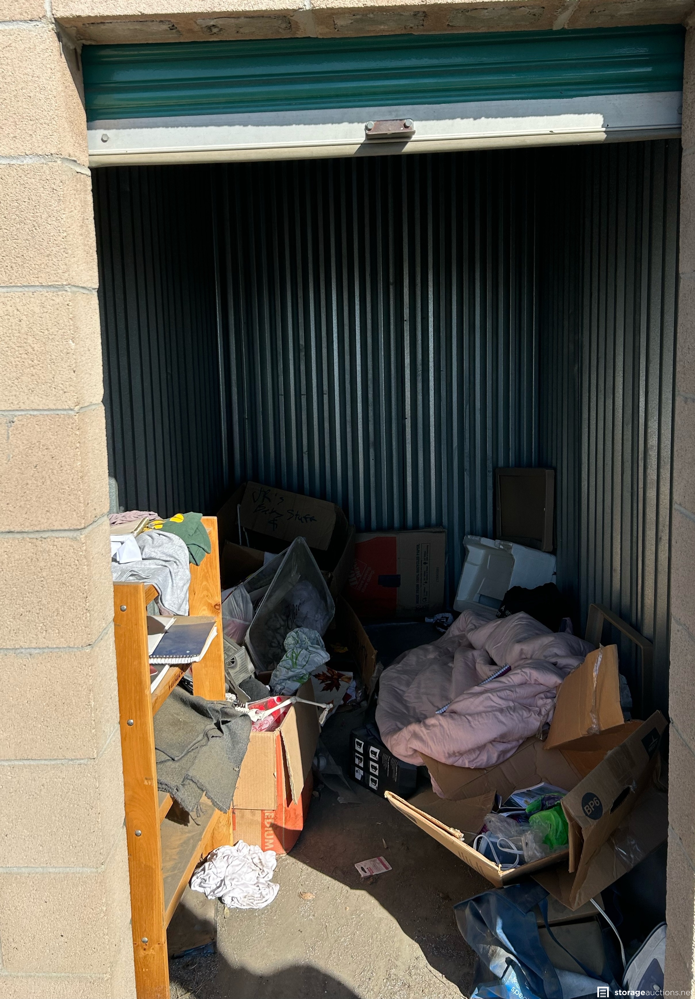 Additional Terms: VERY IMPORTANT - READ BEFORE YOU BID: Contact the facility immediately when auction ends to arrange payment for and pick up of the unit contents -You will not be allowed to enter the storage unit or touch any items prior to bidding -StorageAuction.net has final say on all issues including whether to refuse a bid if a bidder has disrupted an auction or violated our Terms of Use PAYMENT AND TERMS: -Buyers must be at least 18 years old to bid -You must have a Paid Invoice in order to pick up unit contents -If you have an Unpaid Invoice, please update your credit card in your account and click Pay Now to generate a Paid Invoice -You must provide a valid Photo I.D. to the Site Manager -A refundable cleaning deposit may also be charged -Sales tax will be charged at the facility's office at the time of purchase unless a copy of a resale license is provided. -Sales are final and bids are for the entire unit -You must bring your own lock to secure the unit PICK UP AND DISPOSAL: -You must remove all contents and broom sweep the unit within the required clean-out time -You are not allowed to use the on-site dumpsters -If you would like to rent the unit after the auction, the manager can assist you -Smoking is prohibited on the property -Please advise the manager once you have completely emptied the unit. The manager will inspect that the unit is clean and then refund your cleaning deposit -Do not park in customer parking -No pets allowed at facility -Respect the property, managers, tenants, and other buyers at all times. Thank you!