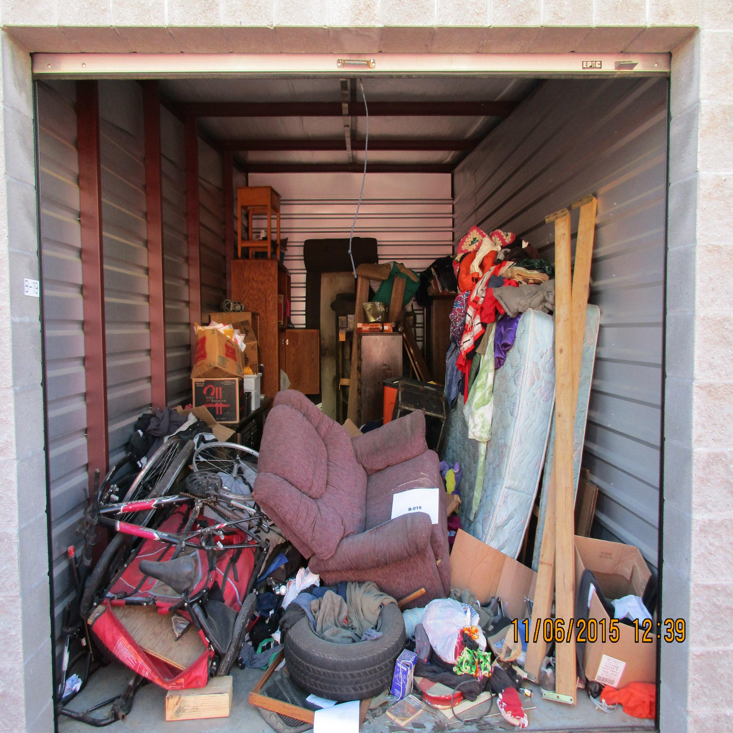 Additional Terms: **Tenants bidding on their own unit do not alleviate their debt obligation and will still owe the full balance due on the unit.** 1. Auction units must be paid in Cash Only at the facility where the unit is located. 2. Cleaning Deposit paid in Cash and only returned after approved inspection of unit. 3. Auction Buyer needs to fill out facility buyer???s agreement. 4. Auction buyer must show ID or have letter stating buyer???s representative name and they must show ID to gain access to unit. 5. Auction Buyers must contact the storage facility office where the unit is located within 72 hours after the auction ends. 6. Buyer must clean unit out during office hours only. No gate access code will be given out.
