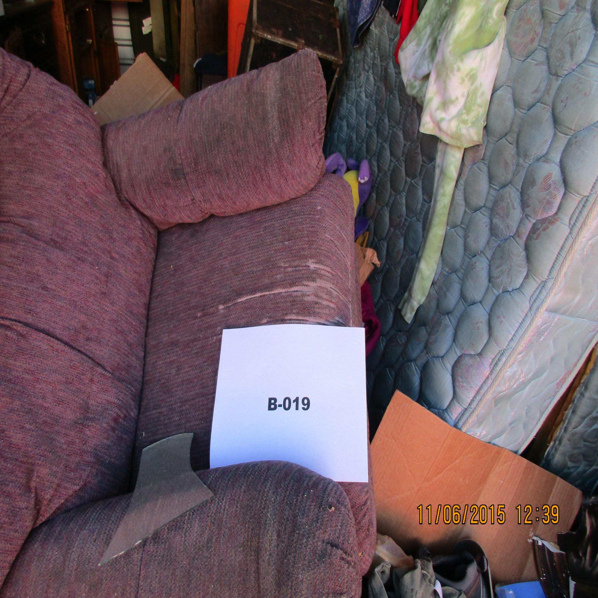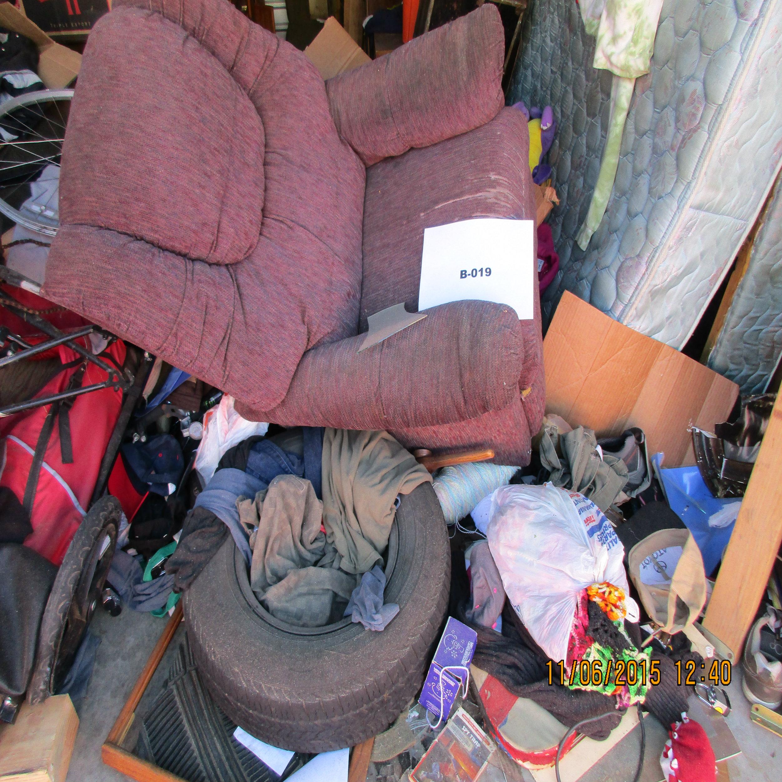 Bed frame, Bike parts, Boxes, Chair, DVDs, Mattress, Plastic containers, Sofa, Hutch, Tire, Camera, Dressers and Box spring