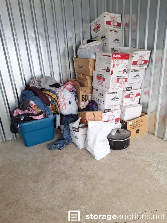 Unit appears to contain: clothes, crockpot and boxes that appear to have contents.
