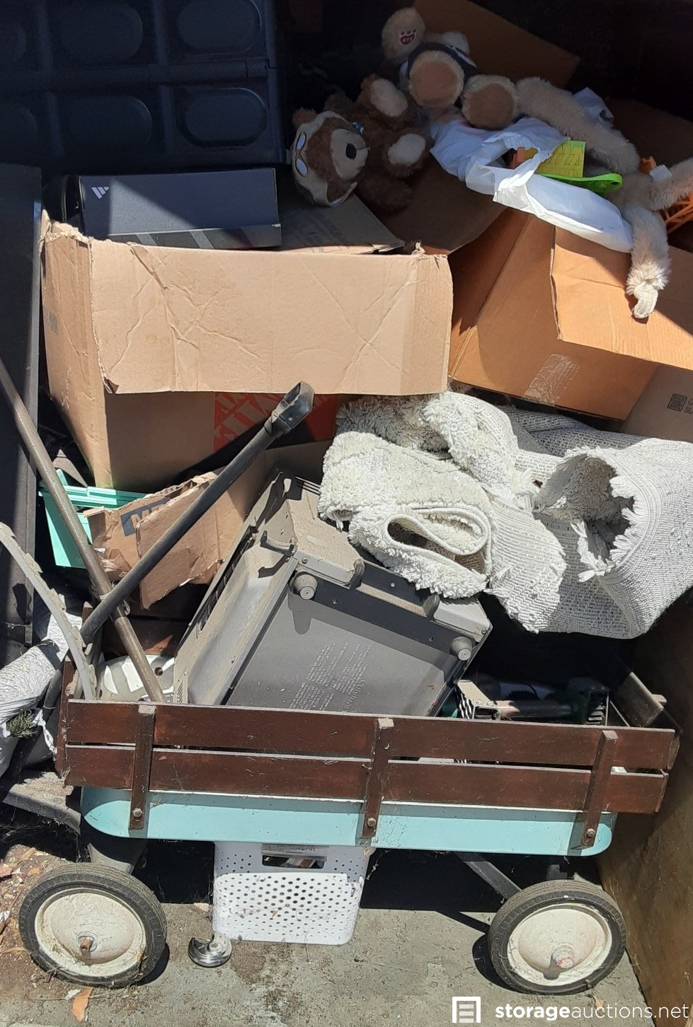 Bags, chairs, boxes, totes, file cabinets, wagon, household items, kids toys,