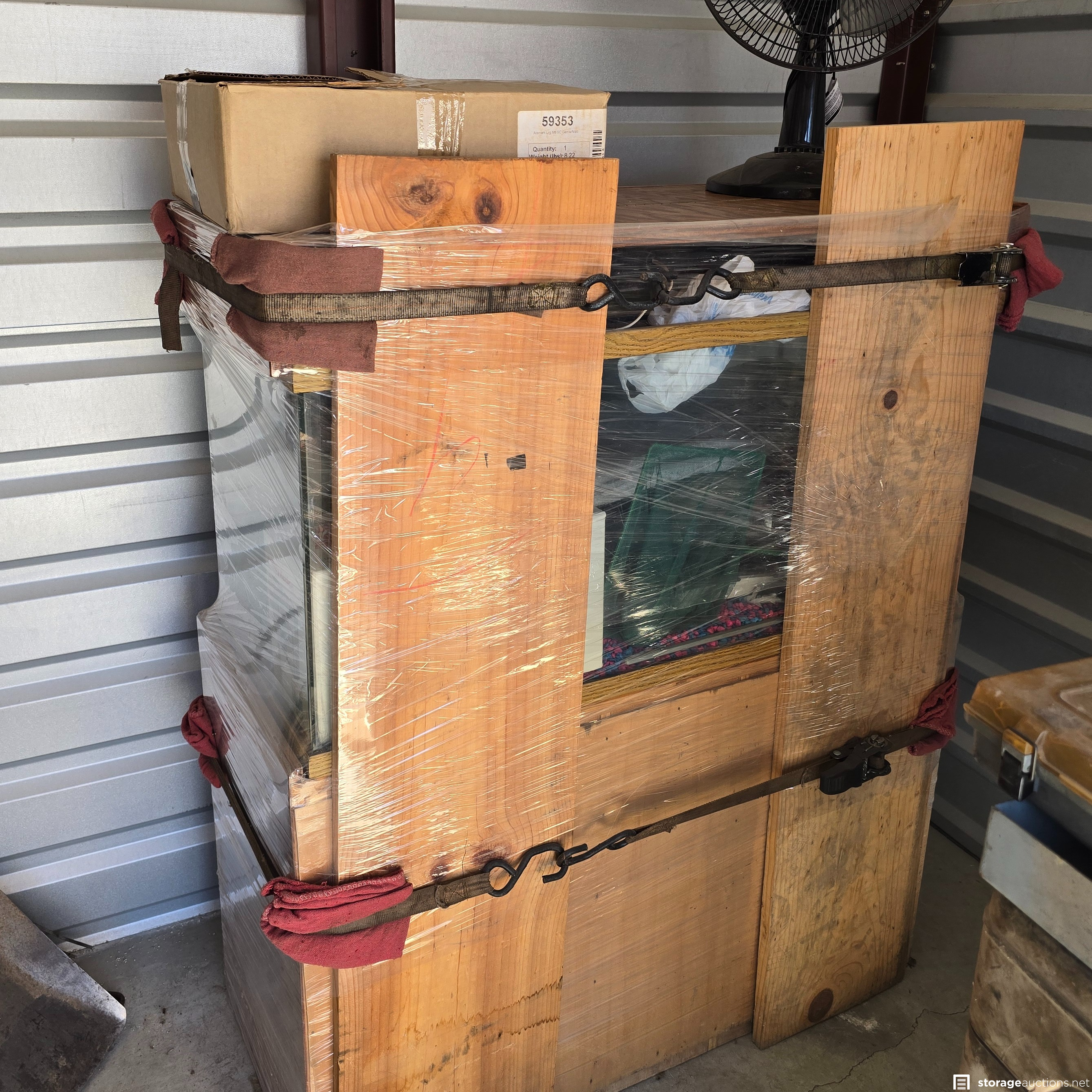 Additional Terms: **Tenants bidding on their own unit do not alleviate their debt obligation and will still owe the full balance due on the unit.** 1. Auction units must be paid in Cash Only at the facility where the unit is located. 2. Cleaning Deposit paid in Cash and only returned after approved inspection of unit. 3. Auction Buyer needs to fill out facility buyer's agreement. 4. Auction buyer must show ID or have letter stating buyer's representative name and they must show ID to gain access to unit. 5. Auction Buyers must contact the storage facility office where the unit is located within 72 hours after the auction ends. 6. Buyer must clean unit out during office hours only. No gate access code will be given out. 7. Contact facility immediately when auction ends, to make arrangements to pay for and pick up the unit. 8. You must have a Paid Invoice in order to pick up unit. 9. You must be 18 years old to bid. 10. You must provide a valid photo I.D. to the Site Manager. 11. You must bring your own lock to secure the unit. 12. You will not be allowed to enter the storage unit or touch any items prior to bidding. 13. Sales are final and bids are for the entire unit. 14. The Auctioneer has final say on all issues, including whether to refuse a bid if a bidder has disrupted an auction or violated any rules. 15. Immediate cash payment is required when you purchase a unit. 16. You have 72 hours to remove the contents entirely and broom sweep the unit. 17. A $50 refundable cleaning deposit is also charged on every unit you buy. 18. You must remove all of the contents and trash from the unit and facility grounds. 19. You are not allowed to use the dumpsters on the facility property. 20. Please advise the manager once you have completely emptied the unit. The manager will inspect that the unit is clean and then refund your cleaning deposit. 21. Smoking is prohibited on storage facility properties. 22. No Pets allowed at facility 23. Respect the Property, Managers, Tenants and other Buyers at all times.