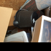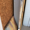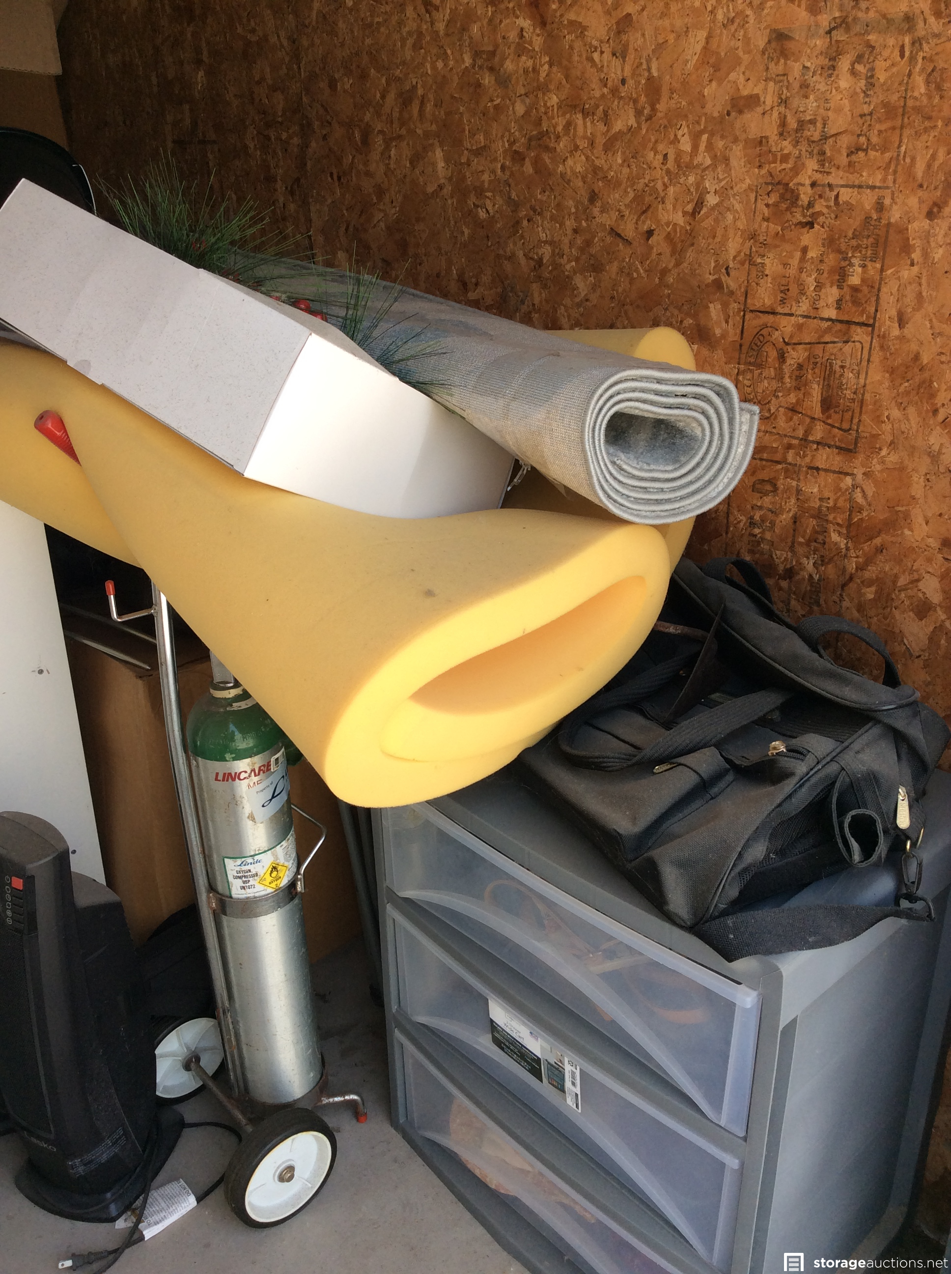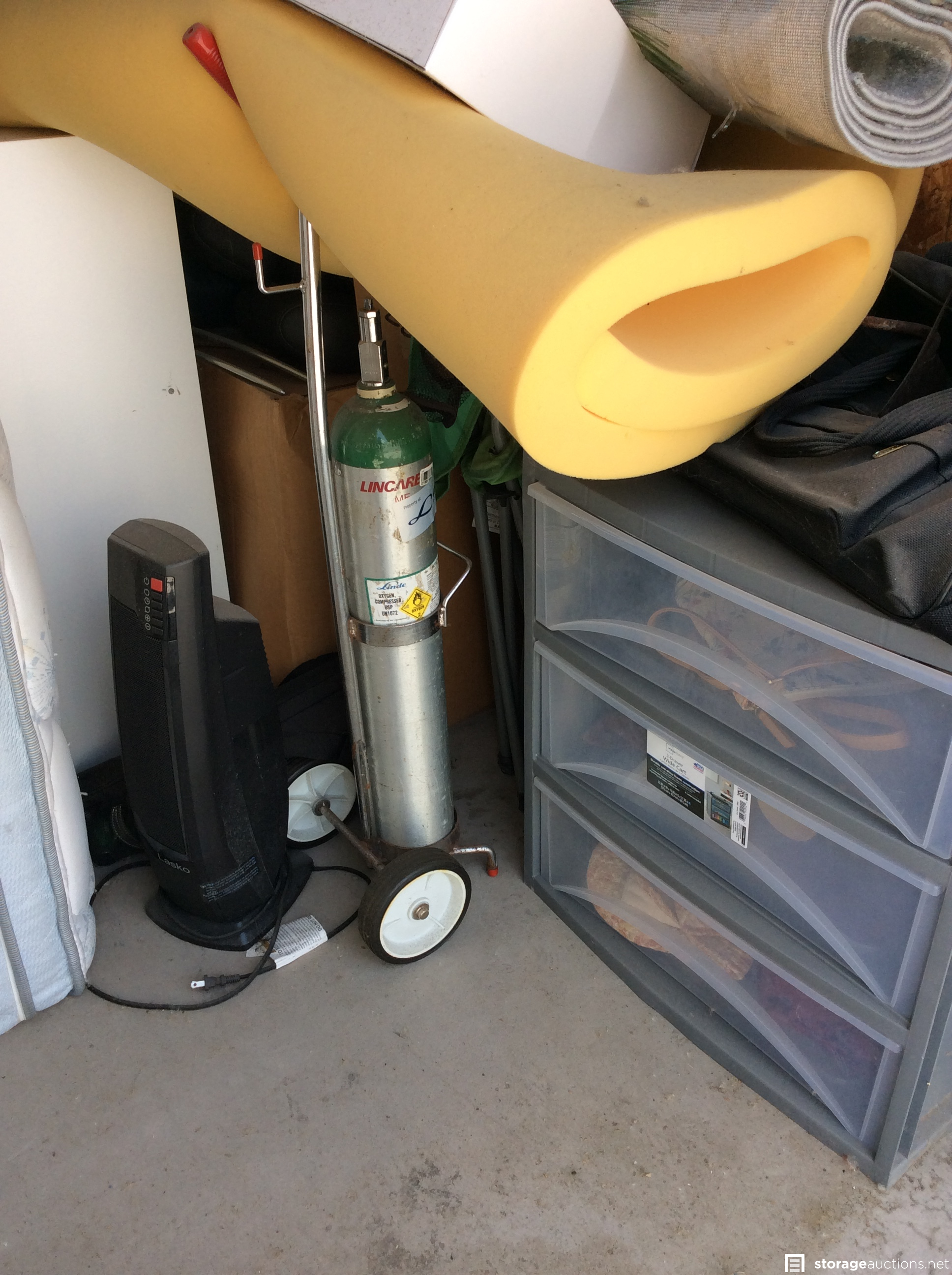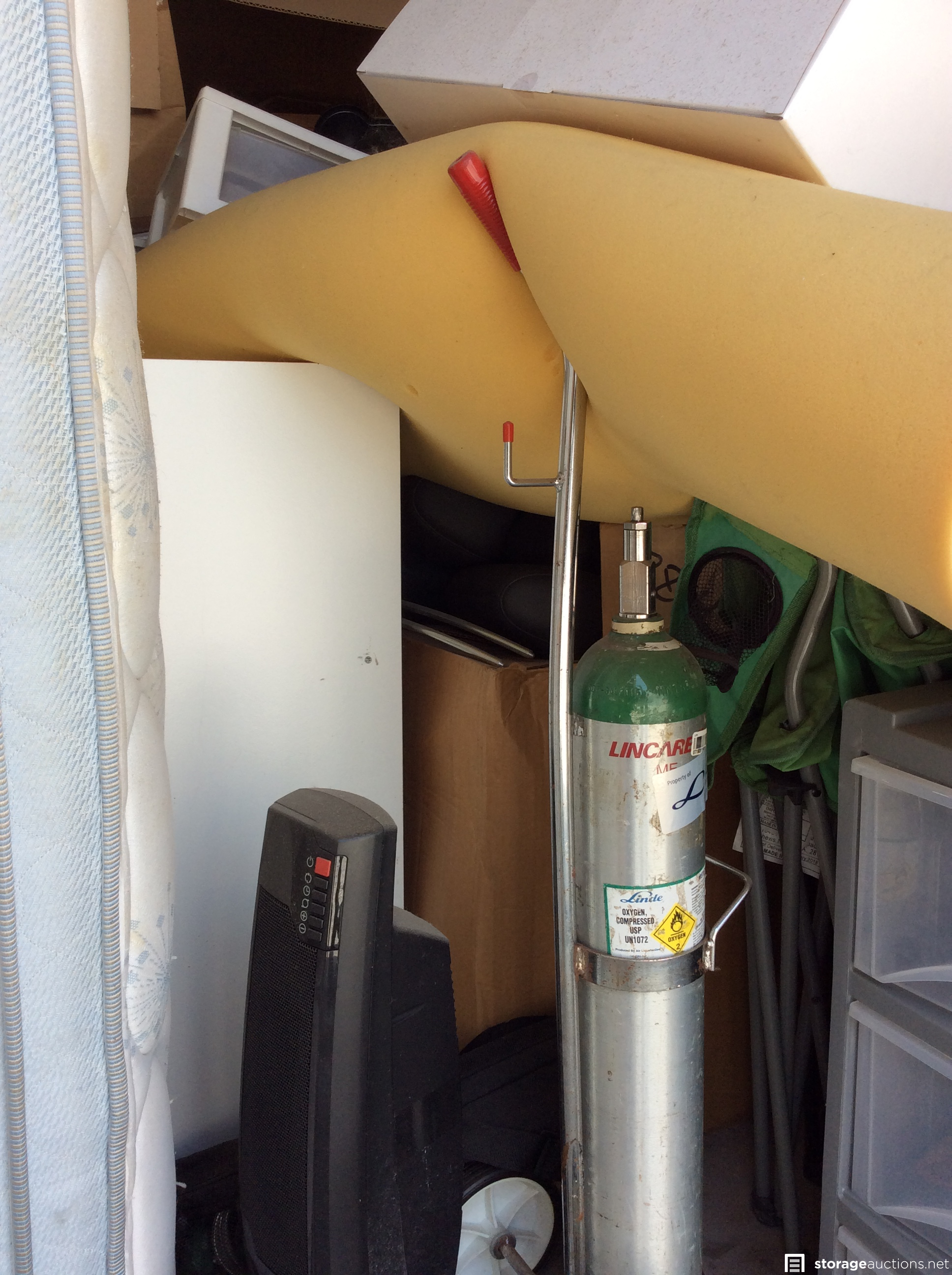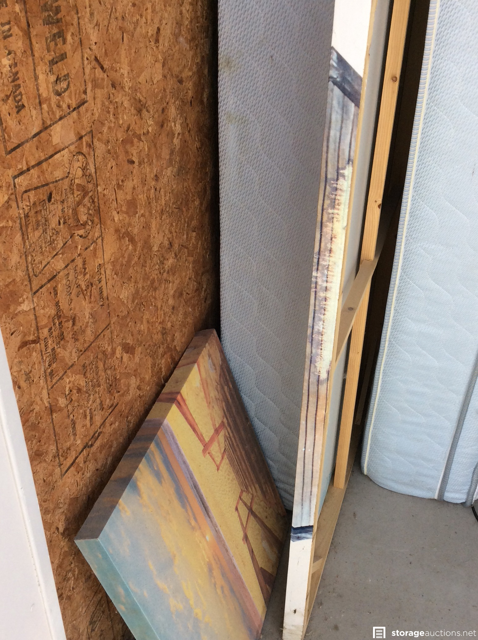 Canvas folding chairs, area rugs, totes, oxygen tank?, boxes, wall canvas art, Christmas wreath