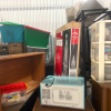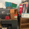 JEWELRY CABINET, DESK, TVS, TOTES, COAT RACK, CLOCK, MICROWAVE, TOASTER, BOXES, VANITY, CLOCK, BOXES, MONITOR, MISC ITEMS