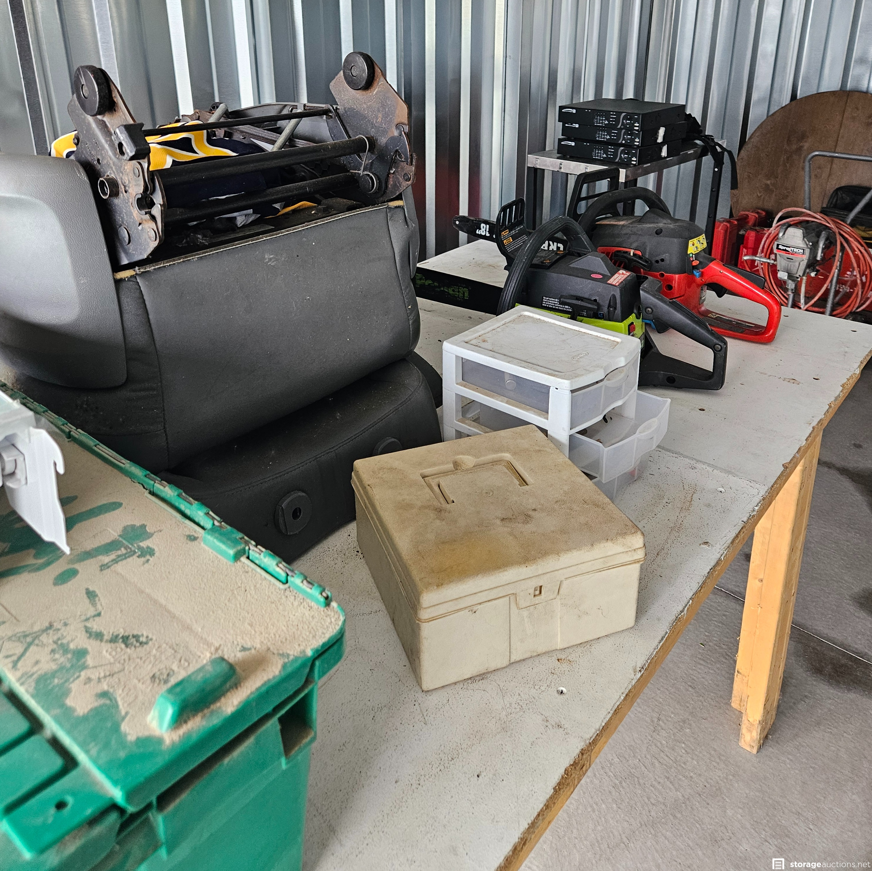 Fridge, Work table, Kitchen table, Kitchen Chairs, vehicle seat, Saws, Powerwasher, Drills, Tools and Tool Boxes, Electronics,