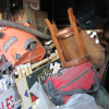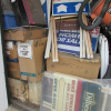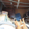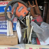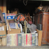 10+ boxes, wooden china cabinet, stool, 2 wooden chairs, bicycle, briefcase, chest of drawers, shop vacuum, duffle bag, real-estate signs, 2 plastic totes, small tackle box, misc. wooden furniture.