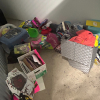 Indoor pet kennel, misc clothes and shoes, misc household items