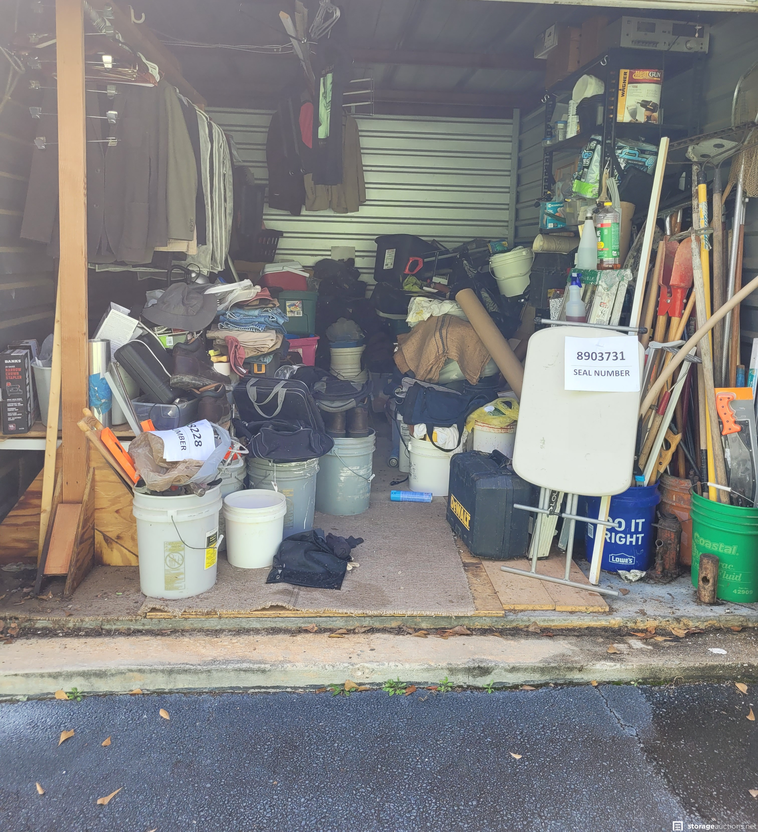 Additional Terms: All units must be paid for at the time of sale. Credit card and Money Orders will be the only forms of payment accepted. No checks or Cash. No one under the age of 18 is allowed to attend the sale. Each person attending must agree to follow all Rules and Regulations of the sale. The landlord reserves the right to bid at the sale. All purchased goods are sold "as is" and must be removed by 5:00 p.m. on the day following the sale. Buyers must provide a current, original or a photocopy of their original resale permit at time of sale in lieu of sales tax. This sale is subject to cancellation in the event of settlement between landlord and obligated party