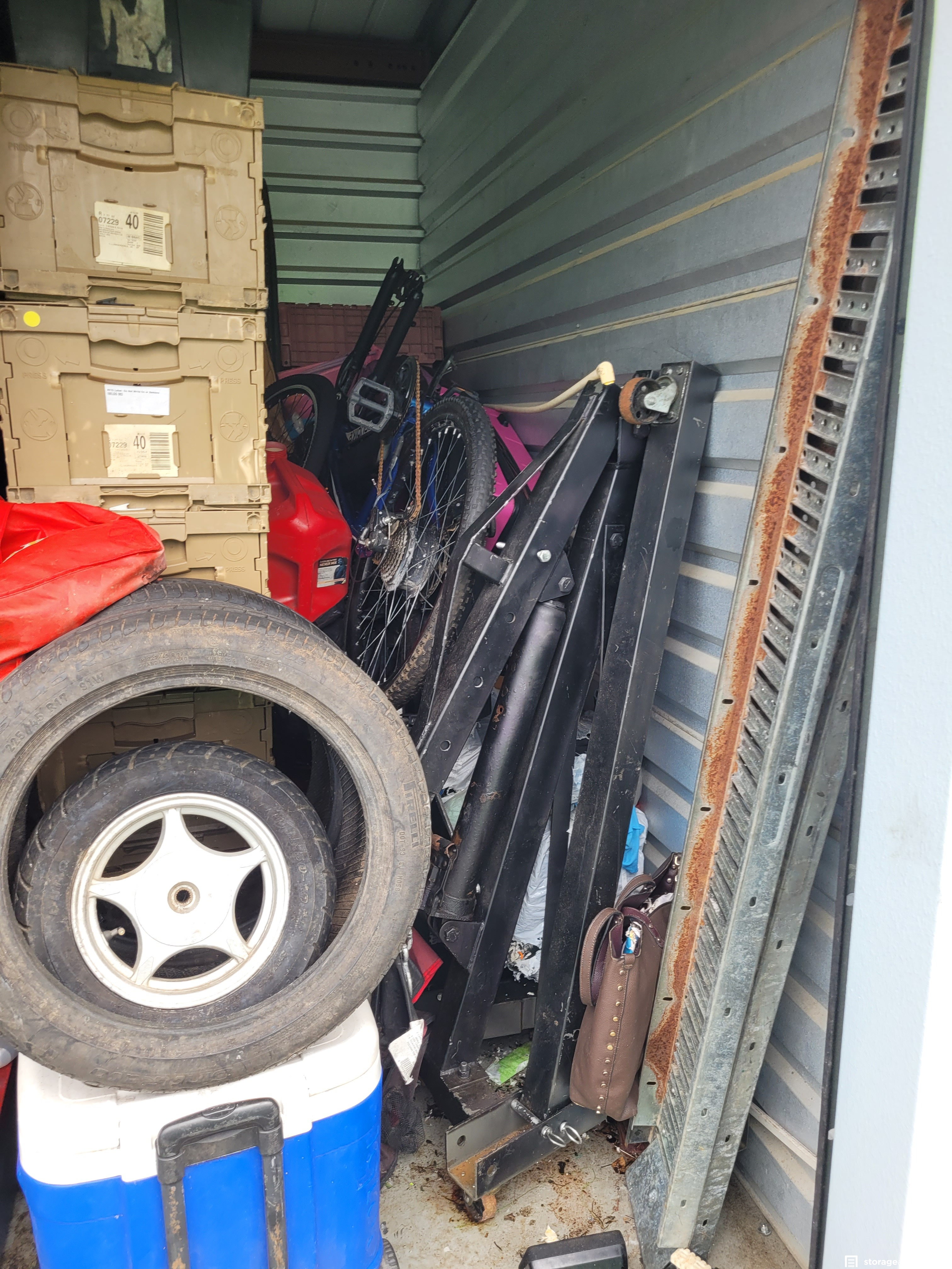 Boxes, Totes, Tools, Tires, Dolly, Motor Jack, Bike
