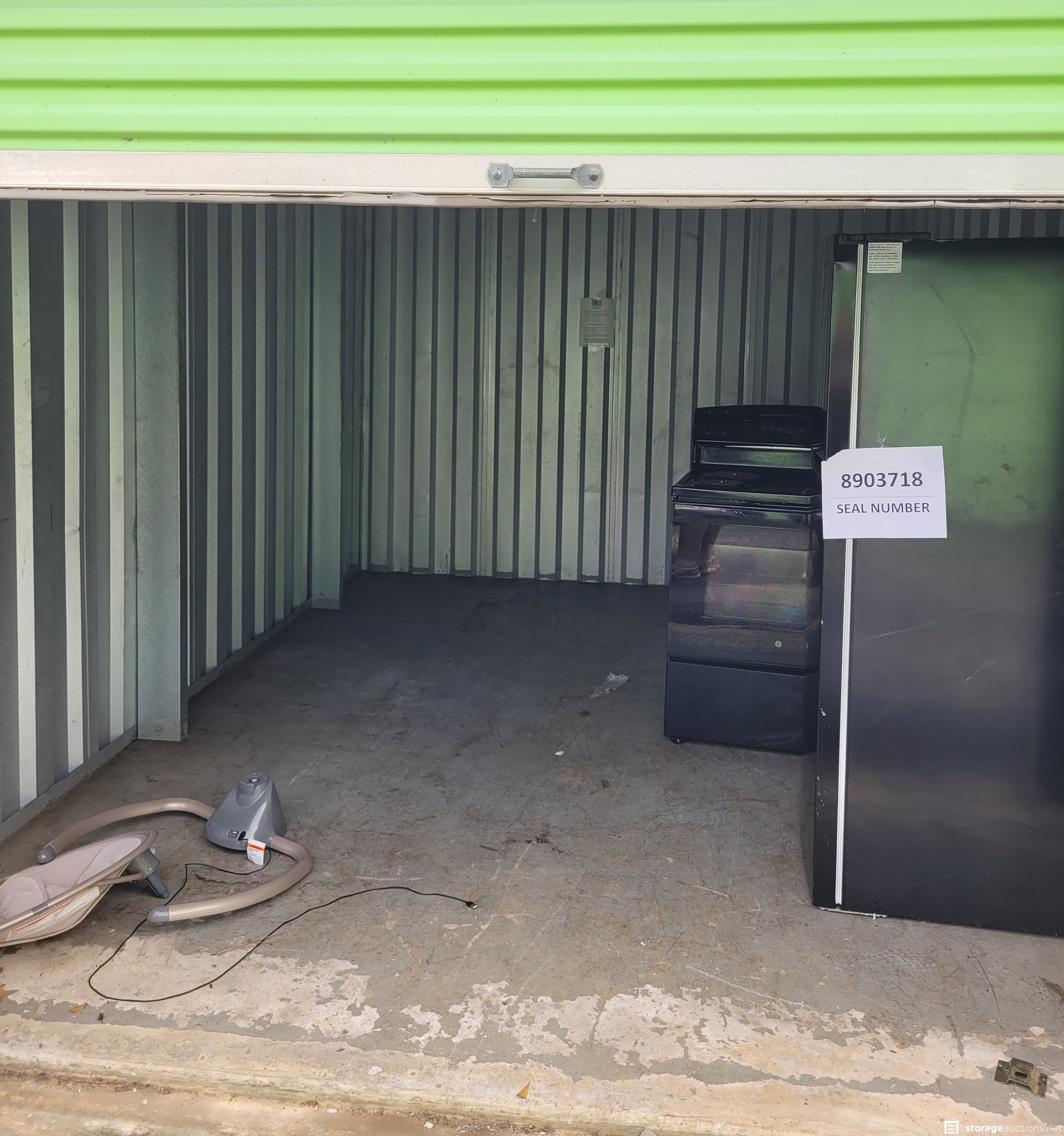 Additional Terms: All units must be paid for at the time of sale. Credit card and Money Orders will be the only forms of payment accepted. No checks or Cash. No one under the age of 18 is allowed to attend the sale. Each person attending must agree to follow all Rules and Regulations of the sale. The landlord reserves the right to bid at the sale. All purchased goods are sold "as is" and must be removed by 5:00 p.m. on the day following the sale. Buyers must provide a current, original or a photocopy of their original resale permit at time of sale in lieu of sales tax. This sale is subject to cancellation in the event of settlement between landlord and obligated party