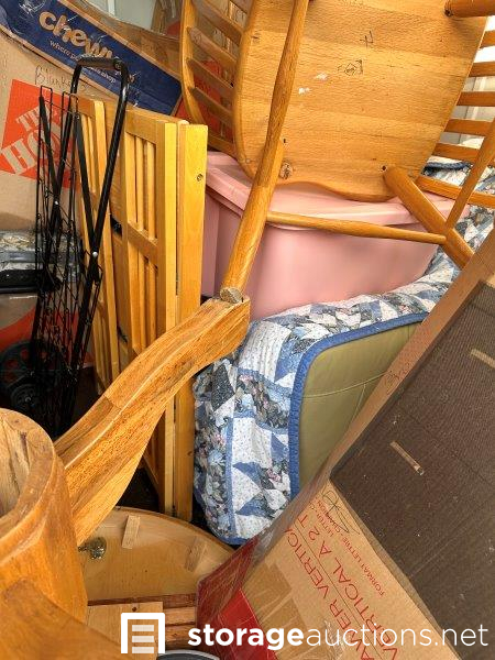Unit appears to contain: Vintage quilts, dining table, dining chairs, vacuum, Christmas tree, printer, desktop