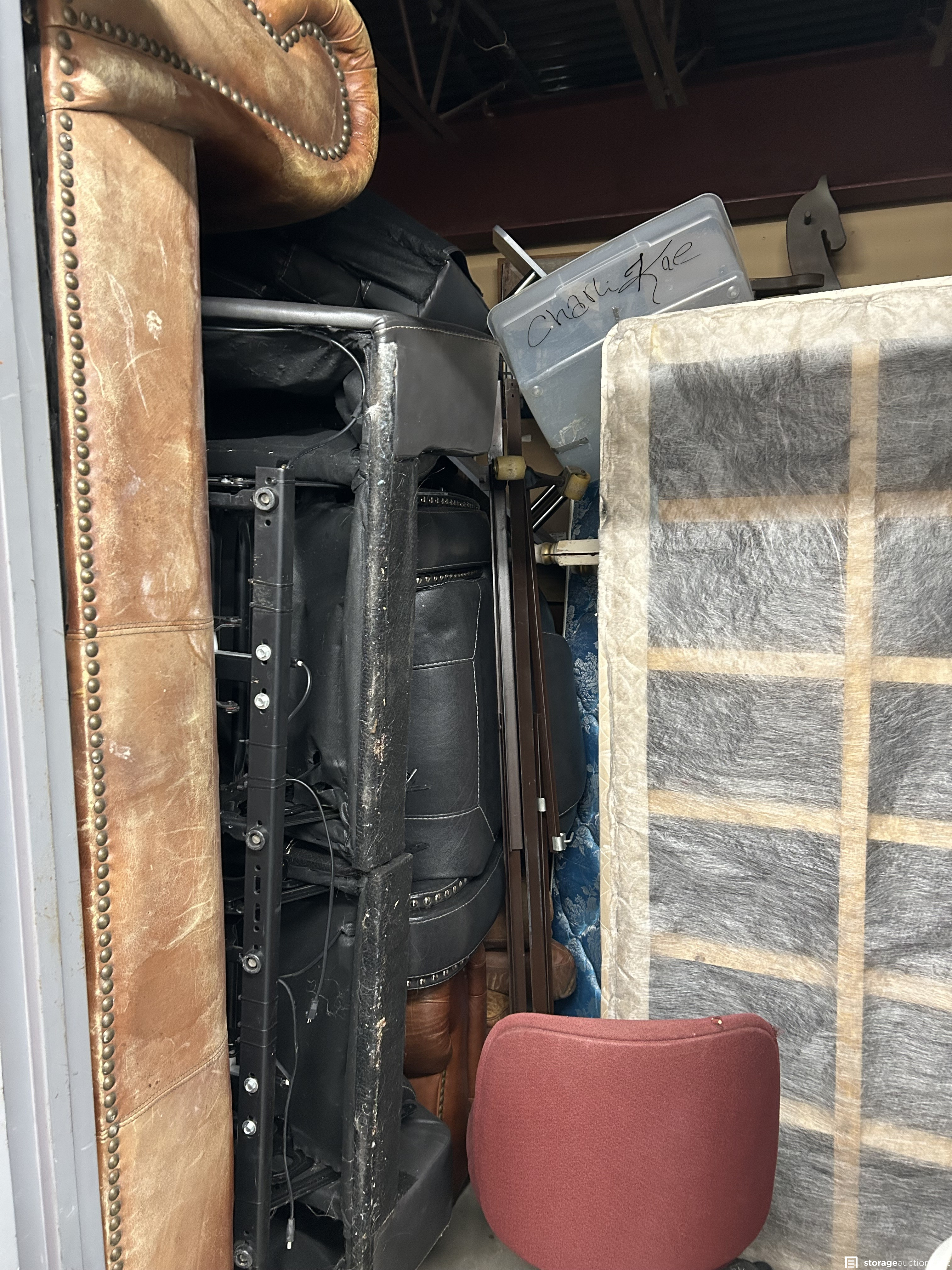 This unit has a hutch, mattress, bags, recliner, couch, totes