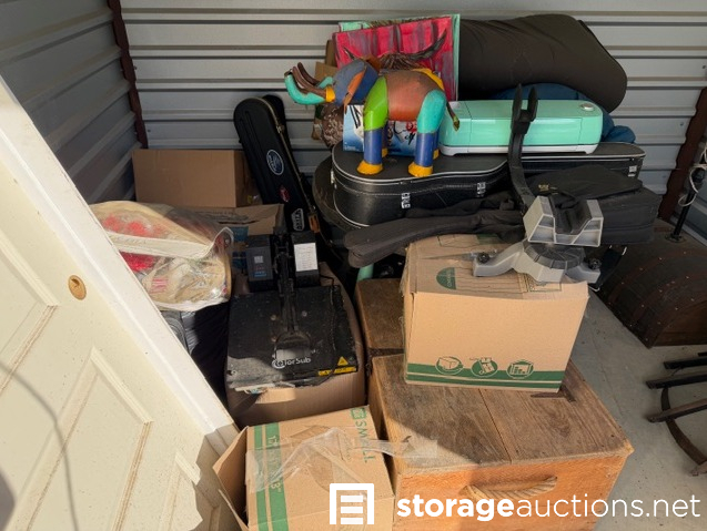 Unit has musical instrament cases, complete door, t-shirt press, and house hold decor.