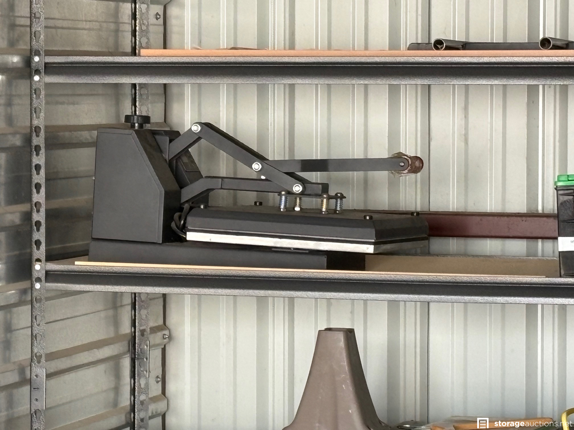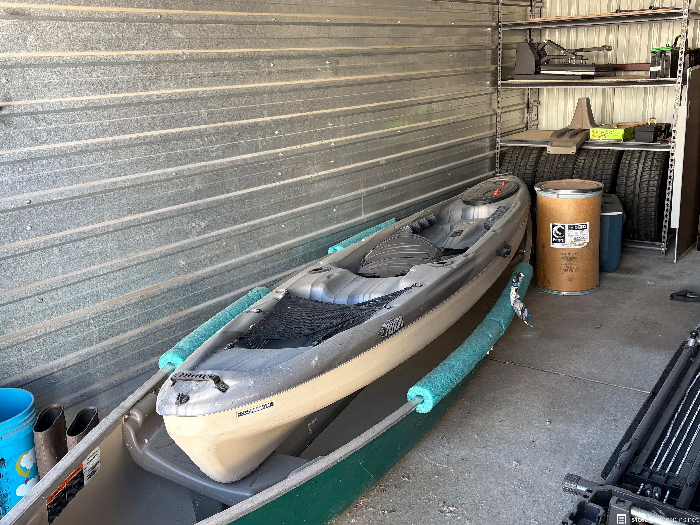 HEAT PRESS, ROWER, BED FRAME, TOOL BOX, SHELVING, DRESSER, MISC ITEMS, SAFE, CANOE, KAYAK, MISC ITEMS