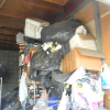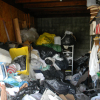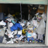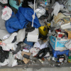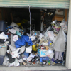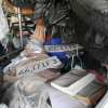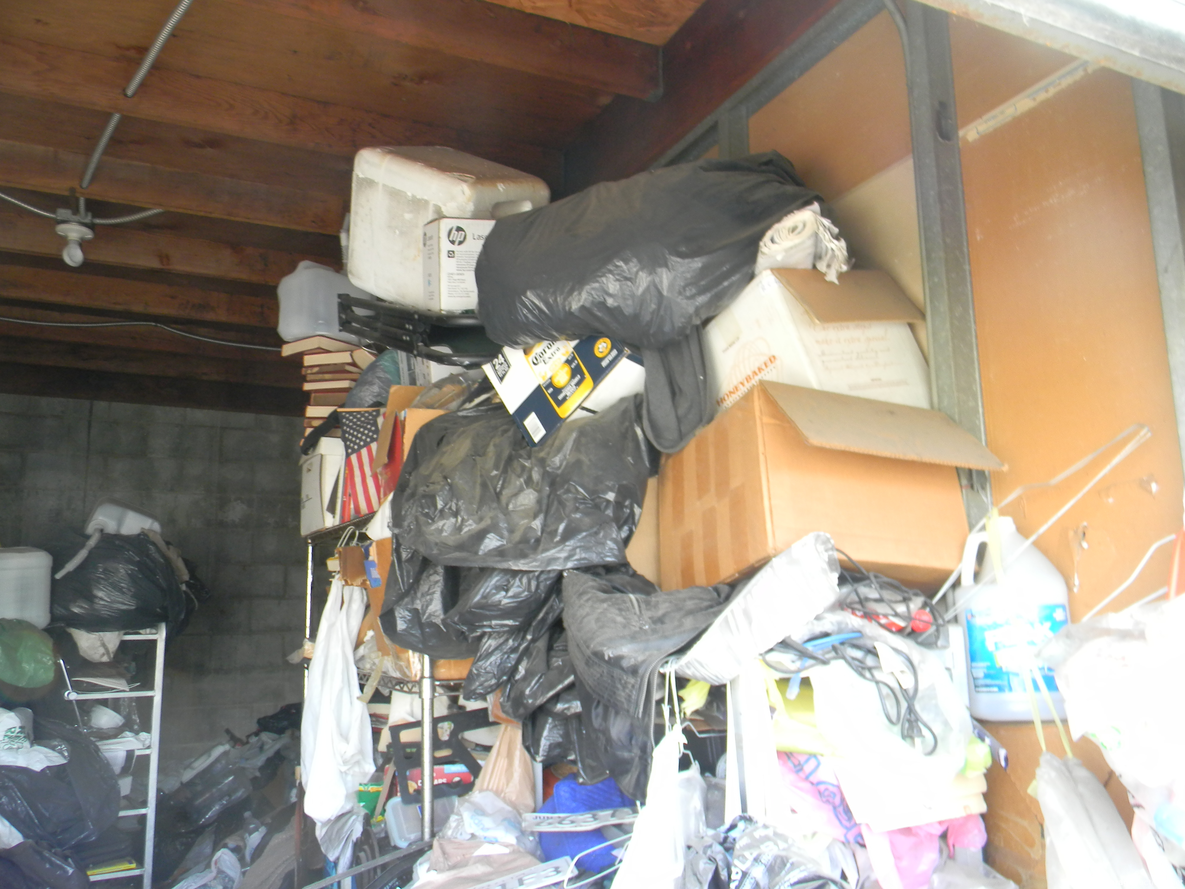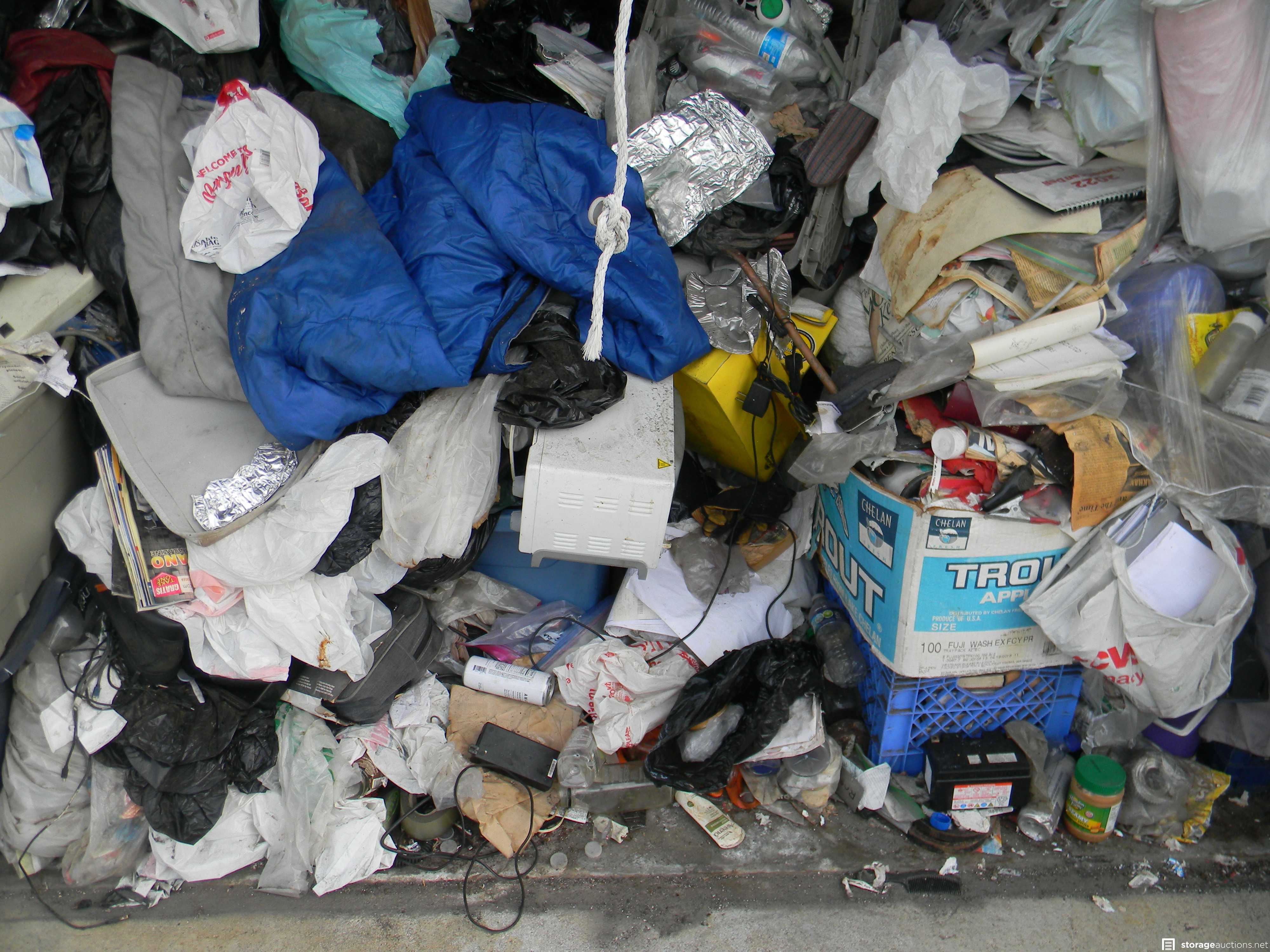SMALL ICE CHEST, MICROWAVE, BOOKS, SHELVES, CLOTHING, LEATHER JACKET, RECYCLING