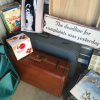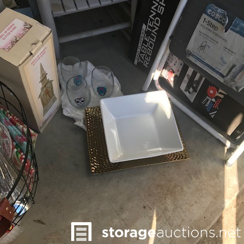 MANAGER'S SPECIAL.....Vinyl records, glassware, luggage (vintage and newer), Samsonite hardcase suitcase is locked - no key, stepstool, table tennis/rebound shuffleboard game, child's rocker, doll chair, old Vlasic pickle jar, bubble wrap, padded envelopes, drapes, wire basket, vase, Christmas items, fan, shoes, Baby Einstein books, Hot Wheels, screen building kit, carpet treads, wood serving tray. water toys, unopened box of Cuisinart knives, "Don't Tread on Me" arrow.