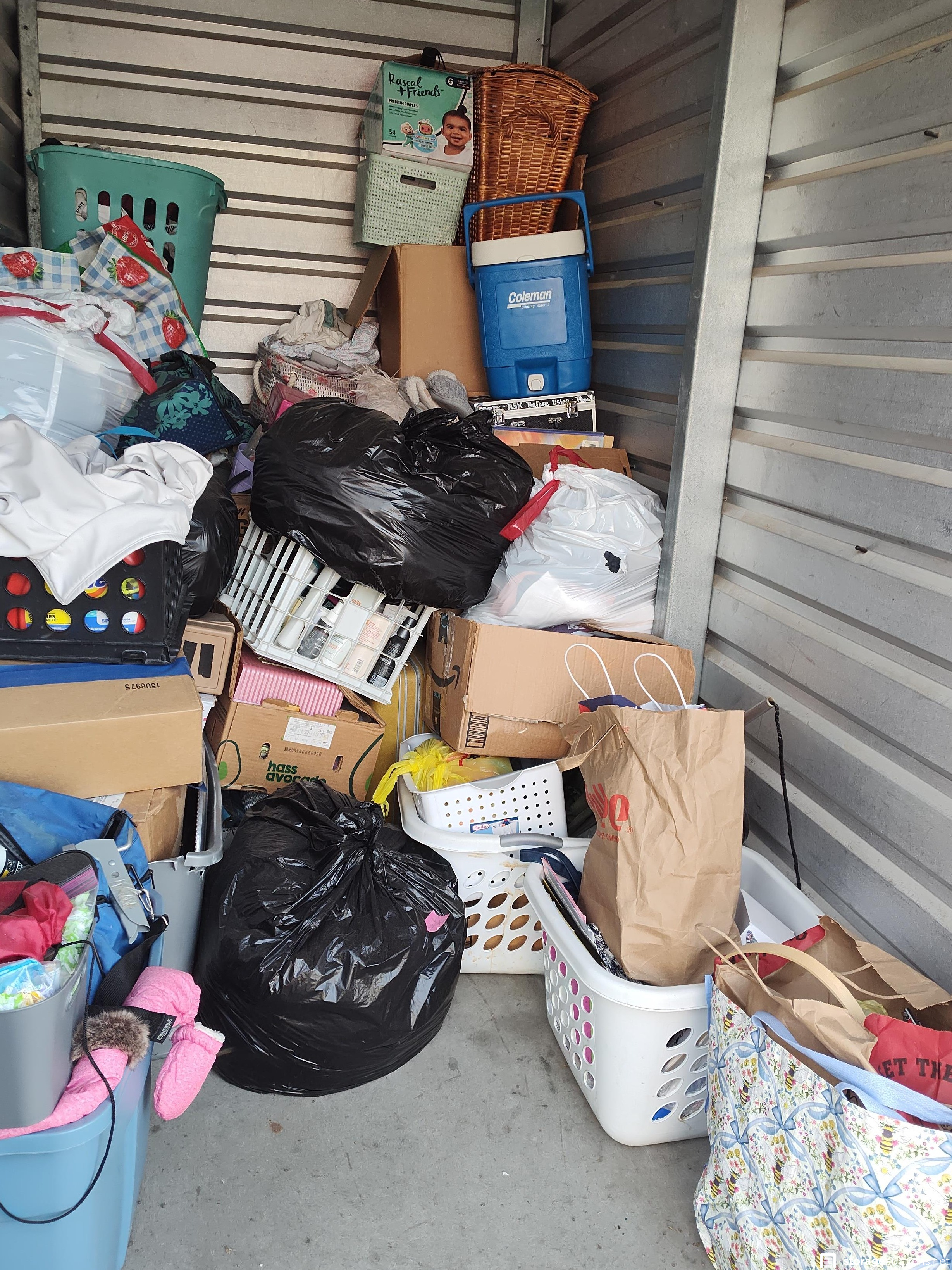 This unit has boxes, totes, cooler, baskets