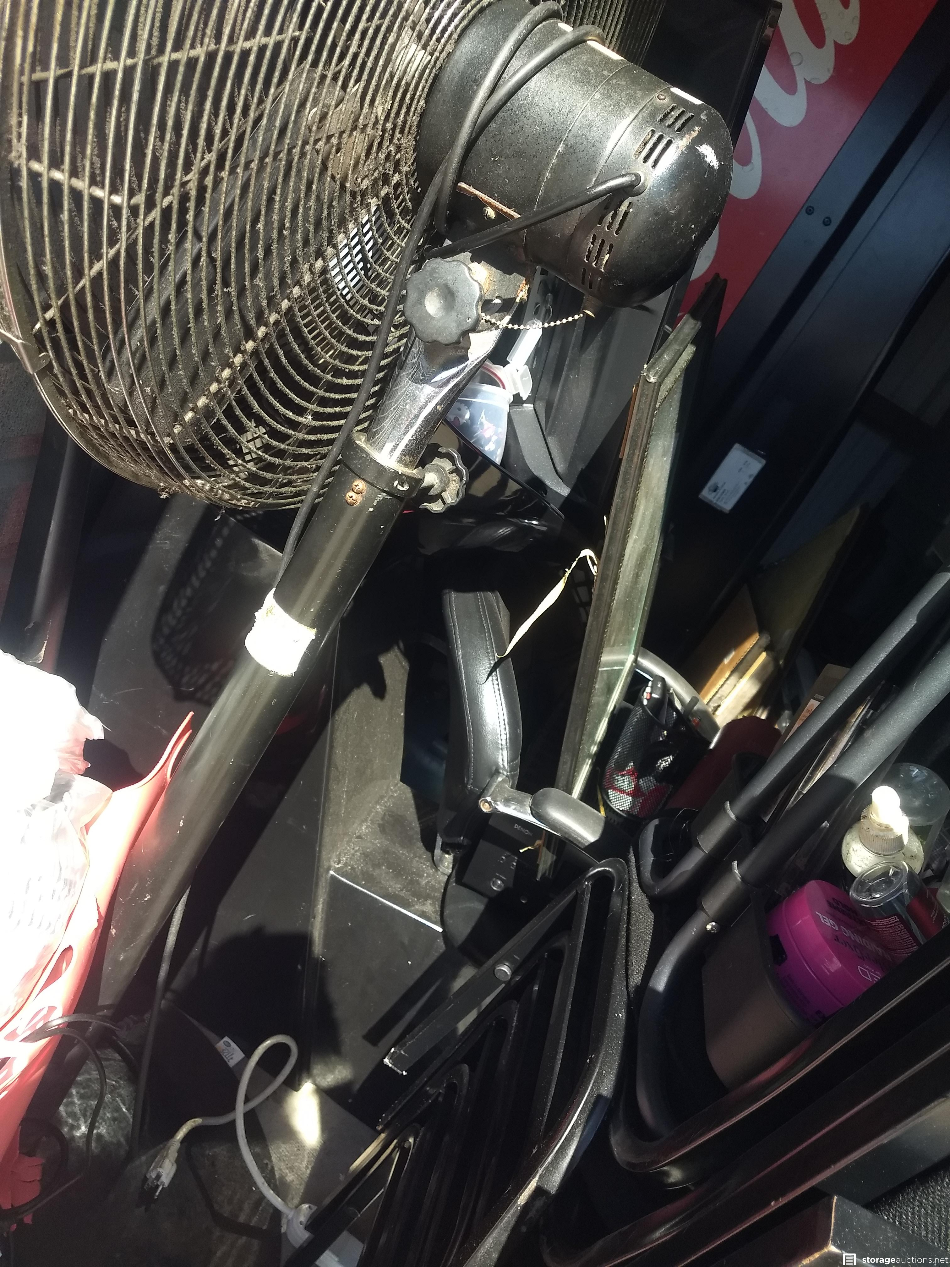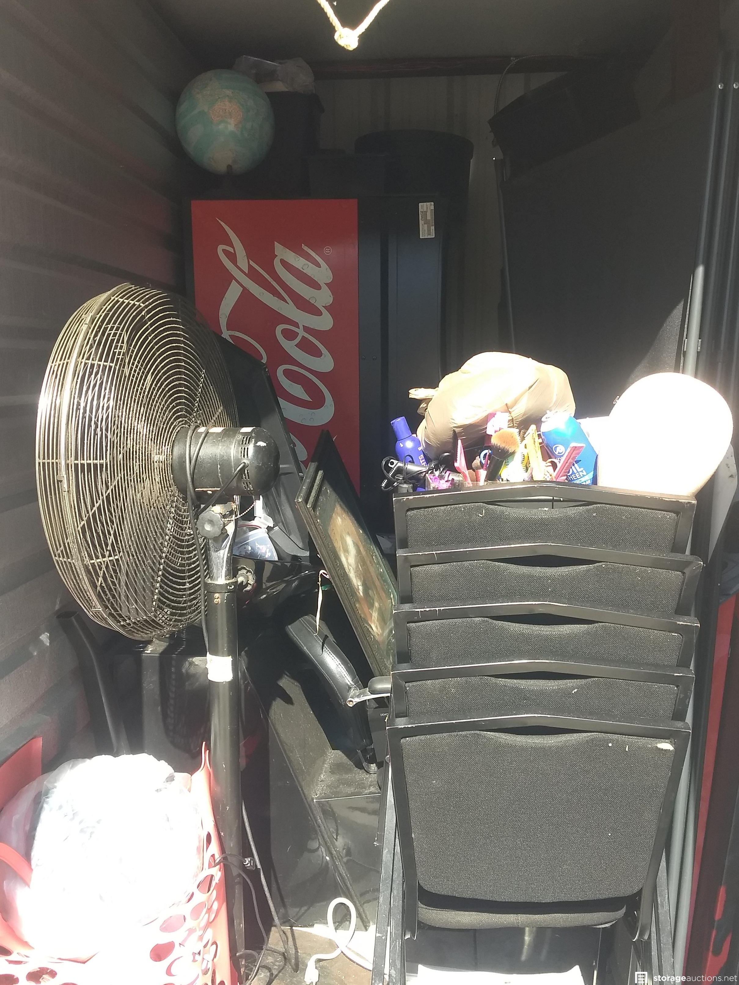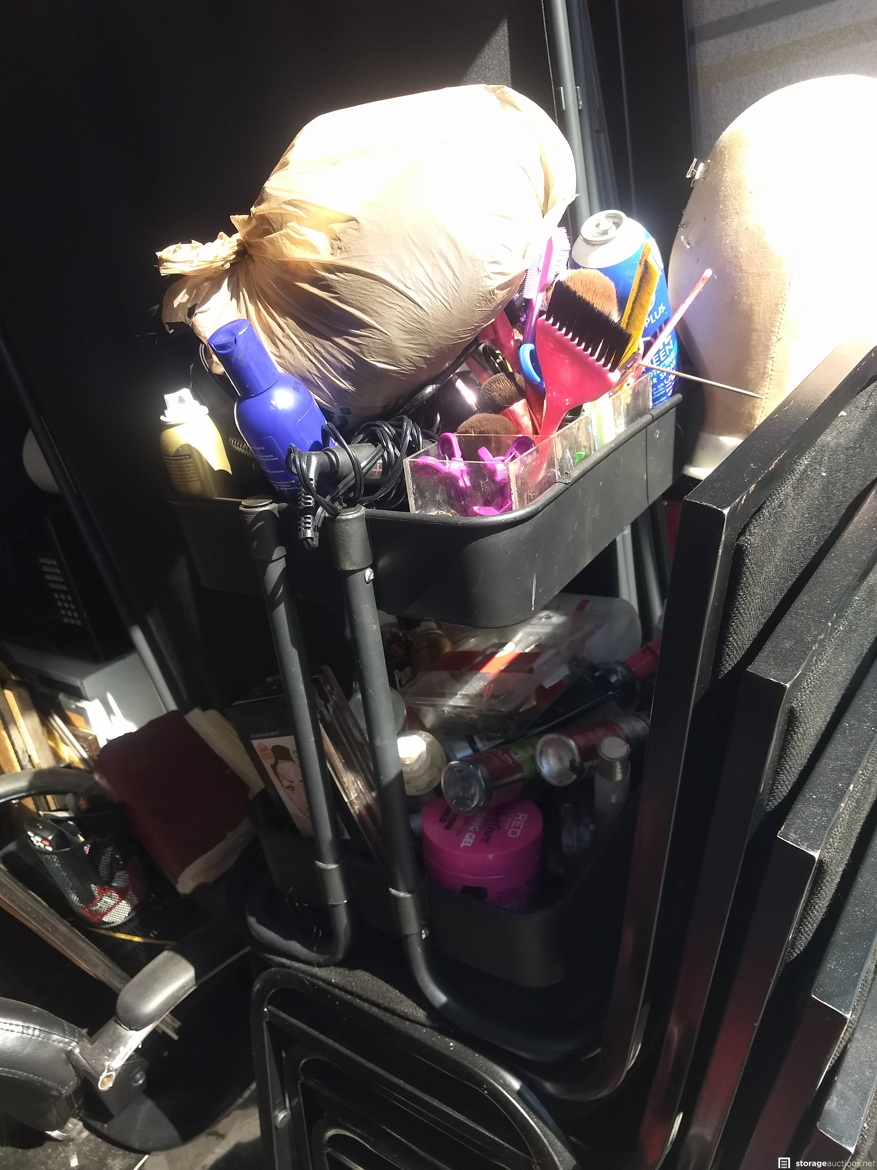Salon Chair, 2 Fans, TV, Vending Machine, Catering box, Microwave, Chairs, Room dividers, Hair equipment, Stereo, DVD Player, Mirror, Appliances, Pictures, Globe. Misc