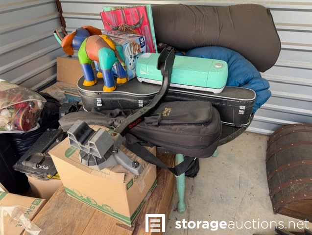 Unit has musical instrament cases, complete door, t-shirt press, and house hold decor.
