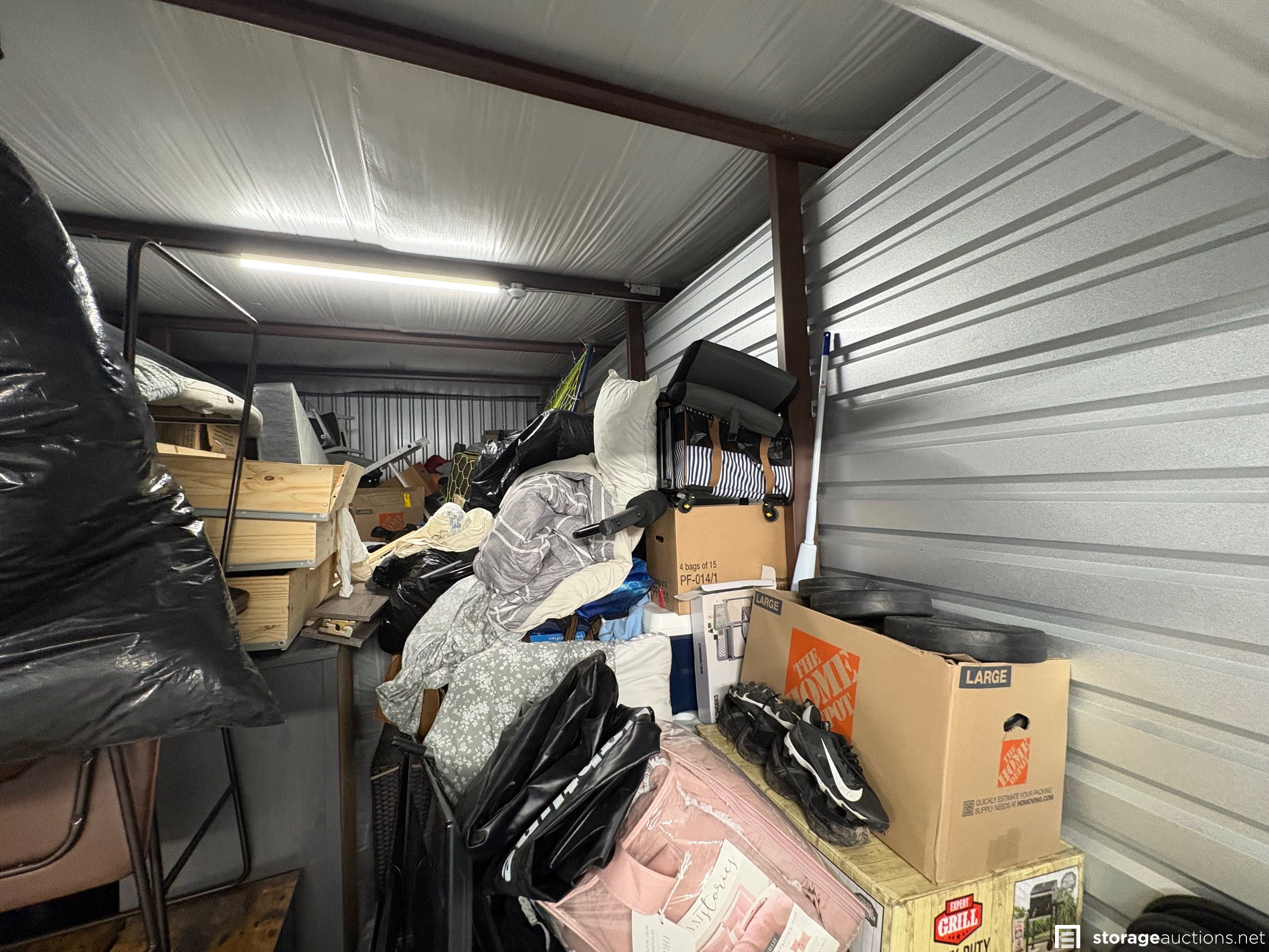 Additional Terms: NOTICE TO BUYERS & BIDDERS: We cannot guarantee the condition of the items in the storage unit. All photos are taken from the outside of the unit and no items are inspected inside the unit. Upon winning a storage space, you must contact the office immediately at 402-477-7000 to pay the winning bid amount. The sale is not final until the bid has been paid and the property has been removed from the storage space. You need to arrange payment via cash or credit card (Visa/MC/Amex). You will receive a gate code to access the property to remove the contents of the space. Access hours are 6 am-10 pm and you will have until Sunday at 10 pm to clean out the space. Contact and payment must be made by the end of the auction day. The buyer must remove all property from the storage space. If all items are not removed and the space is not swept cleaned by 10 pm on Sunday, the buyer forfeits the $100 cleaning deposit. Big Red Self Storage also reserves the right to charge any cleaning and disposal fees above the $100 deposit. Any remaining property left in the storage space after the above date will become the property of Big Red Self Storage. It is the Buyer???s responsibility to immediately return any personal and military items they find in the storage space. Items include family photos, financial records, legal documents, etc. Any military items must be returned to the office to be picked up by the local National Guard. Big Red Self Storage reserves the right to cancel any auction if the bids are deemed unreasonable. Bidders must be at least 18 years old. Landlords, officers, members, partners, and employees shall not be liable whatsoever to any extent to Buyer or Buyer's invitees, family or others for any personal injury or death arising from Buyer's use of the storage space or premises from any cause whatsoever including, but not limited to, the active or passive acts or omissions or negligence of Landlord, or respective agents, officers, or employees. If you are the winning bidder and a current tenant at Big Red Self Storage, and your account has a past due balance, your $100 cleaning deposit may be applied to your past due balance.