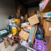 There is a washer and dryer, tv box, furniture and lots of boxes.