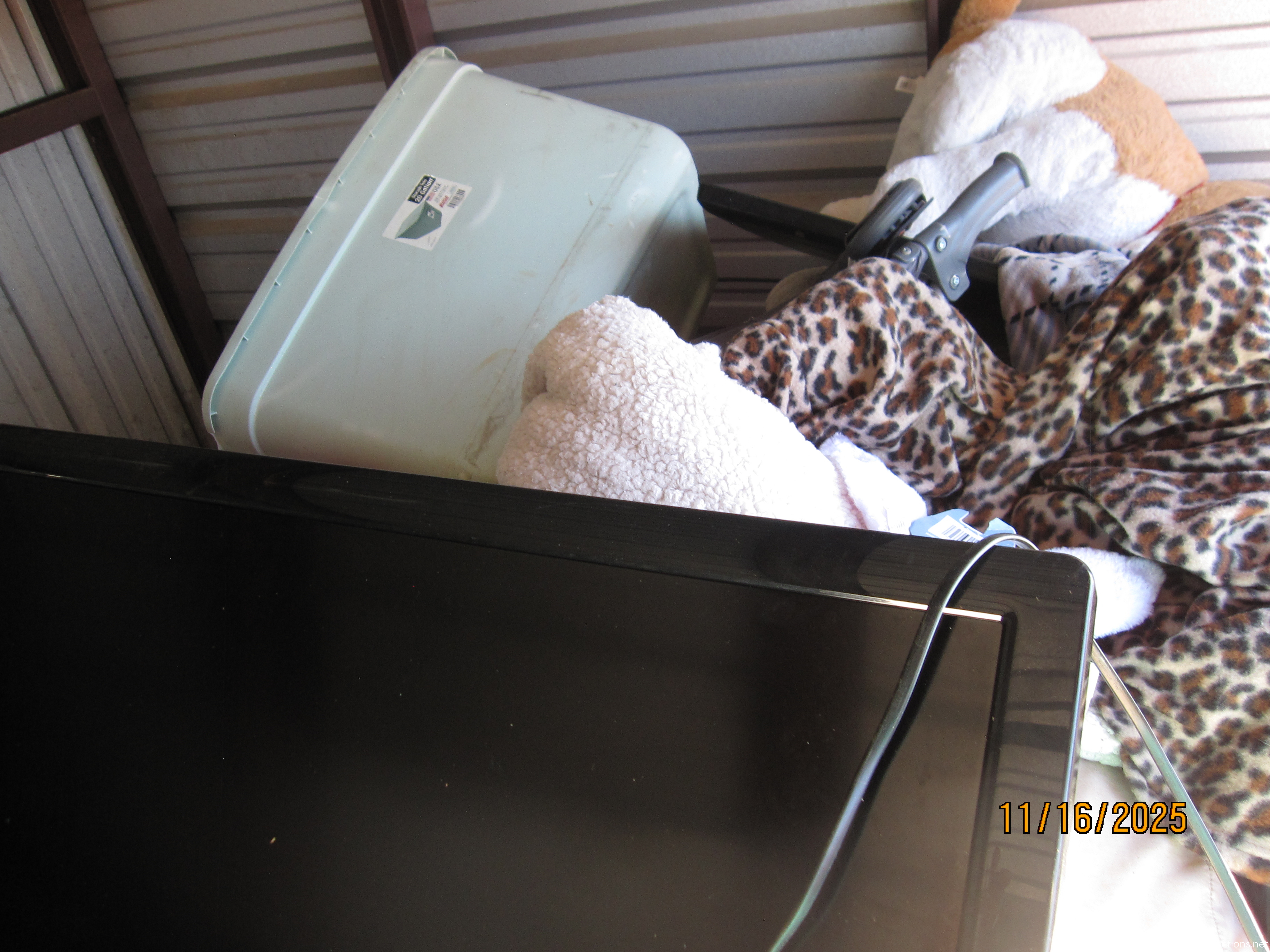 At least, 3 tv's, Furniture, children's battery ride on toys, bikes, Unit packed.