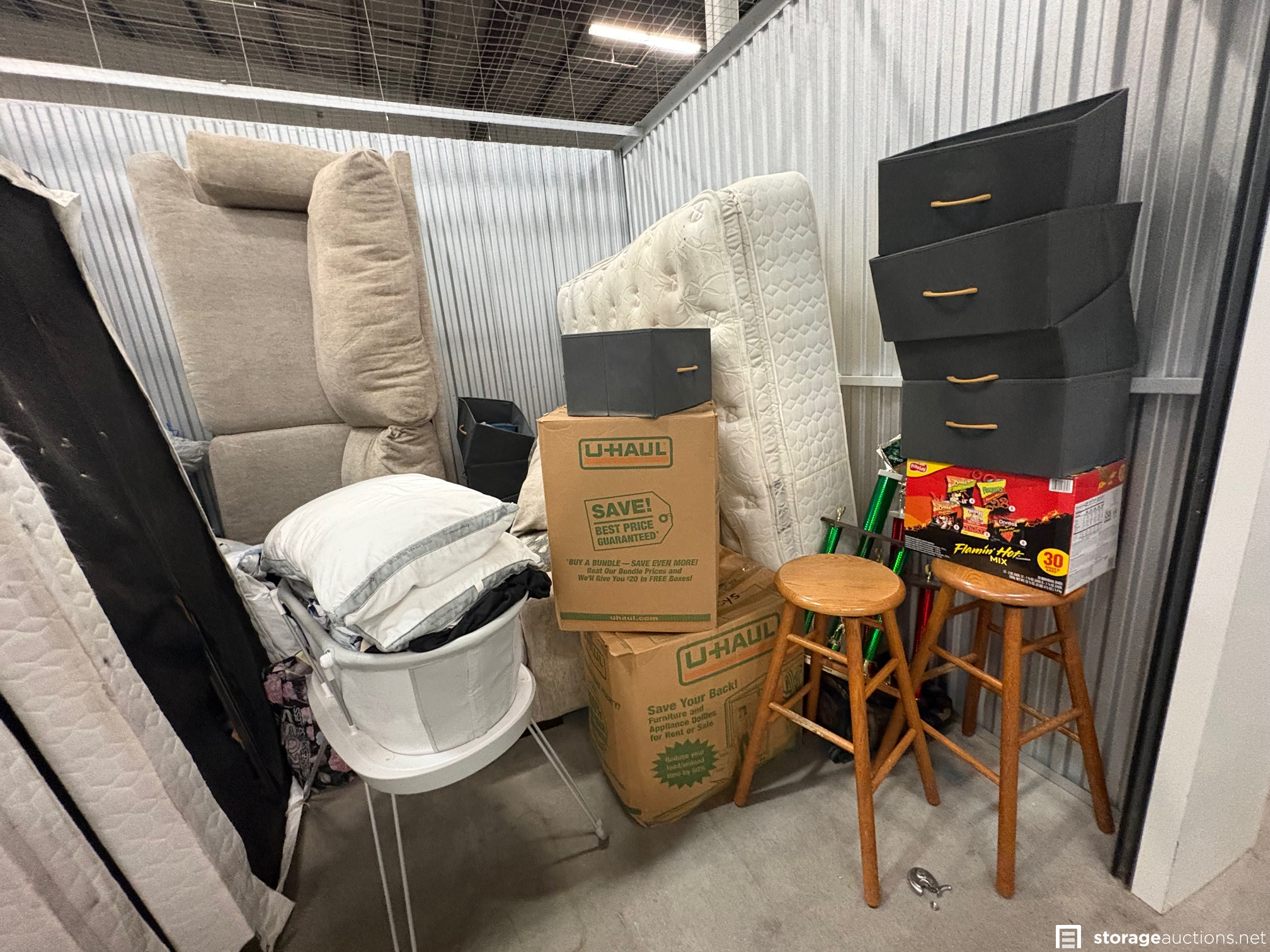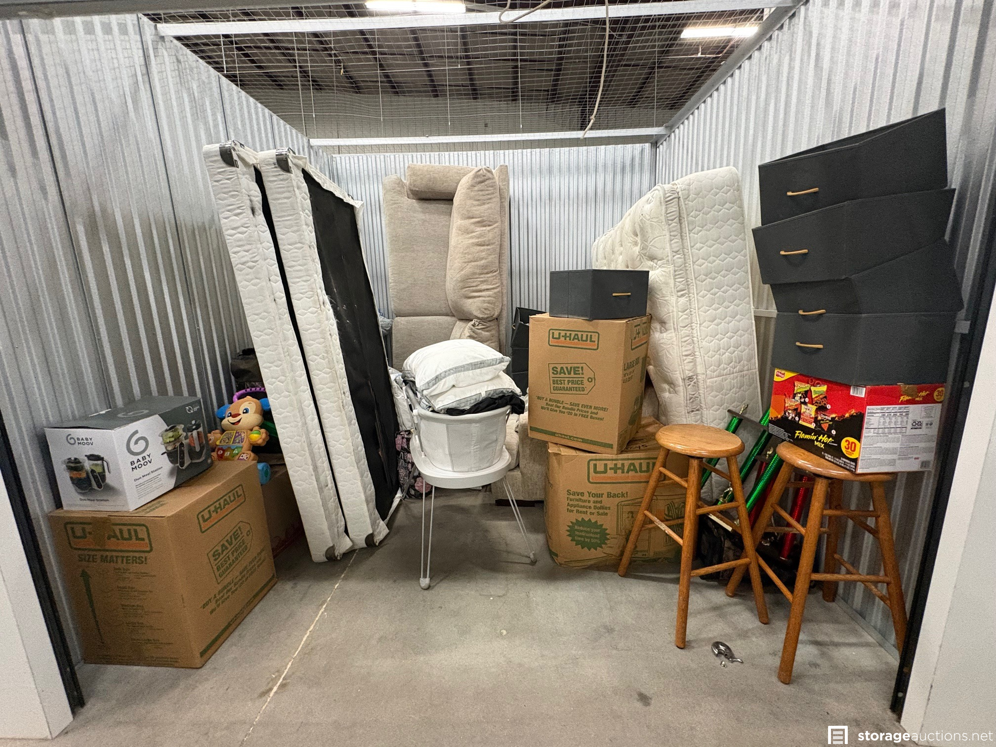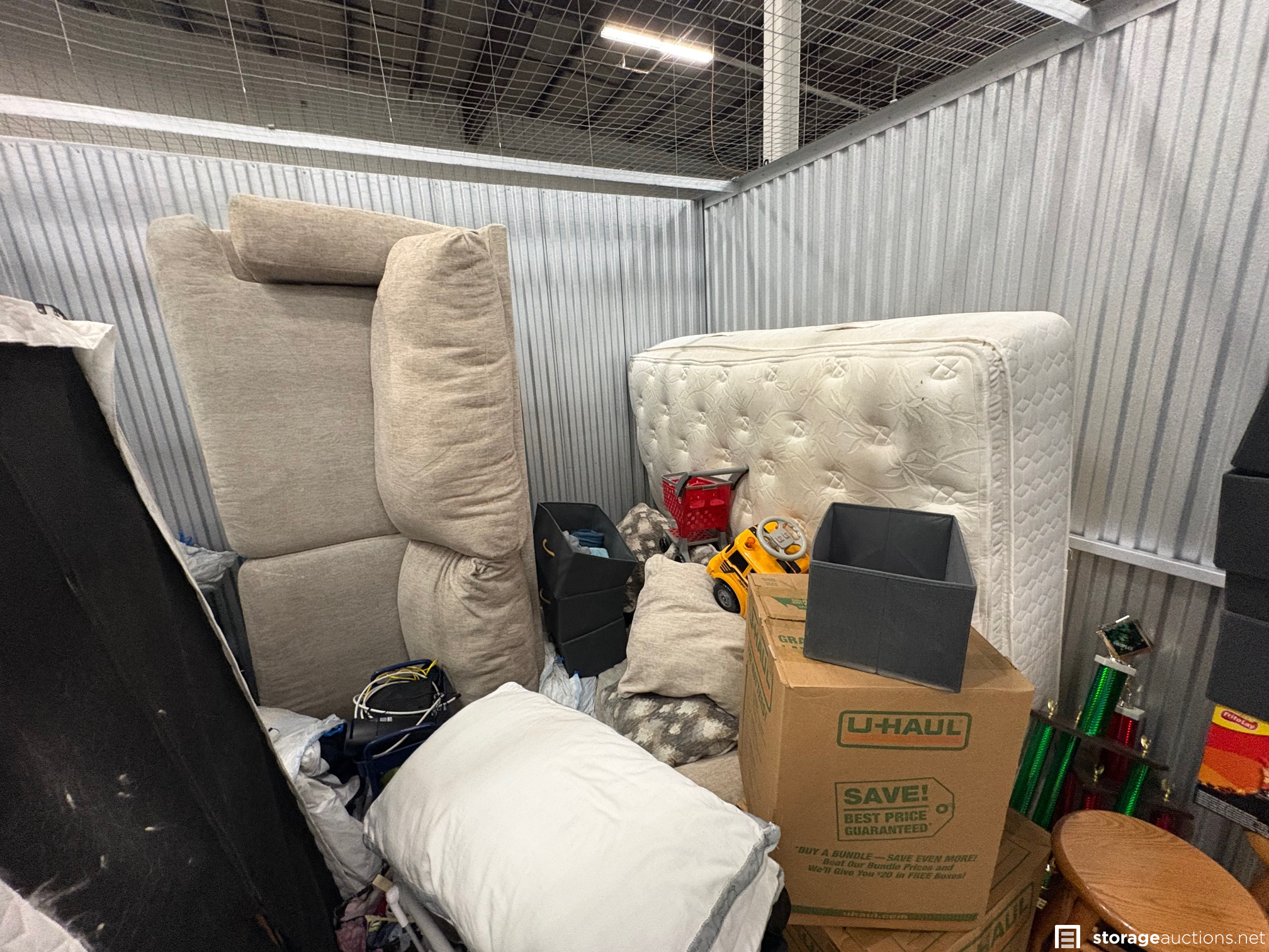 Additional Terms: NOTICE TO BUYERS & BIDDERS: We cannot guarantee the condition of the items in the storage unit. All photos are taken from the outside of the unit and no items are inspected inside the unit. Upon winning a storage space, you must contact the office immediately at 402-325-6800 to pay the winning bid amount. The sale is not final until the bid has been paid and the property has been removed from the storage space. You need to arrange payment via cash or credit card. You will receive a gate code to access the property to remove the contents of the space. Access hours are 6 am-10 pm and you will have until Sunday at 10 pm to clean out the space. Contact and payment must be made by the end of the auction day. The buyer must remove all property from the storage space. If all items are not removed and the space is not swept cleaned by 10 pm on Sunday, the buyer forfeits the $100 cleaning deposit. Big Red Self Storage also reserves the right to charge any cleaning and disposal fees above the $100 deposit. Any remaining property left in the storage space after the above date will become the property of Big Red Self Storage. It is the Buyer's responsibility to immediately return any personal and military items they find in the storage space. Items include family photos, financial records, legal documents, etc. Any military items must be returned to the office to be picked up by the local National Guard. Big Red Self Storage reserves the right to cancel any auction for any reason. Bidders must be at least 18 years old. Landlords, officers, members, partners, and employees shall not be liable whatsoever to any extent to Buyer or Buyer's invitees, family or others for any personal injury or death arising from Buyer's use of the storage space or premises from any cause whatsoever including, but not limited to, the active or passive acts or omissions or negligence of Landlord, or respective agents, officers, or employees. If you are the winning bidder and a current tenant at Big Red Self Storage, and your account has a past due balance, your $100 cleaning deposit may be applied to your past due balance.