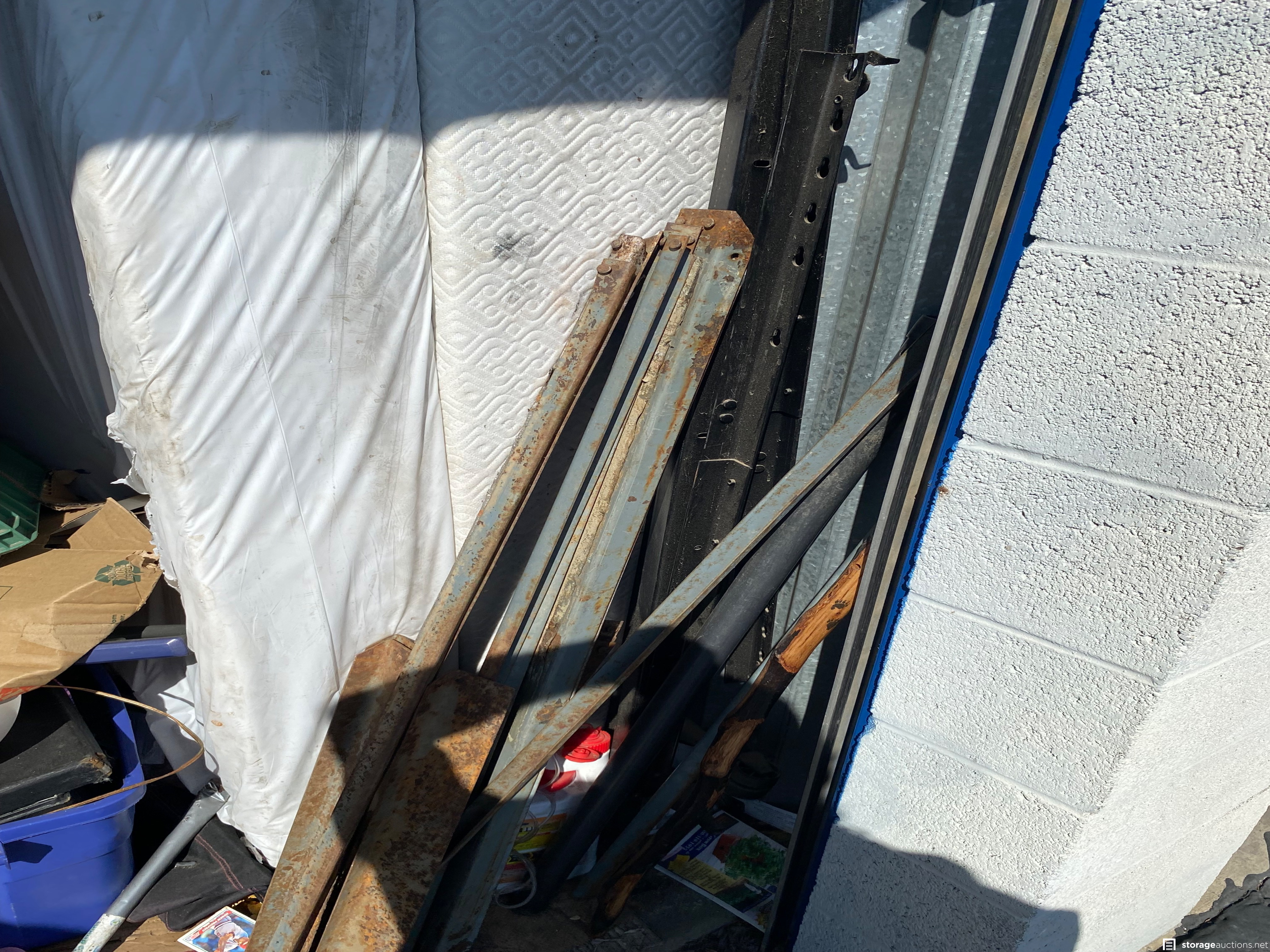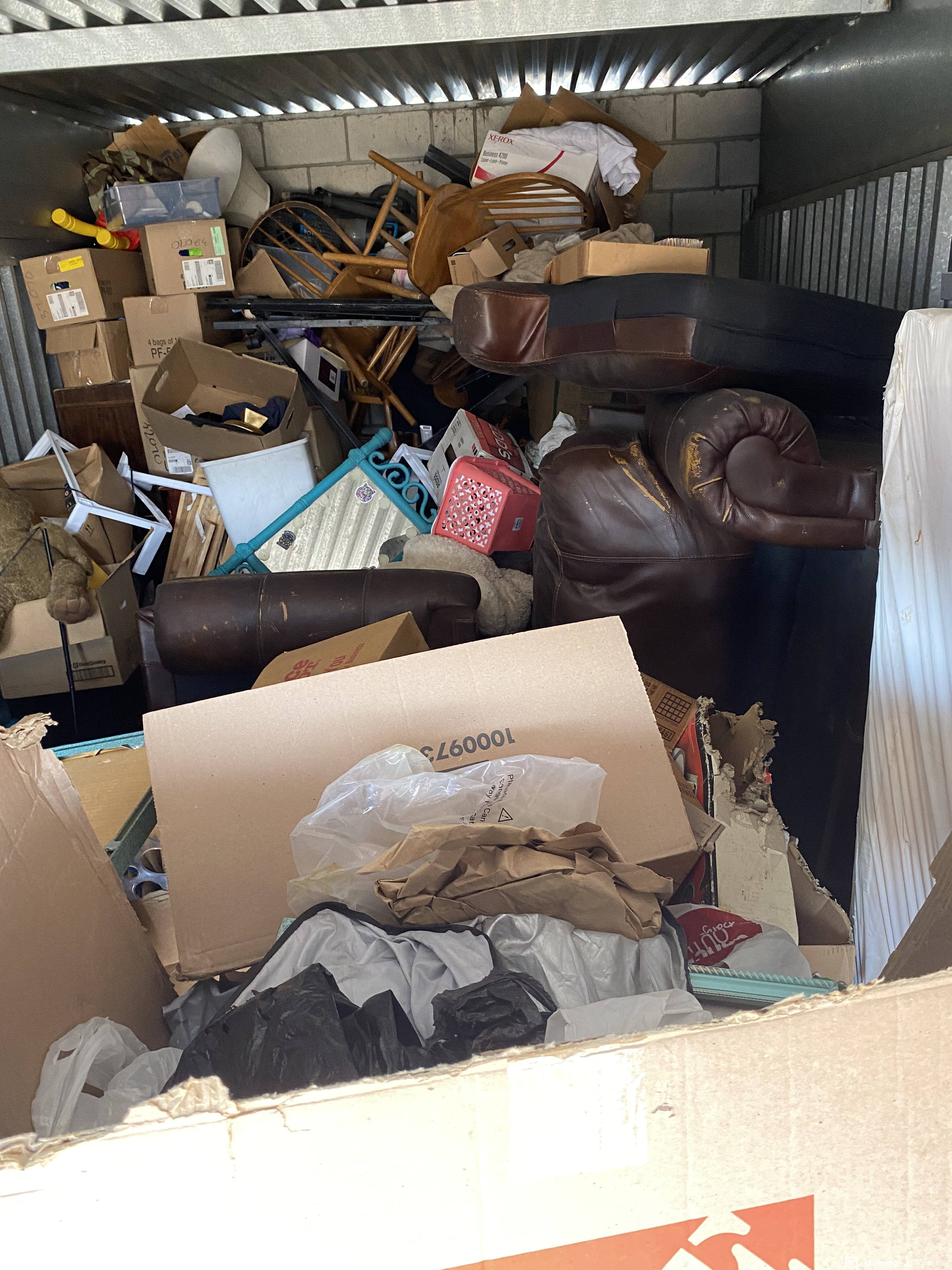 Ice, chest totes, boxspring, mattress, bags, bedframe, furniture, toys, miscellaneous items