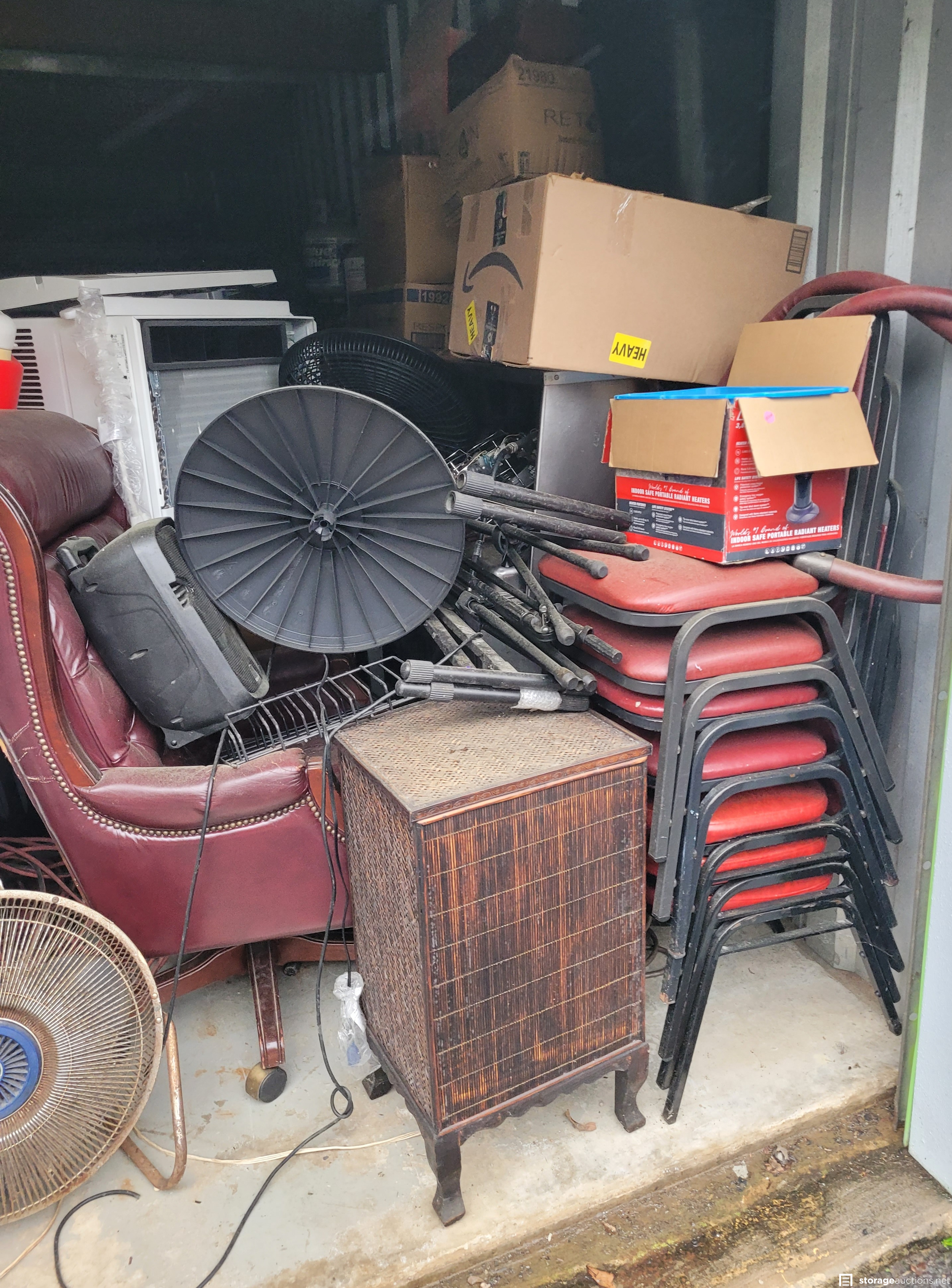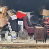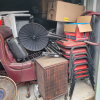 Boxes, Speakers, Cross, Wooden Chairs, Heaters, A/C Unit, Keyboard, tables, Chairs, Ladder, Heater