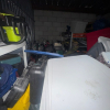 Gas Powered Scooter, skateboard, snowboard, chainsaw, misc. tools, electric blowers, plastic totes/bags, wire racks, subwoofer