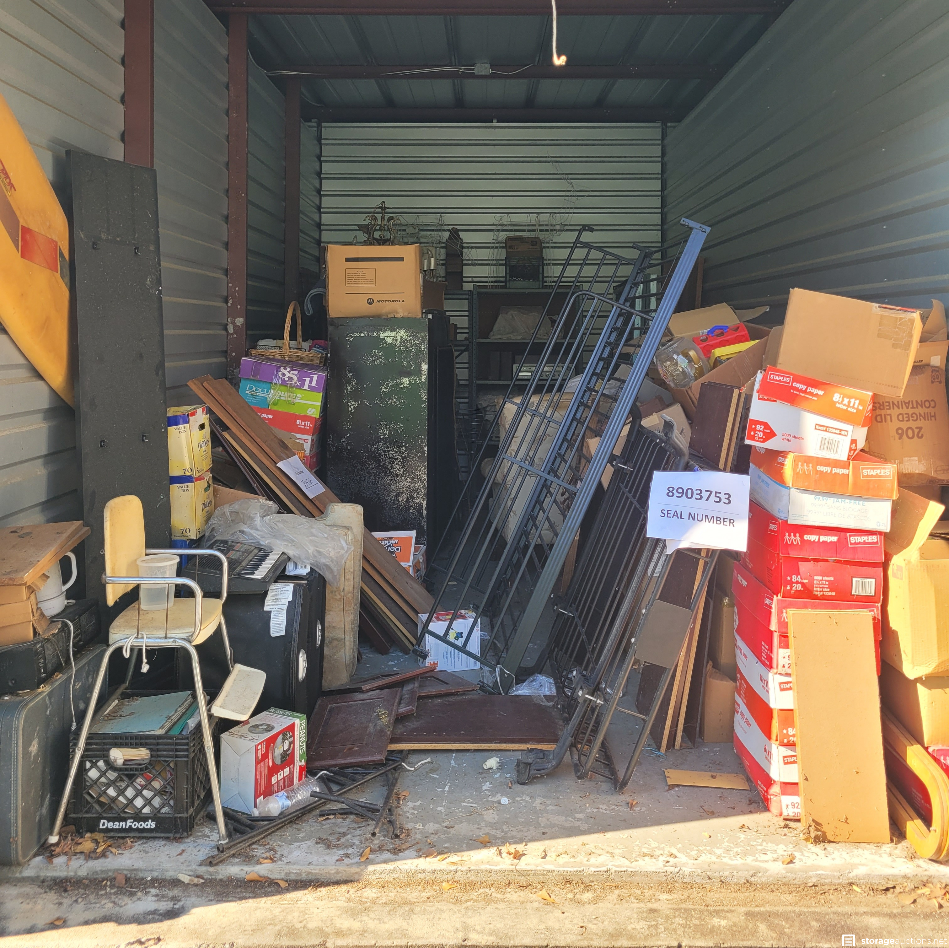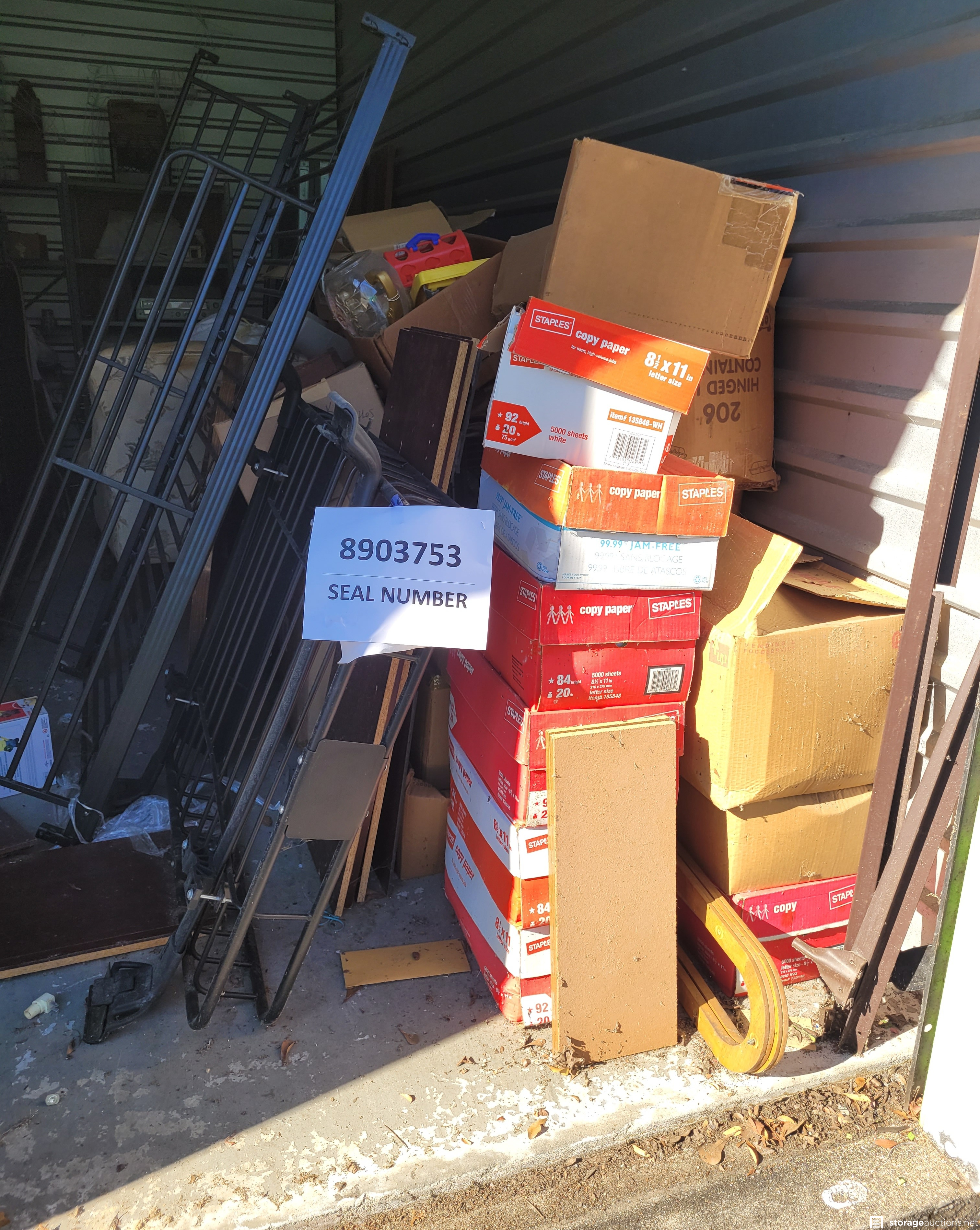 Additional Terms: All units must be paid for at the time of sale. Credit card and Money Orders will be the only forms of payment accepted. No checks or Cash. No one under the age of 18 is allowed to attend the sale. Each person attending must agree to follow all Rules and Regulations of the sale. The landlord reserves the right to bid at the sale. All purchased goods are sold "as is" and must be removed by 5:00 p.m. on the day following the sale. Buyers must provide a current, original or a photocopy of their original resale permit at time of sale in lieu of sales tax. This sale is subject to cancellation in the event of settlement between landlord and obligated party