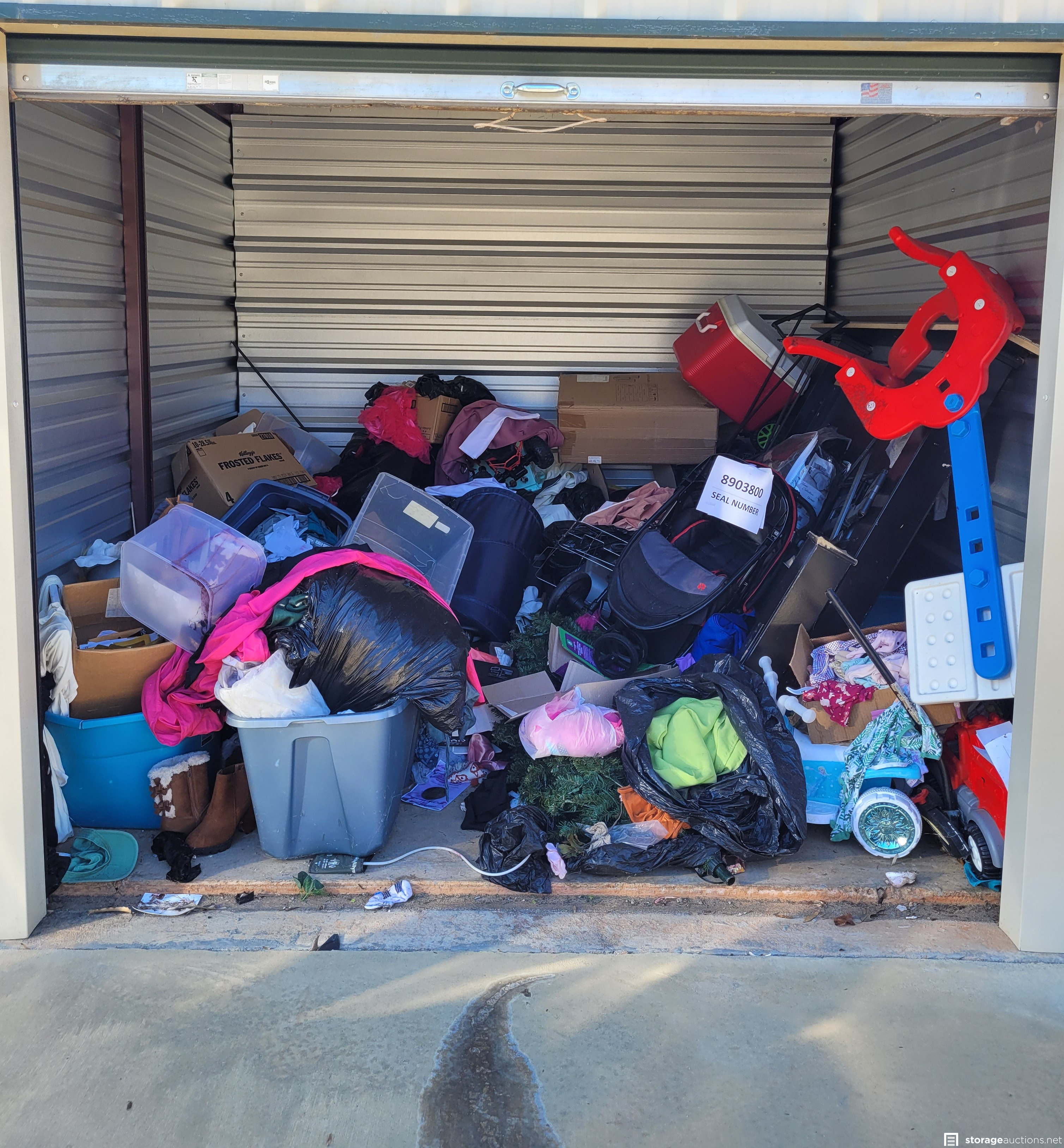 Additional Terms: All units must be paid for at the time of sale. Cash only for the $100 Deposit. No checks or Cash. No one under the age of 18 is allowed to attend the sale. Each person attending must agree to follow all Rules and Regulations of the sale. The landlord reserves the right to bid at the sale. All purchased goods are sold "as is" and must be removed by 5:00 p.m. on the day following the sale. Buyers must provide a current, original or a photocopy of their original resale permit at time of sale in lieu of sales tax. This sale is subject to cancellation in the event of settlement between landlord and obligated party.